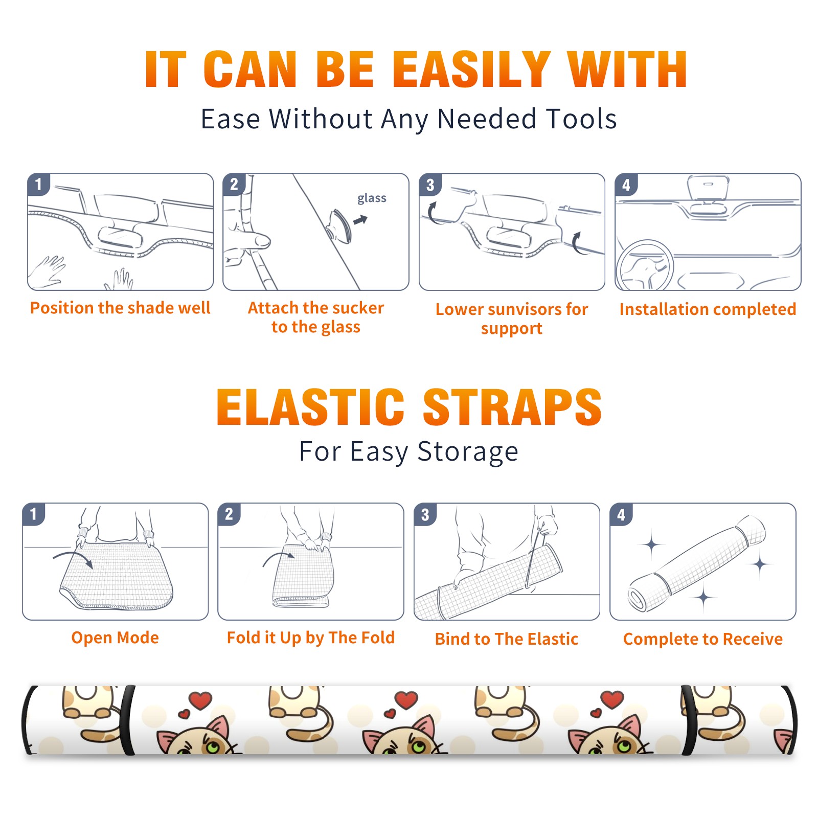 Car Windshield Sun Shade For Front Window Cute Cat Heart Foldable Vehicle Windshield Car Sun Visor Covers Automotive Window Protector Car Camping Privacy Sun Blocker