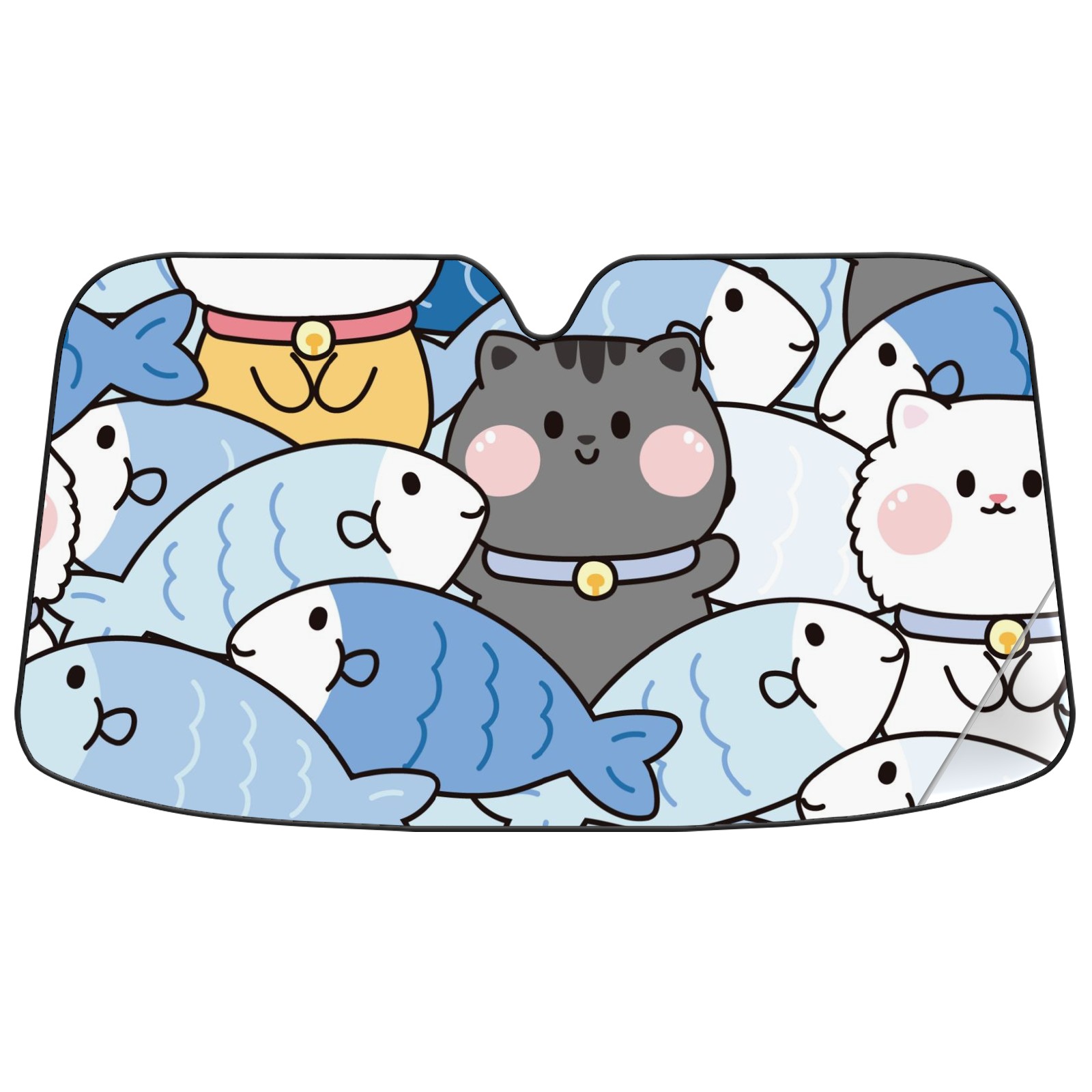 Car Windshield Sun Shade For Front Window Cute Cat Fish Foldable Vehicle Windshield Car Sun Visor Covers Automotive Window Protector Car Camping Privacy Sun Blocker