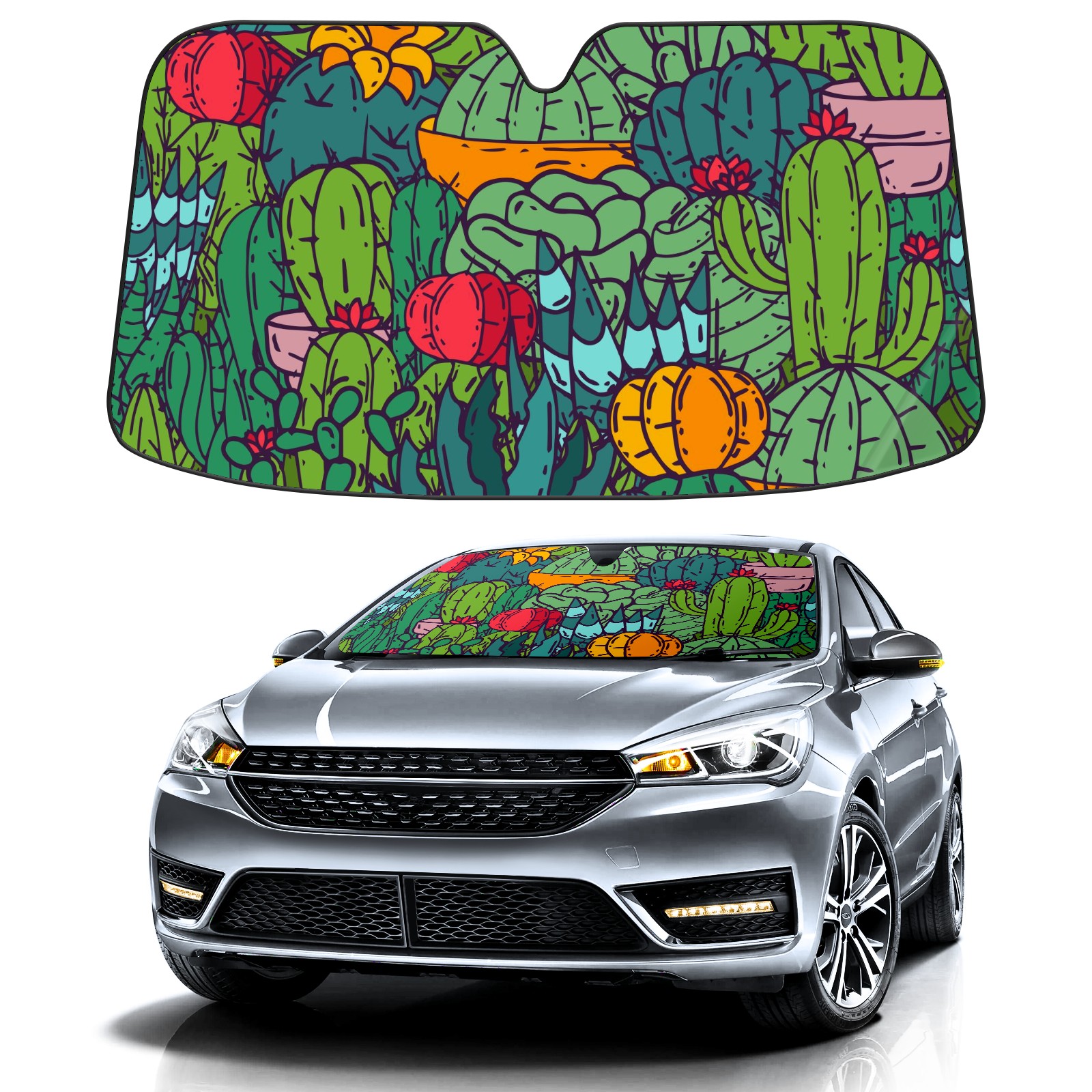 Car Windshield Sun Shade For Front Window Succulents Cacti Green Plants Foldable Vehicle Windshield Car Sun Visor Covers Automotive Window Protector Car Camping Privacy Sun Blocker