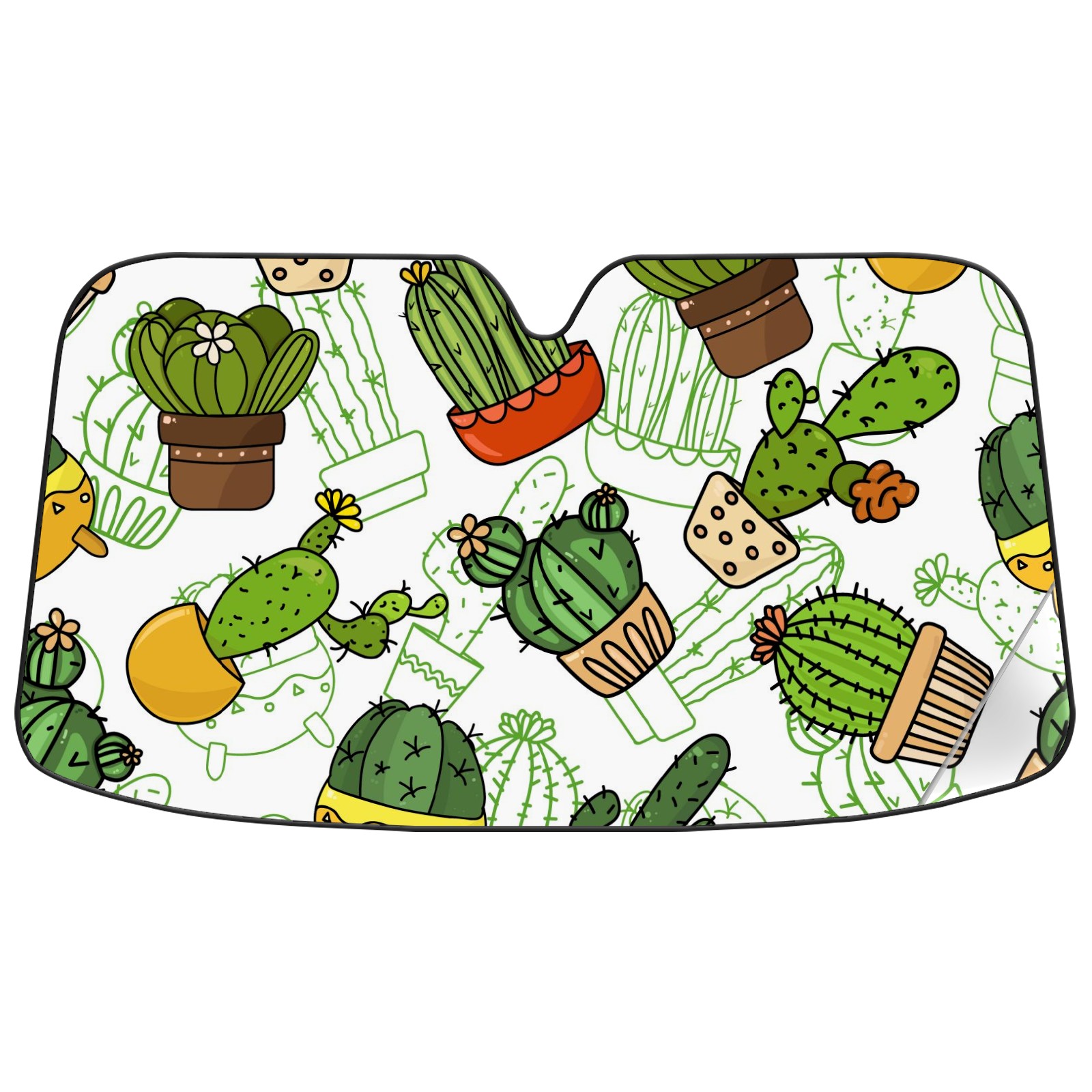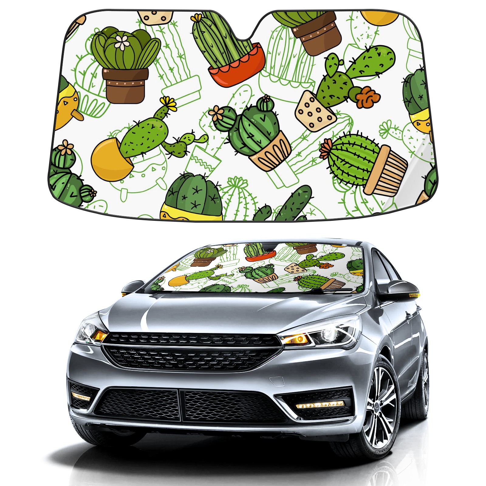 Car Windshield Sun Shade For Front Window Green Cactus Doodles Foldable Vehicle Windshield Car Sun Visor Covers Automotive Window Protector Car Camping Privacy Sun Blocker
