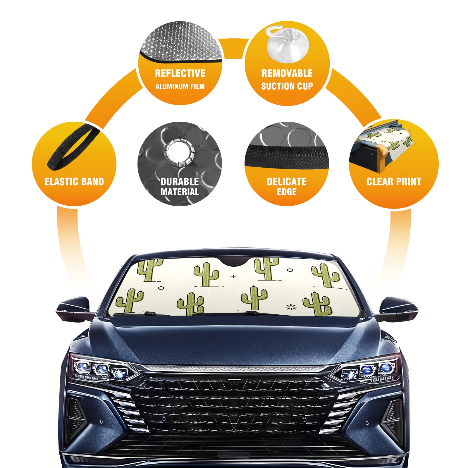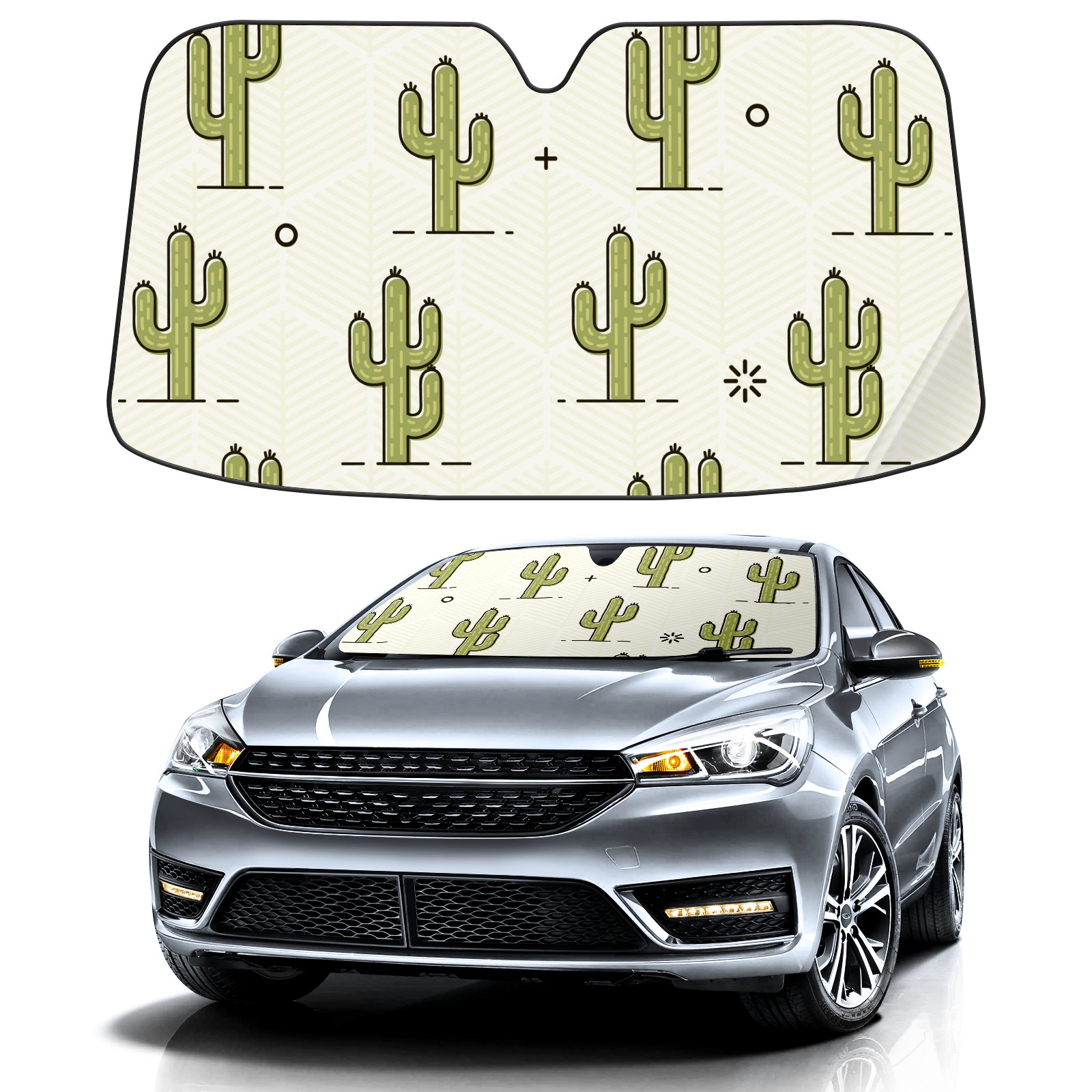 Car Windshield Sun Shade For Front Window Green Cactus Pattern Foldable Vehicle Windshield Car Sun Visor Covers Automotive Window Protector Car Camping Privacy Sun Blocker