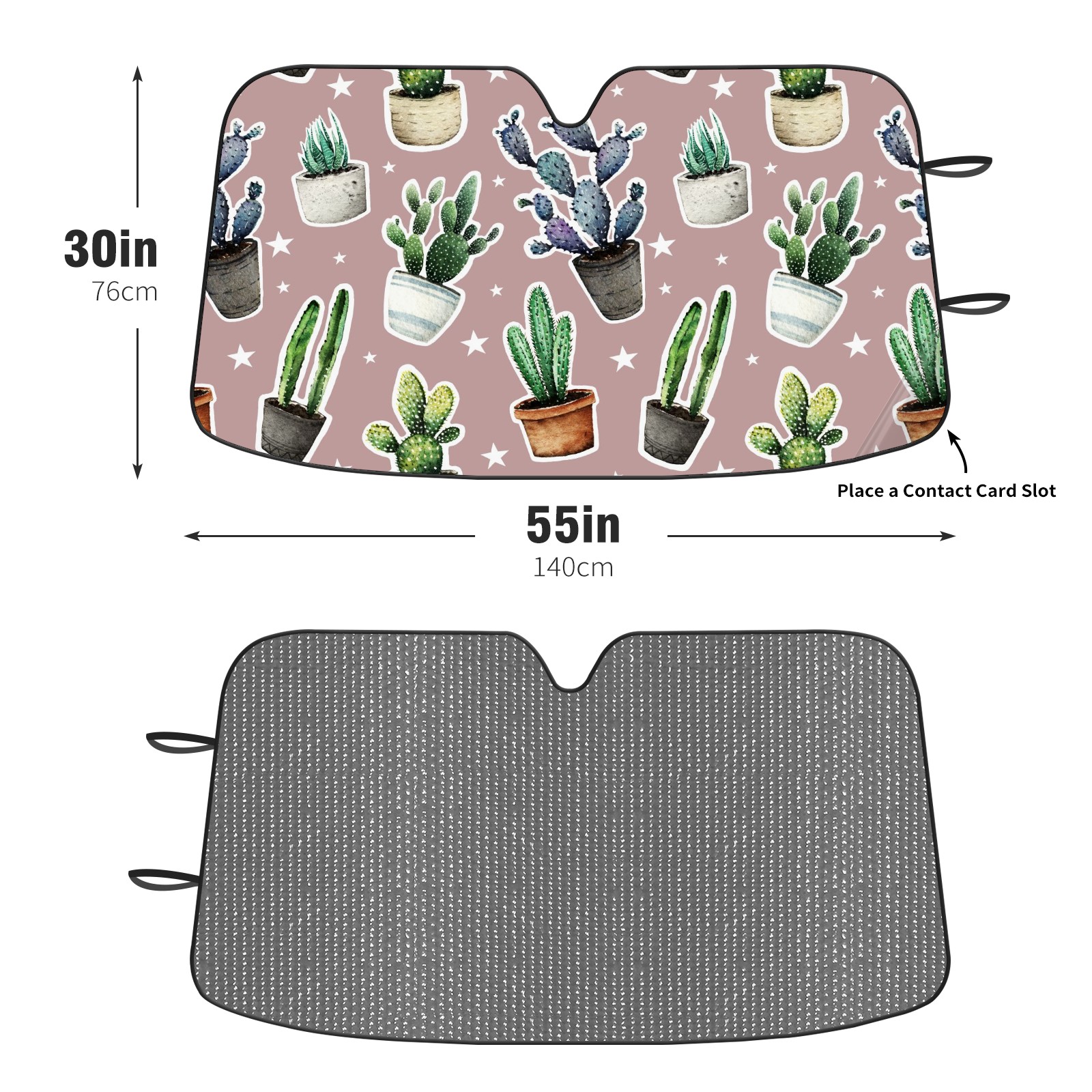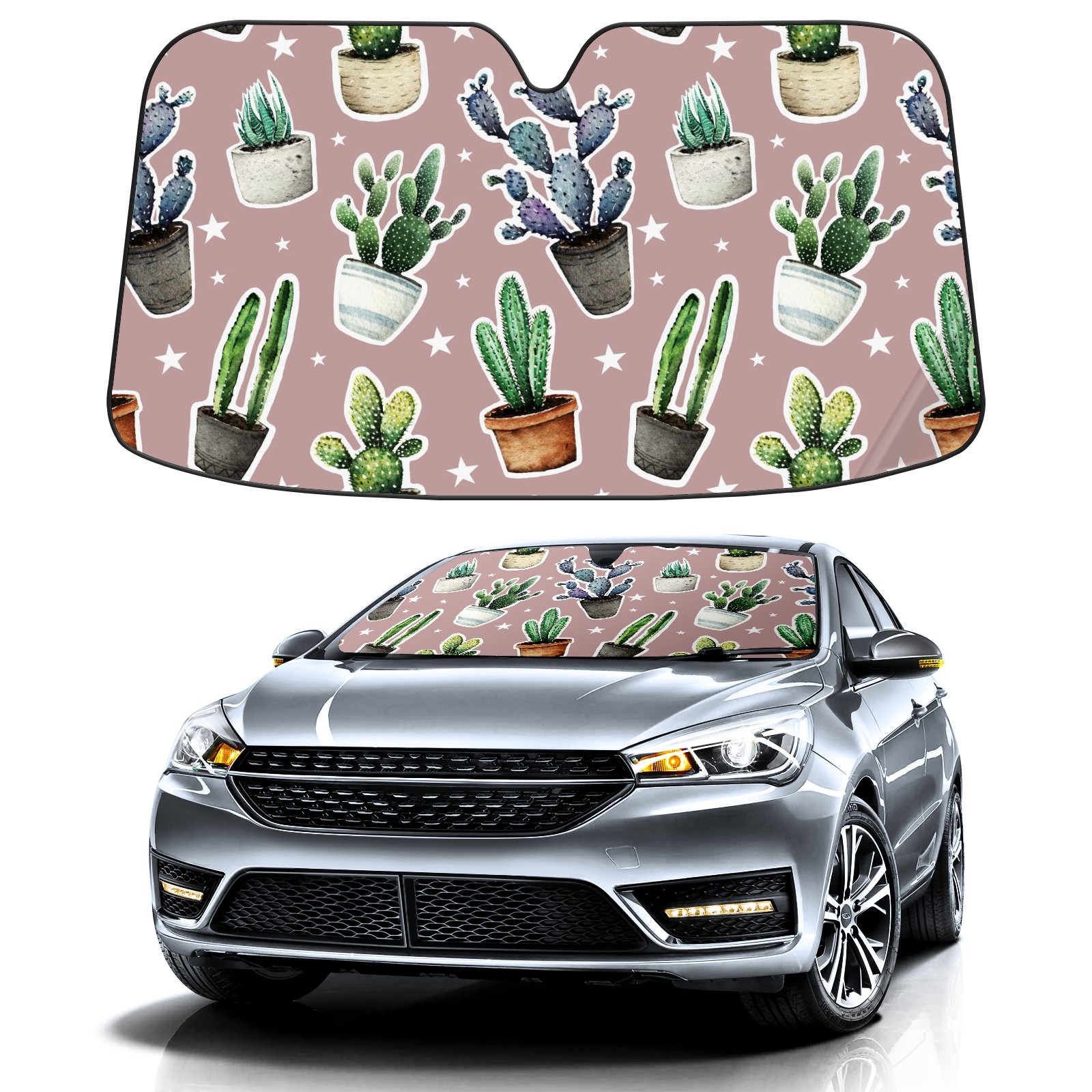 Car Windshield Sun Shade For Front Window Cactus Stars On Pink Background Foldable Vehicle Windshield Car Sun Visor Covers Automotive Window Protector Car Camping Privacy Sun Blocker