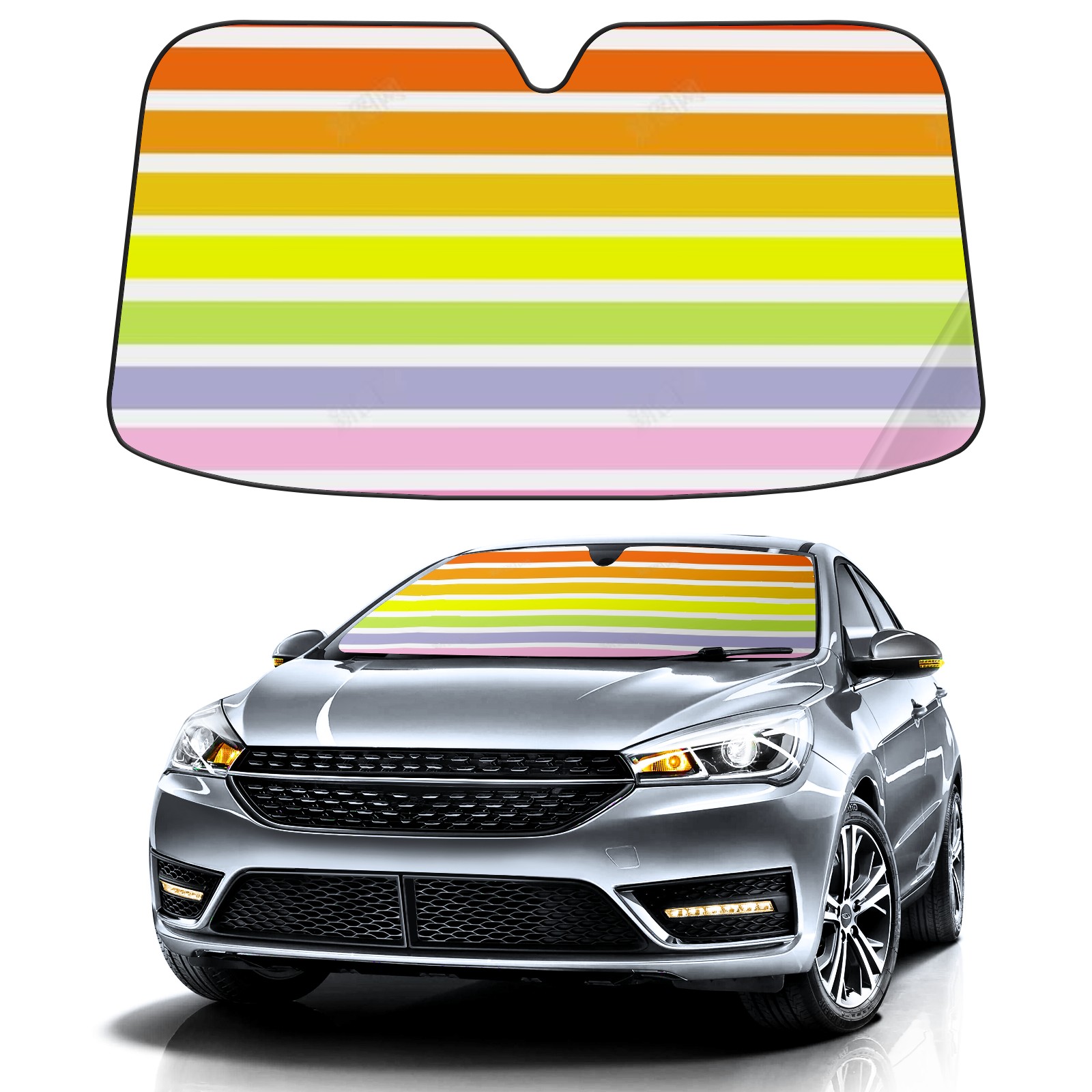 Car Windshield Sun Shade For Front Window Stripe Foldable Vehicle Windshield Car Sun Visor Covers Automotive Window Protector Car Camping Privacy Sun Blocker