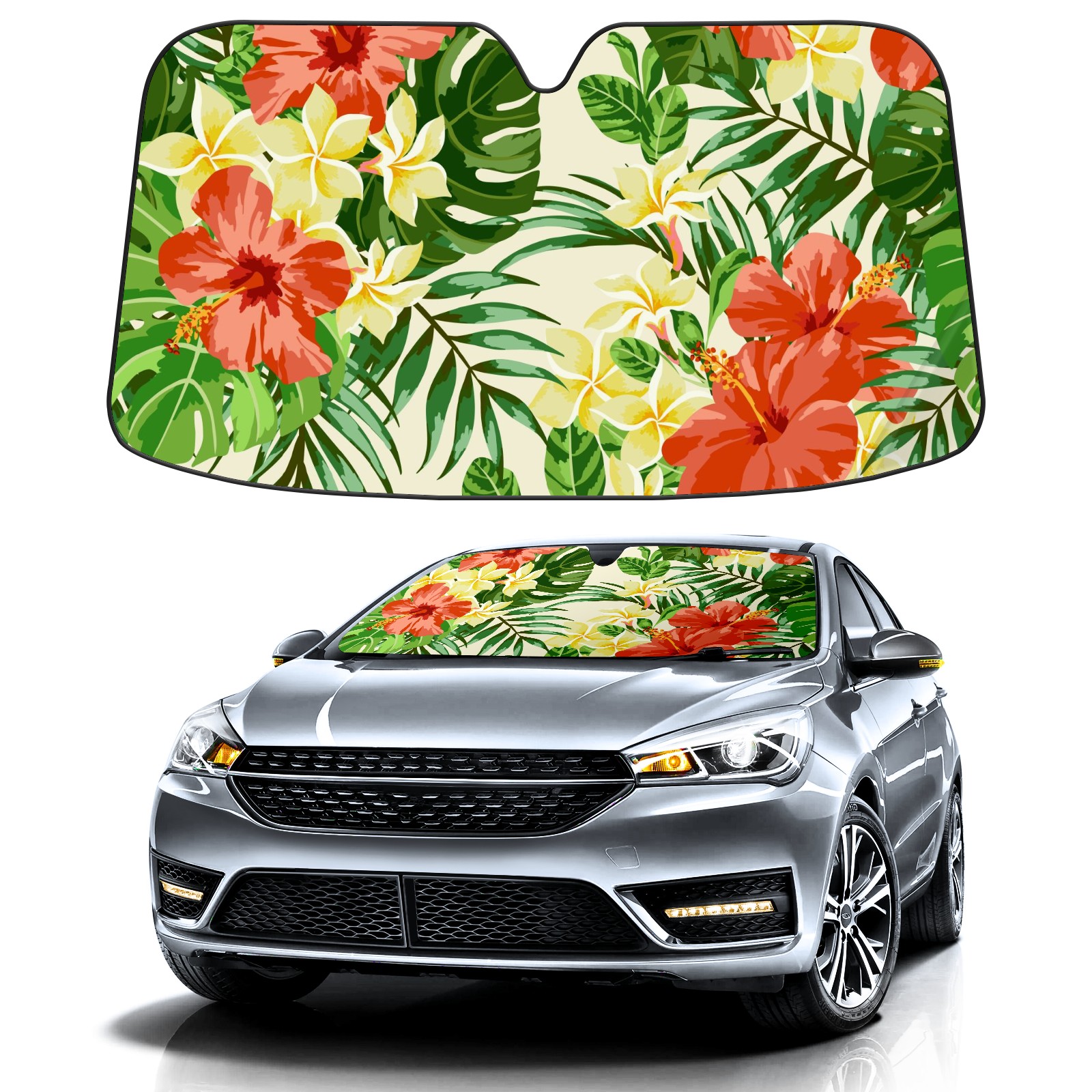 Car Windshield Sun Shade For Front Window Tropical Floral Green Foldable Vehicle Windshield Car Sun Visor Covers Automotive Window Protector Car Camping Privacy Sun Blocker