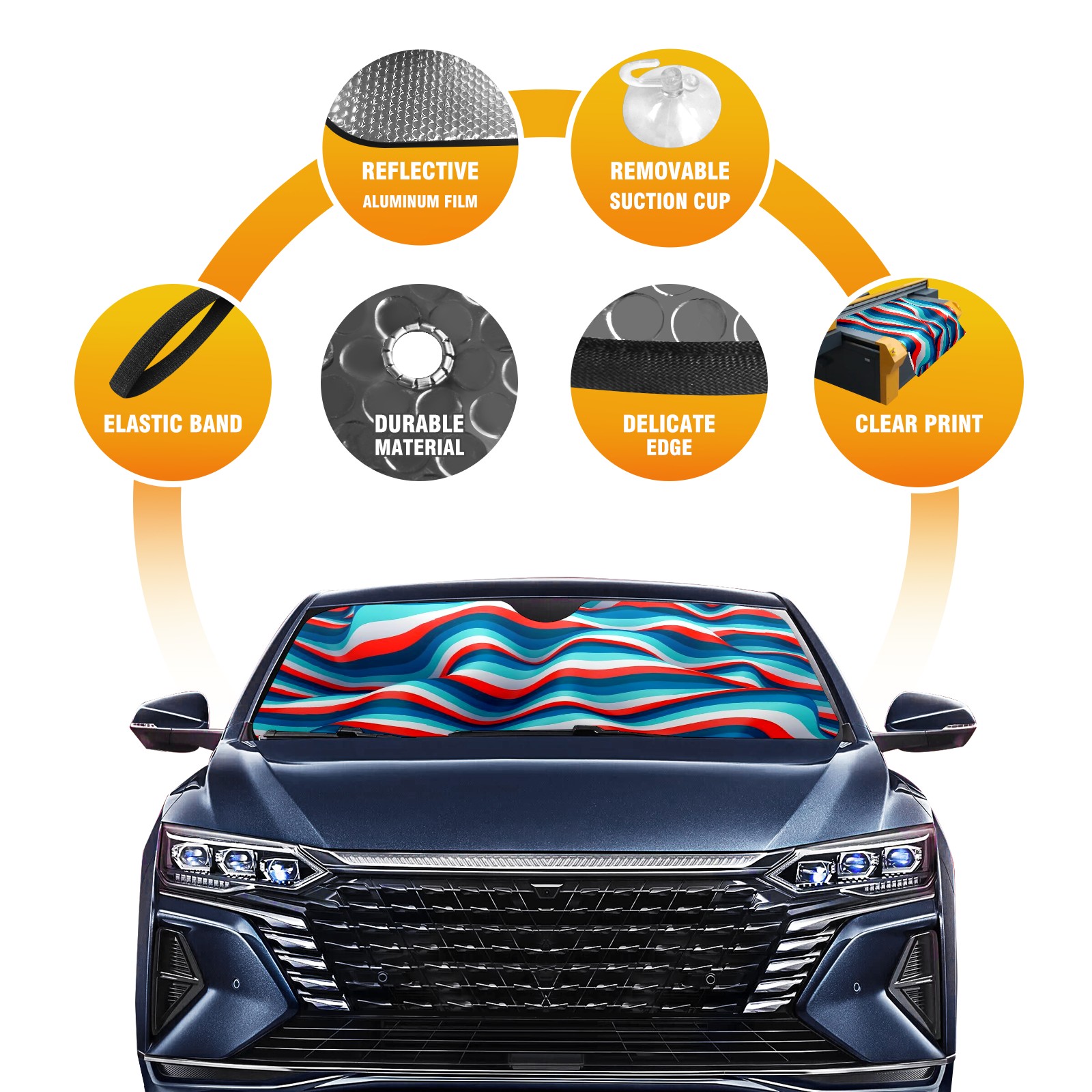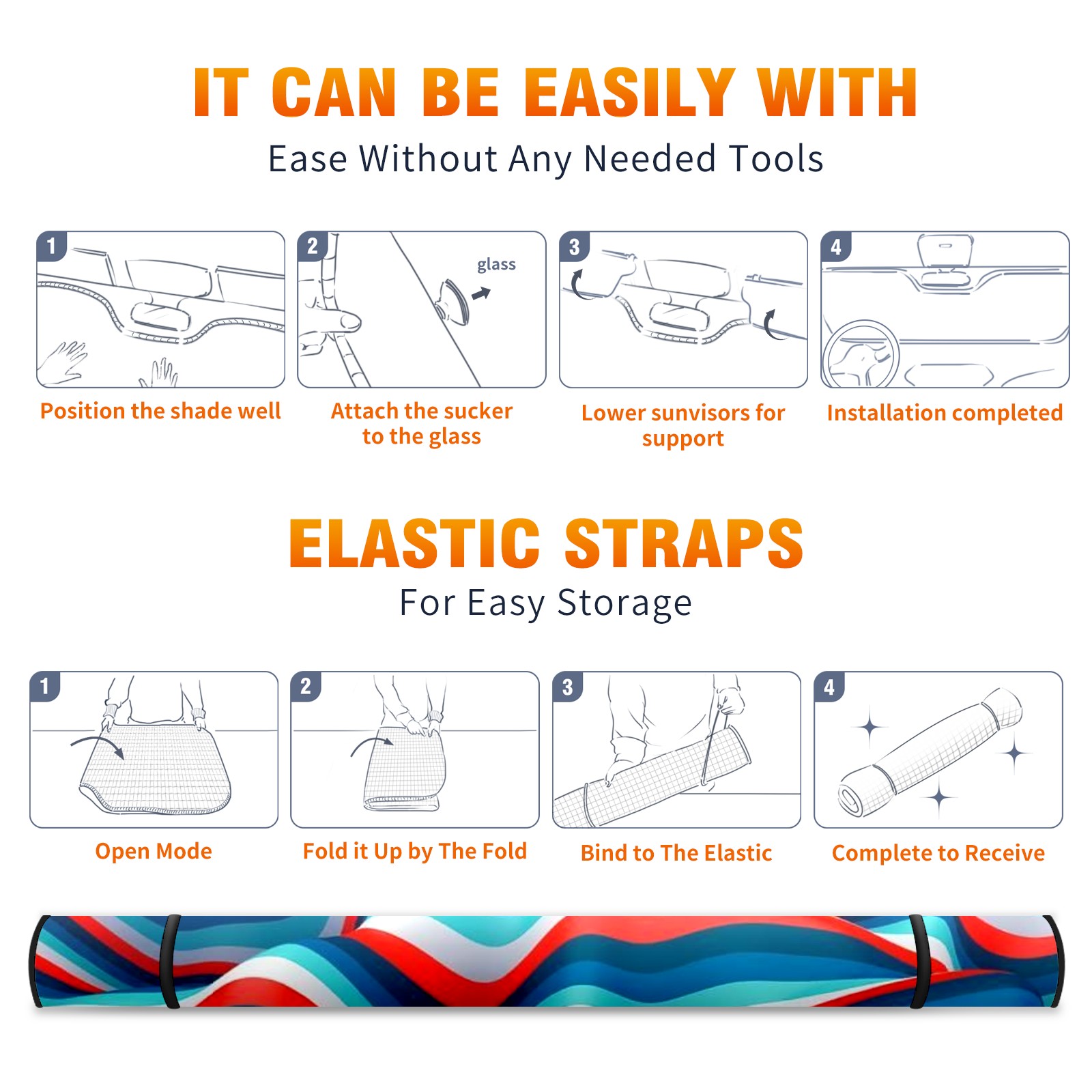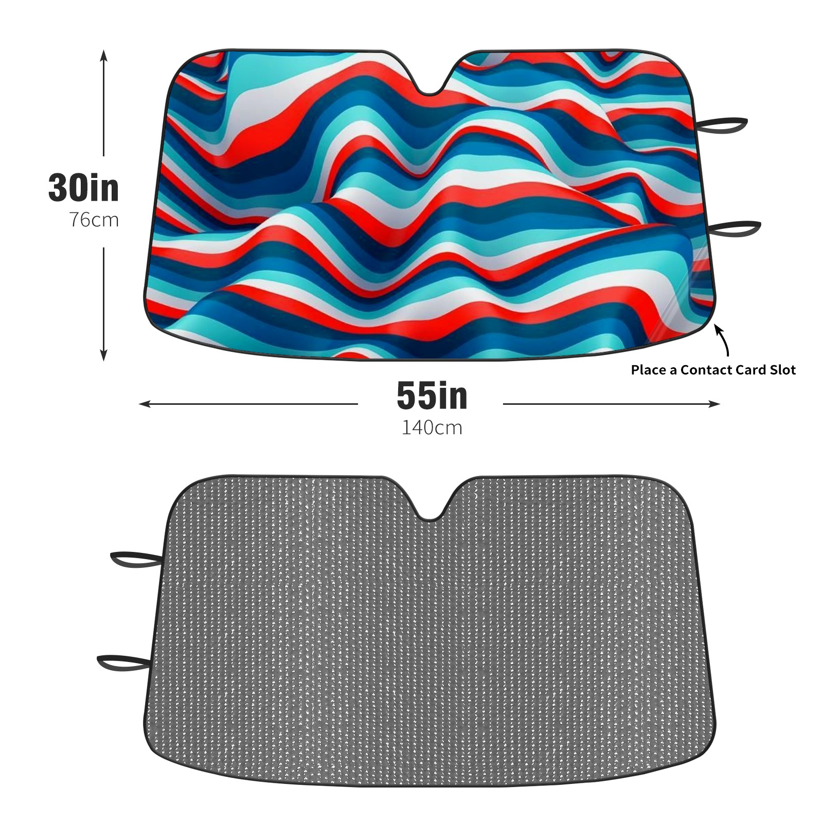 Diameter /Size 63"L x 33.5"W Made from excellent materials which makes it sturdy and protects the car from the sun. Easy to use and pack. Makes the interior of the car cooler.You can easily stash the sunshade in the storage bag or store long term.It open and closes easy. Also the leather storage bag is durable and easy to put the umbrella back into.This windshield sunshade provides complete coverage and keeps your car interior cool under direct sun. It is easy to open and position under the windshield and around the rear-view mirror. Makes Your Car Easy To Identify, Perfect For Finding Your Car In Crowded Parking Lots And Garages.Great Choice: It Is A Great Gift For Dad, Boyfriend, Brother, Brother And Uncle, Friends, Classmates, Family And So On. Notice: Due To Difference Computer Monitors, The Color Maybe Slightly Different From Picture. As Different Measurement Methods, Measurement Data Will Float Within 2%.I Hope You Understand. If You Have Any Question About The Item Please Do Not Hesitate To Contact Us Immediately And We Will Give You A Satisfactory Reply Within 24 Hours.