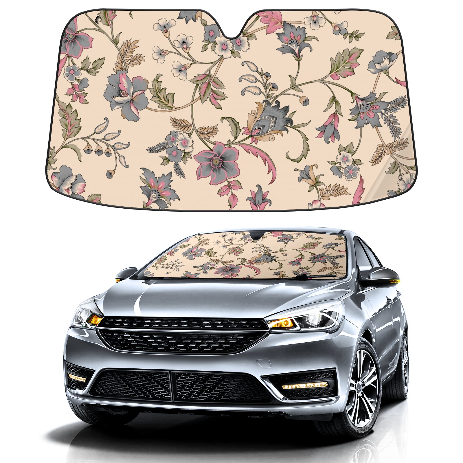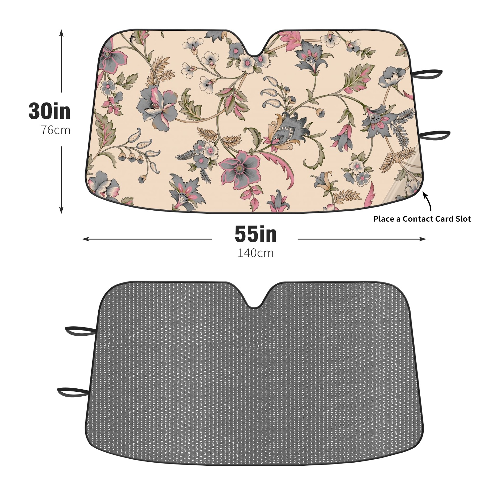Car Windshield Sun Shade For Front Window Geometric Ethnic Flowers Foldable Vehicle Windshield Car Sun Visor Covers Automotive Window Protector Car Camping Privacy Sun Blocker