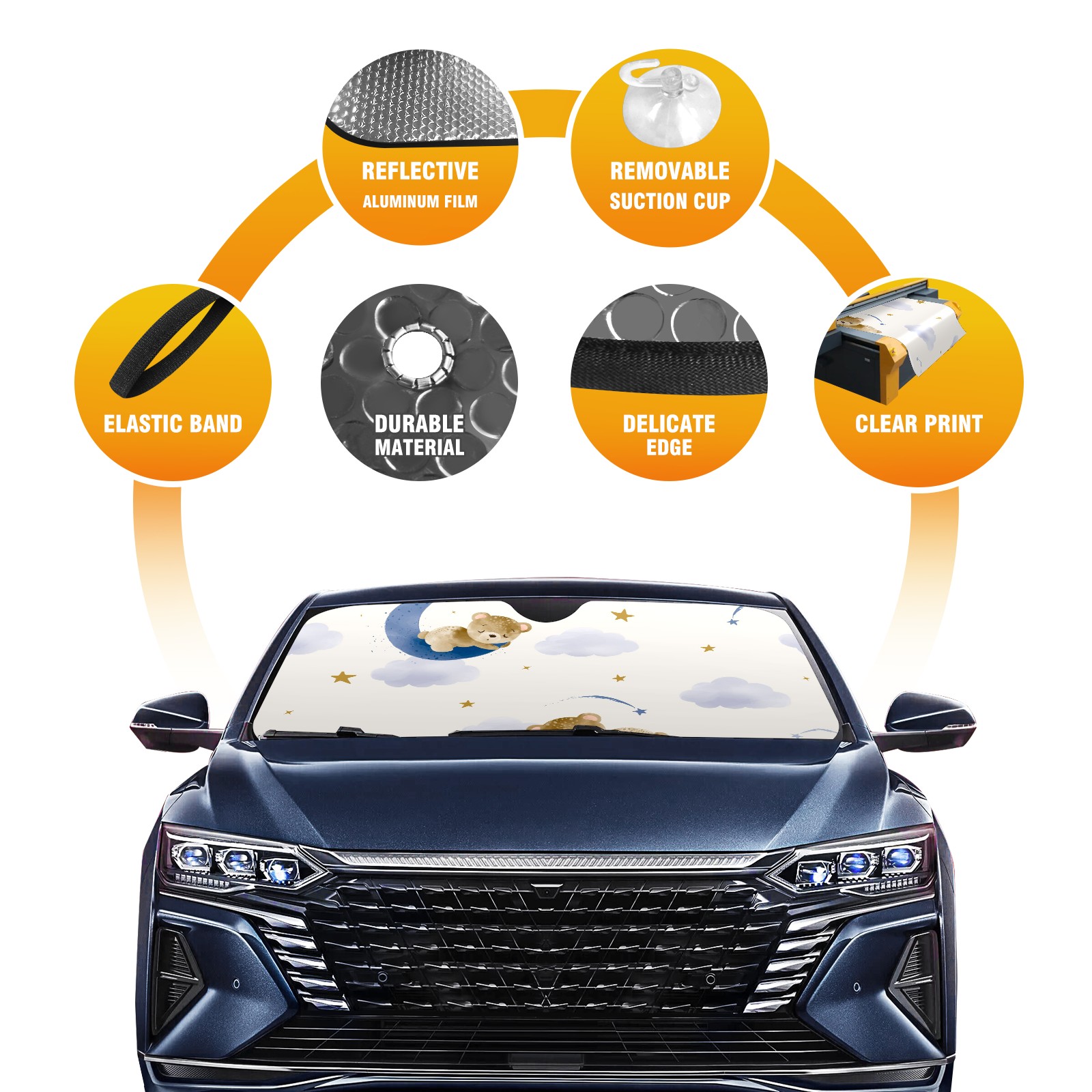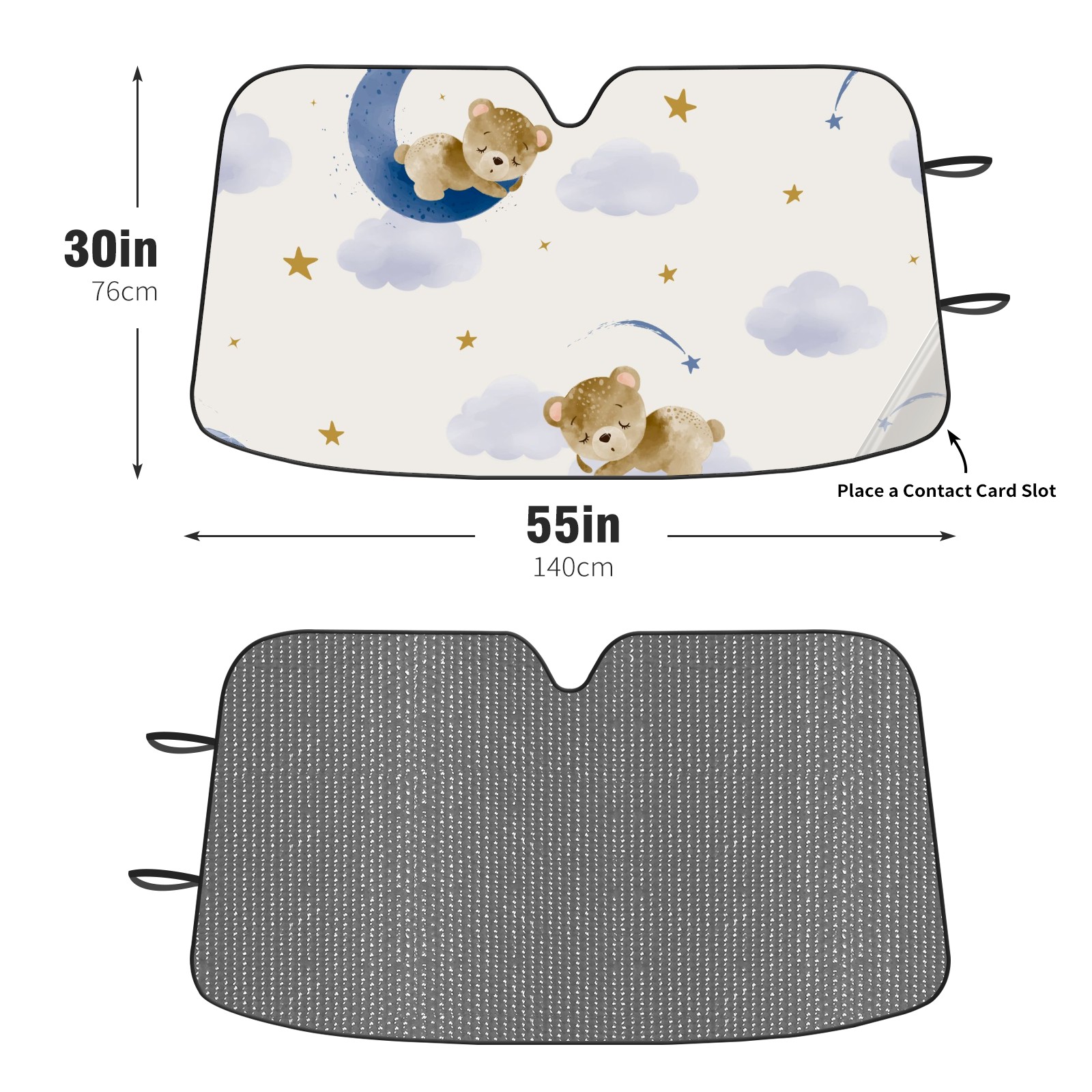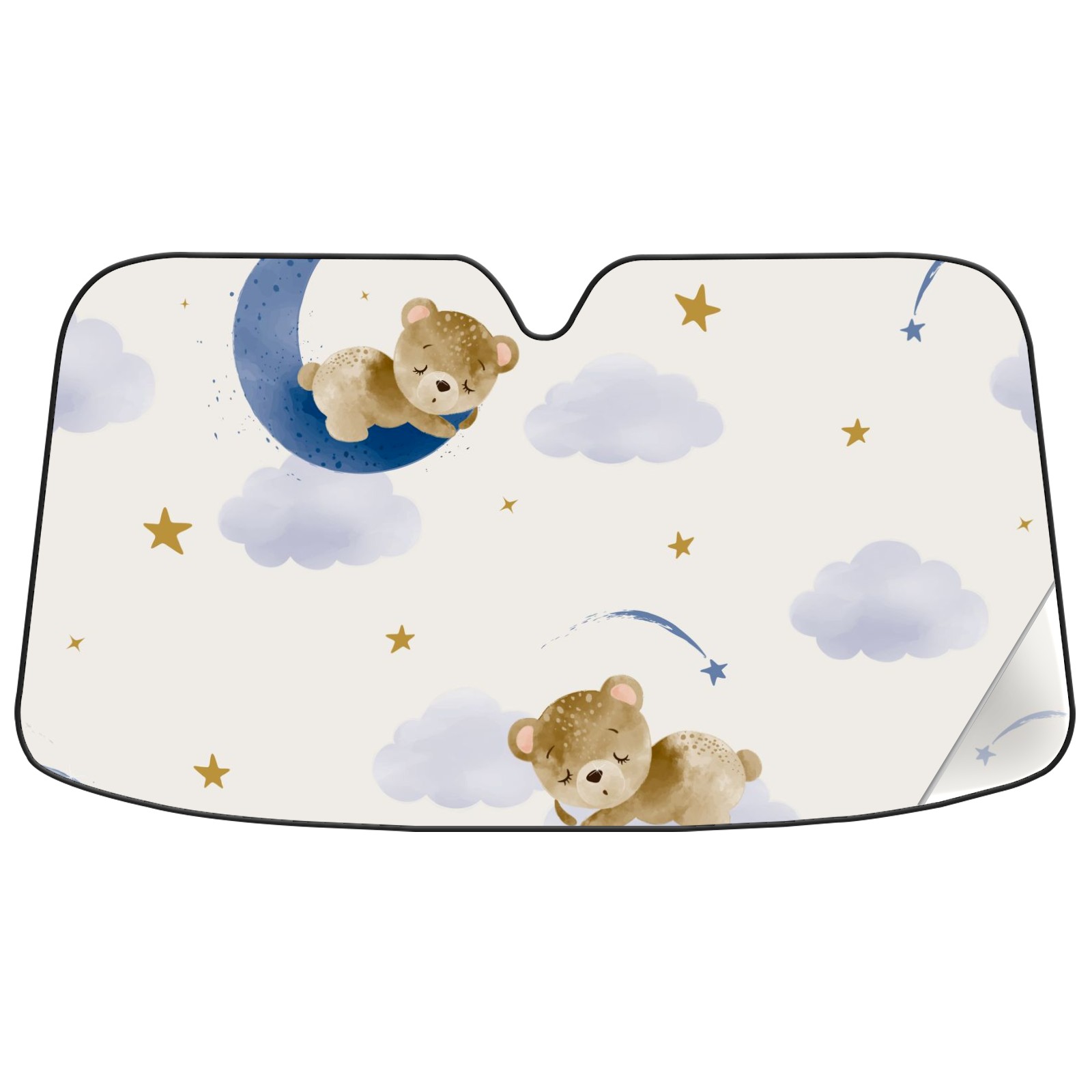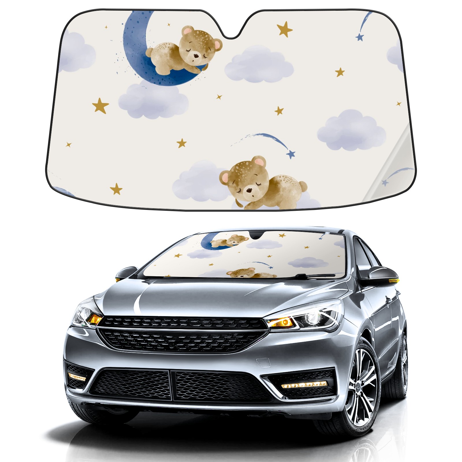 Car Windshield Sun Shade For Front Window Cute Teddy Bear Sleeping On The Moon Foldable Vehicle Windshield Car Sun Visor Covers Automotive Window Protector Car Camping Privacy Sun Blocker