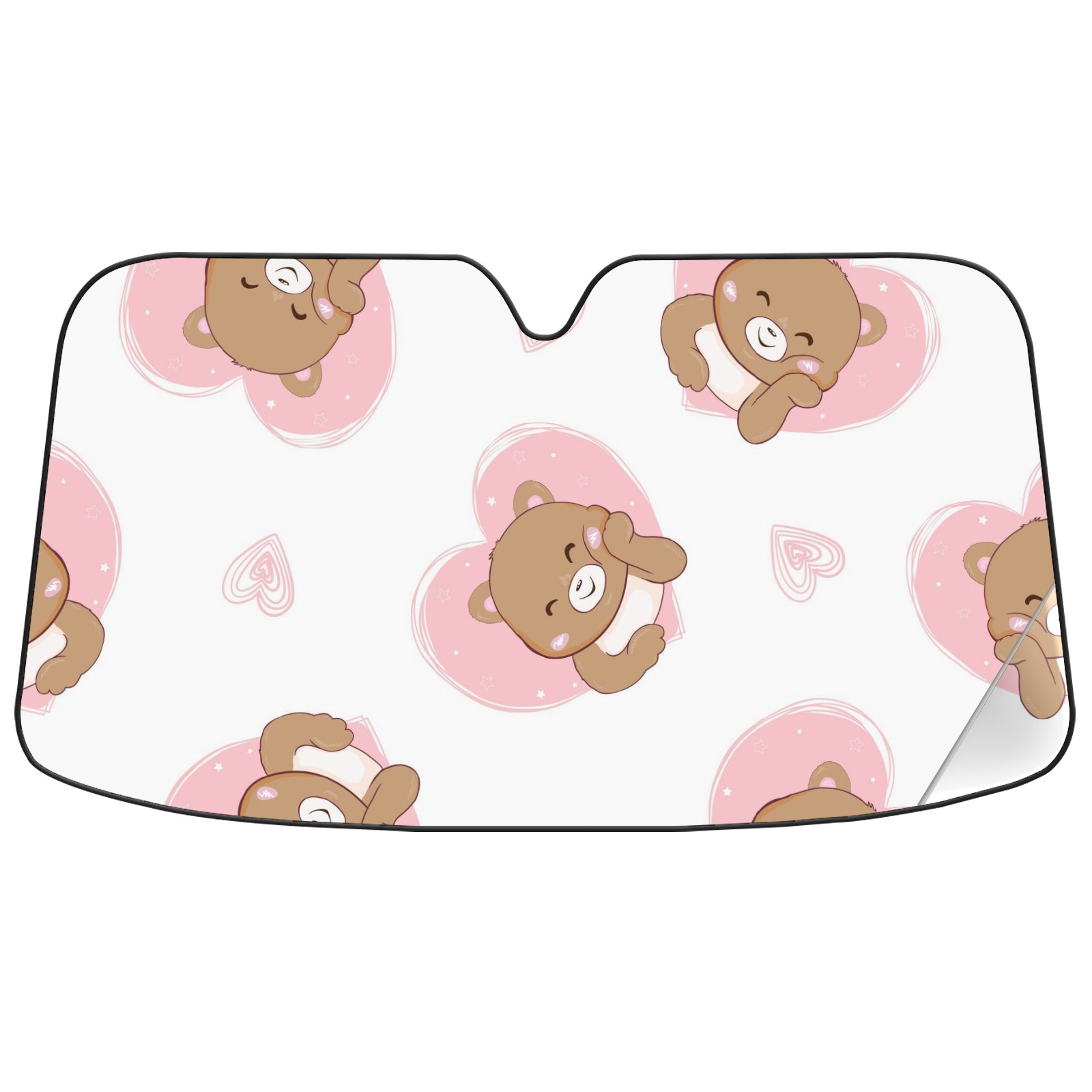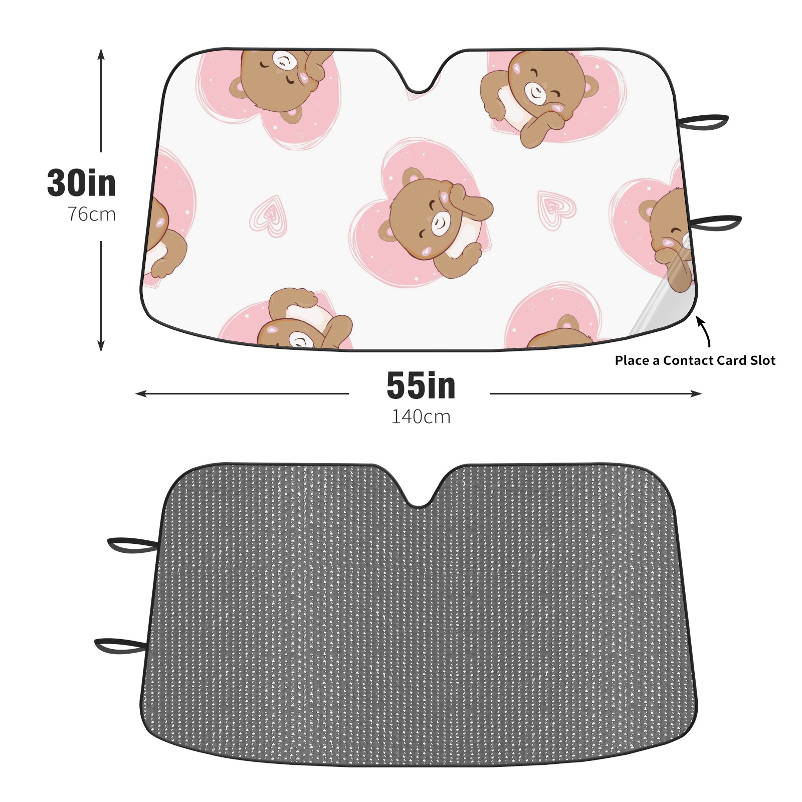 Car Windshield Sun Shade For Front Window Cute Teddy Bear Love Heart Foldable Vehicle Windshield Car Sun Visor Covers Automotive Window Protector Car Camping Privacy Sun Blocker