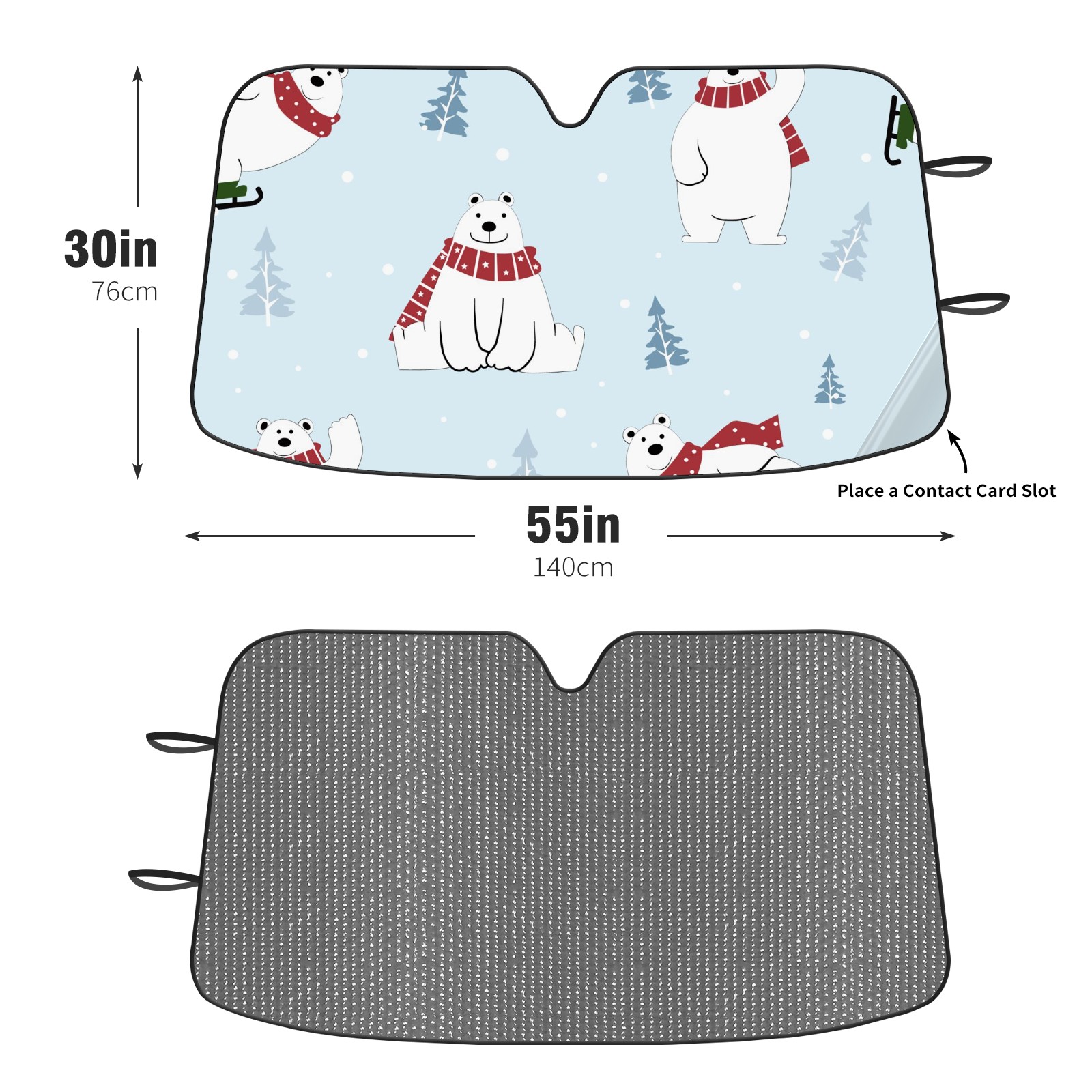 Car Windshield Sun Shade For Front Window Cute Polar Bear Christmas Tree And Snow Foldable Vehicle Windshield Car Sun Visor Covers Automotive Window Protector Car Camping Privacy Sun Blocker