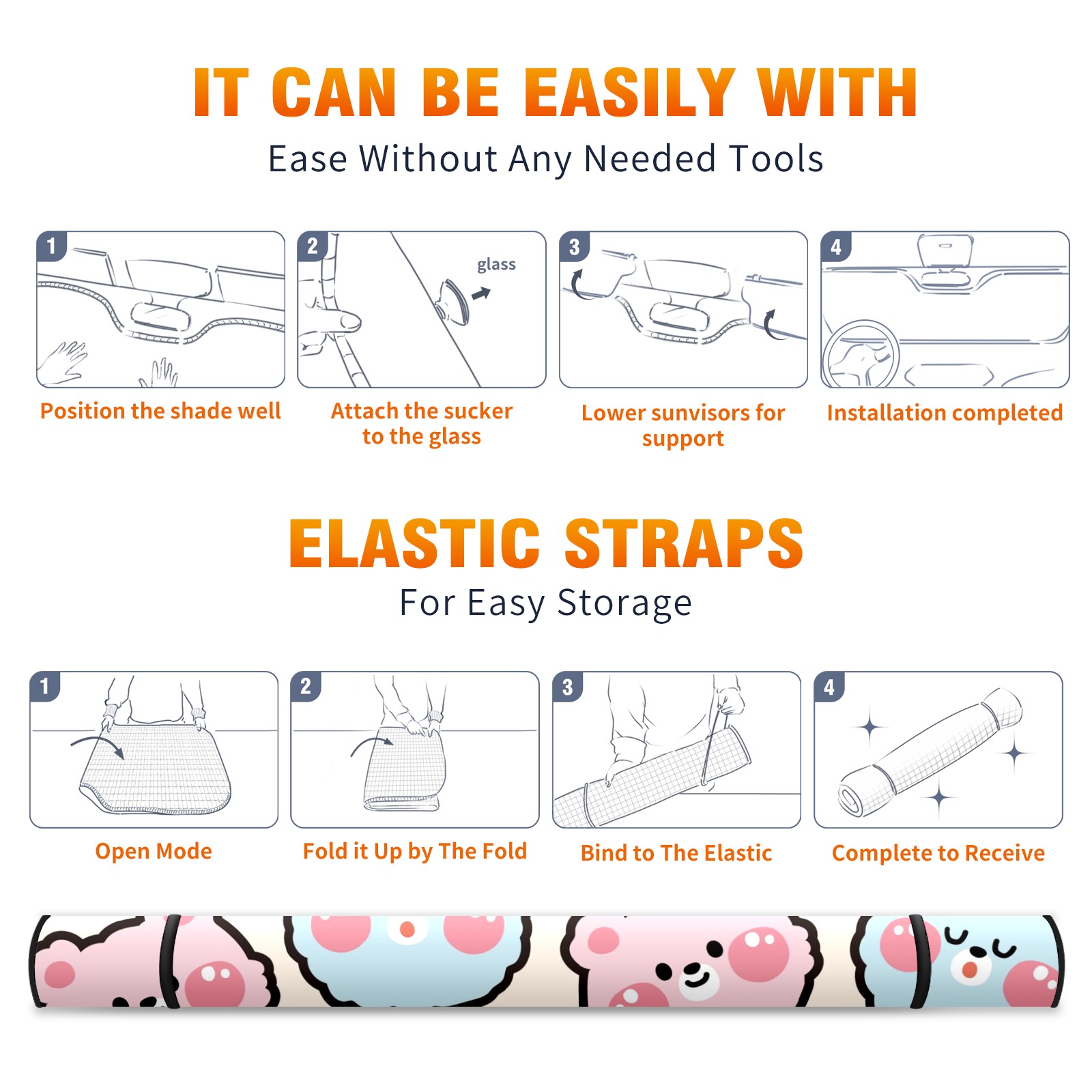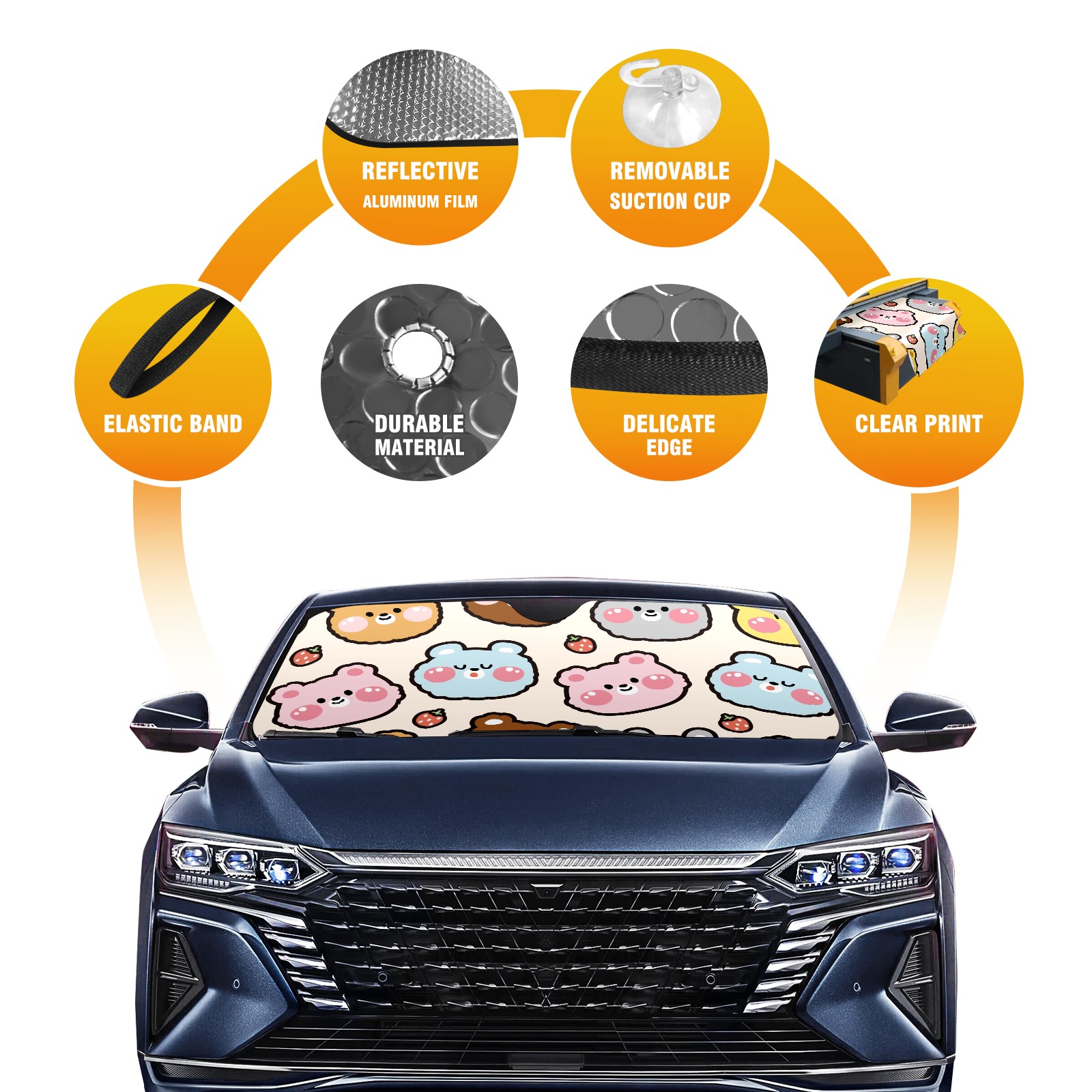 Car Windshield Sun Shade For Front Window Cute Face Bear With Strawberry Foldable Vehicle Windshield Car Sun Visor Covers Automotive Window Protector Car Camping Privacy Sun Blocker