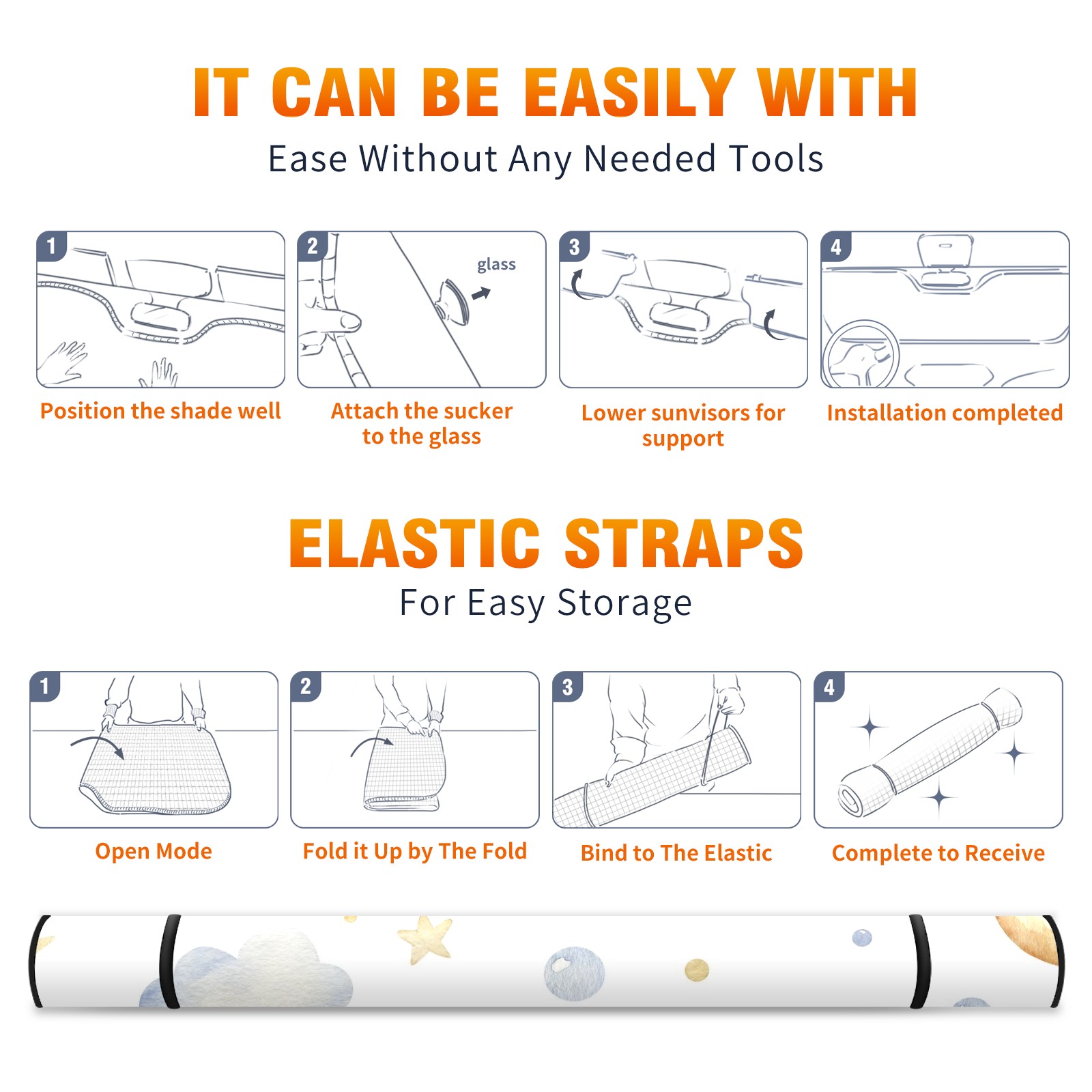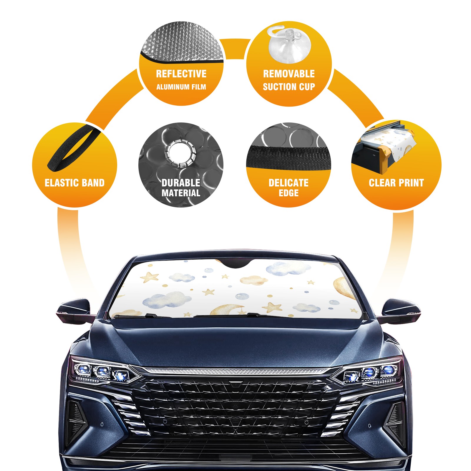 Car Windshield Sun Shade For Front Window Cute Cartoon Moon Cloud Star Foldable Vehicle Windshield Car Sun Visor Covers Automotive Window Protector Car Camping Privacy Sun Blocker