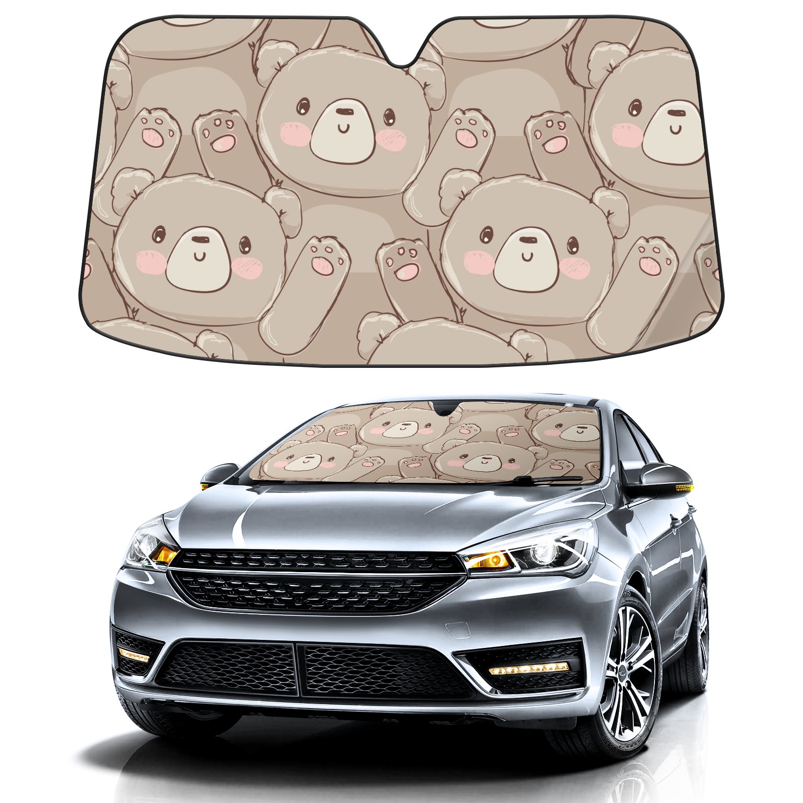 Car Windshield Sun Shade For Front Window Cute Brown Teddy Bear Foldable Vehicle Windshield Car Sun Visor Covers Automotive Window Protector Car Camping Privacy Sun Blocker