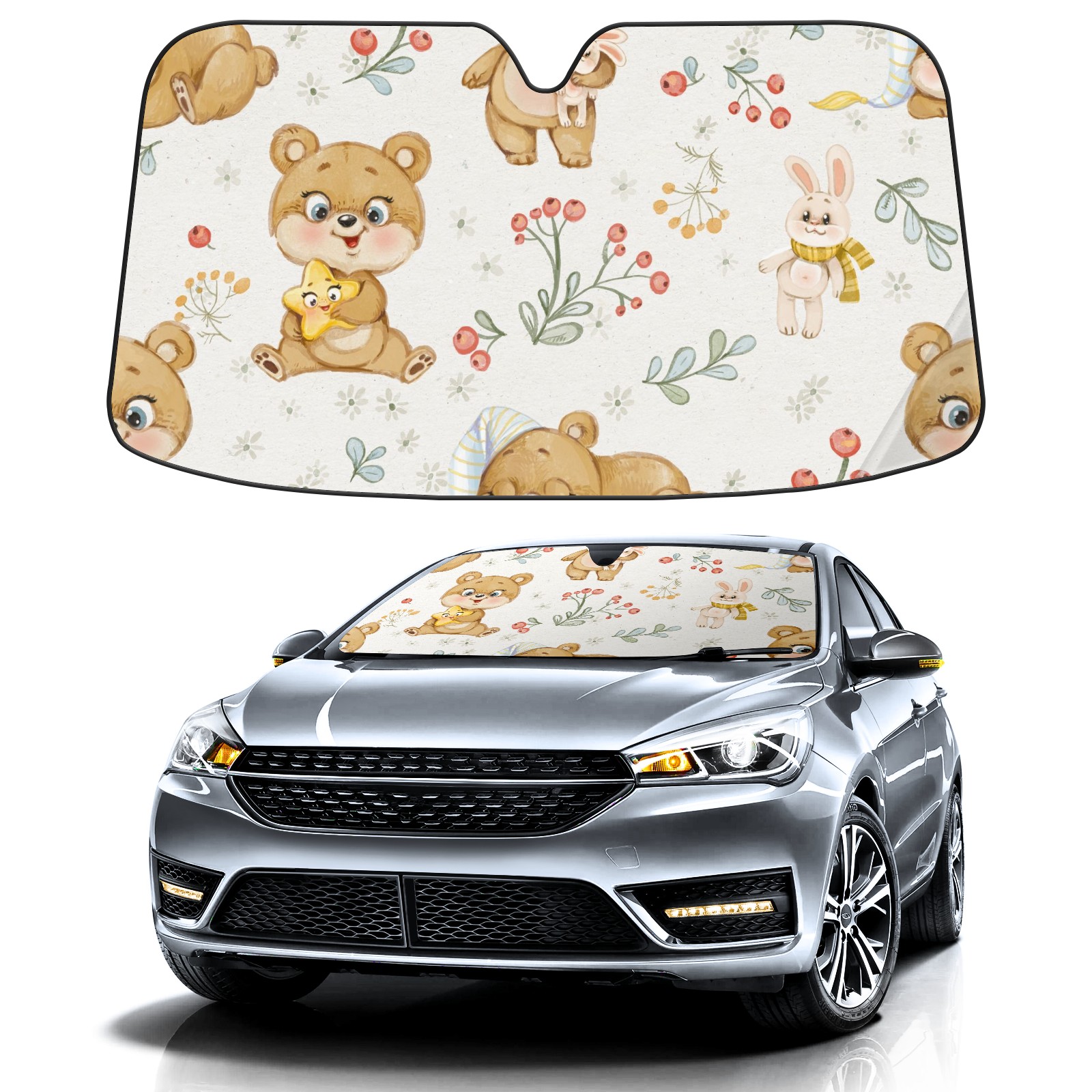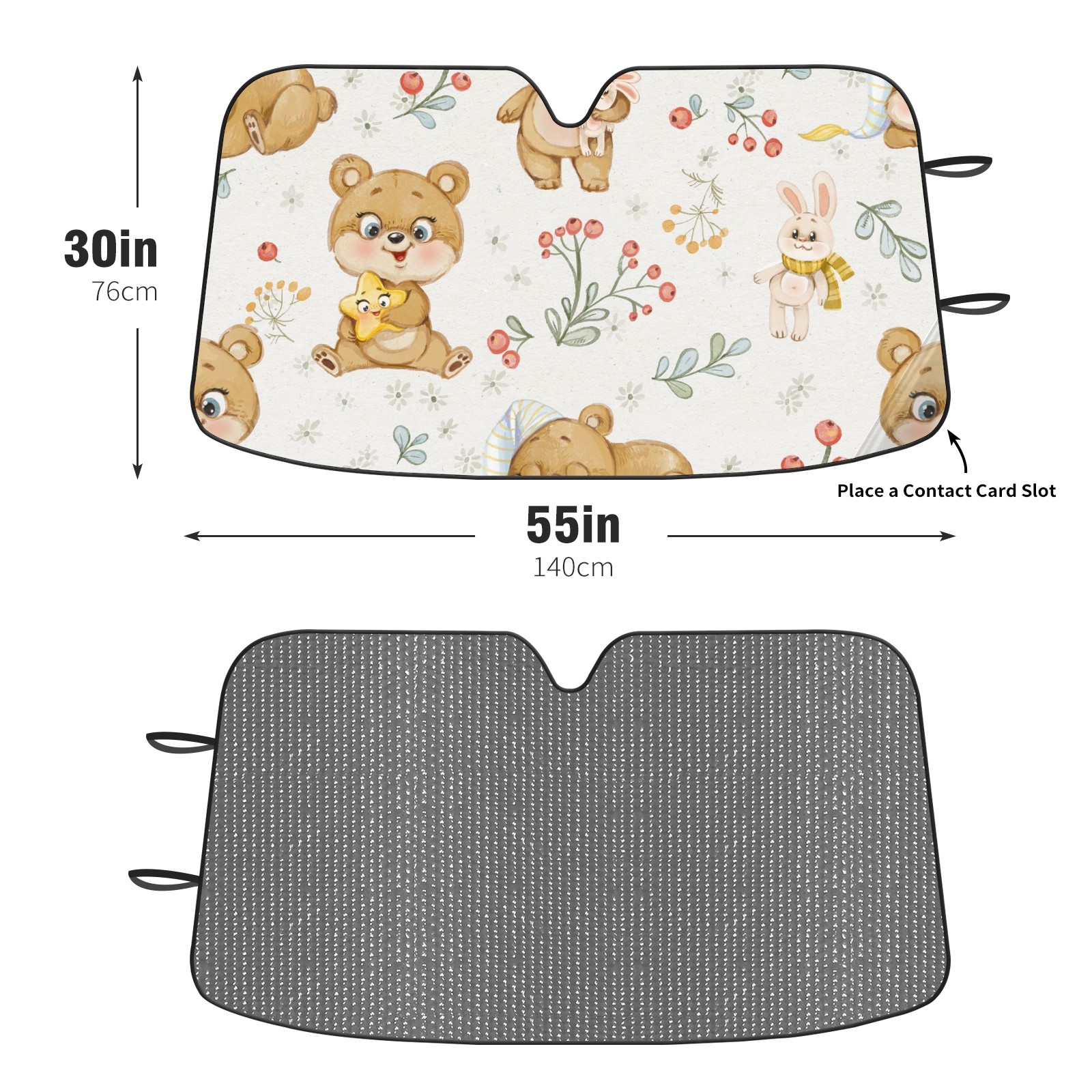 Car Windshield Sun Shade For Front Window Cute Baby Bear Sleep And Rabbit Toy Foldable Vehicle Windshield Car Sun Visor Covers Automotive Window Protector Car Camping Privacy Sun Blocker