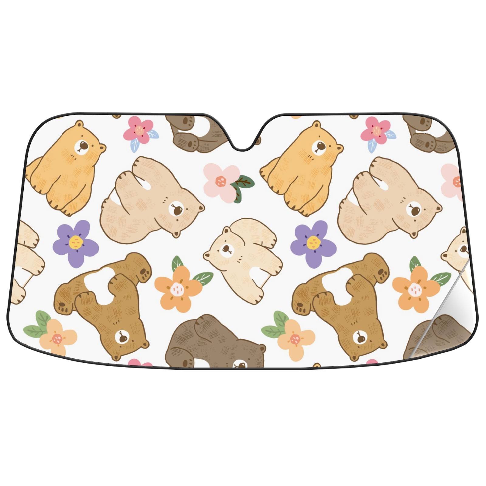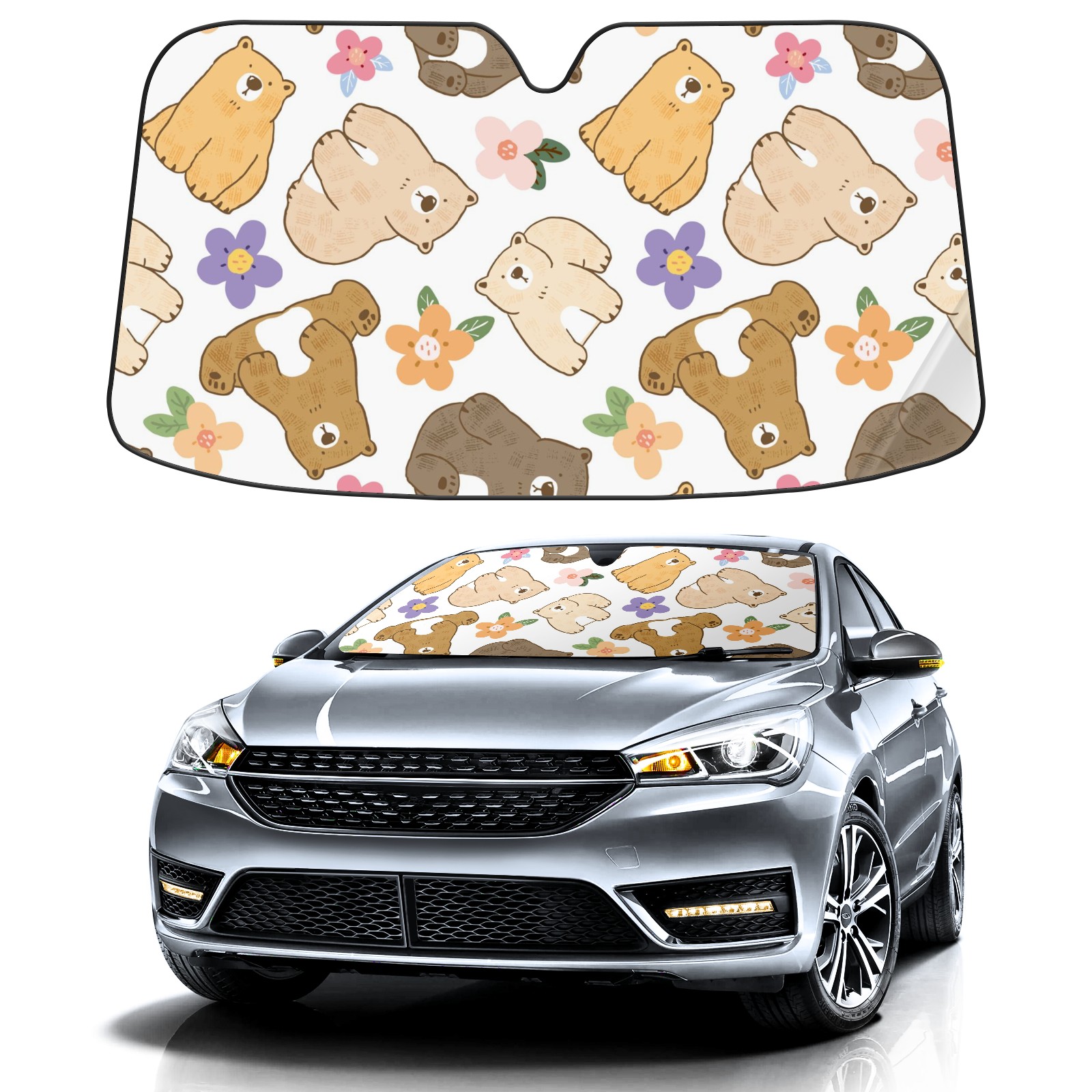 Car Windshield Sun Shade For Front Window Cute Bear And Flower Foldable Vehicle Windshield Car Sun Visor Covers Automotive Window Protector Car Camping Privacy Sun Blocker