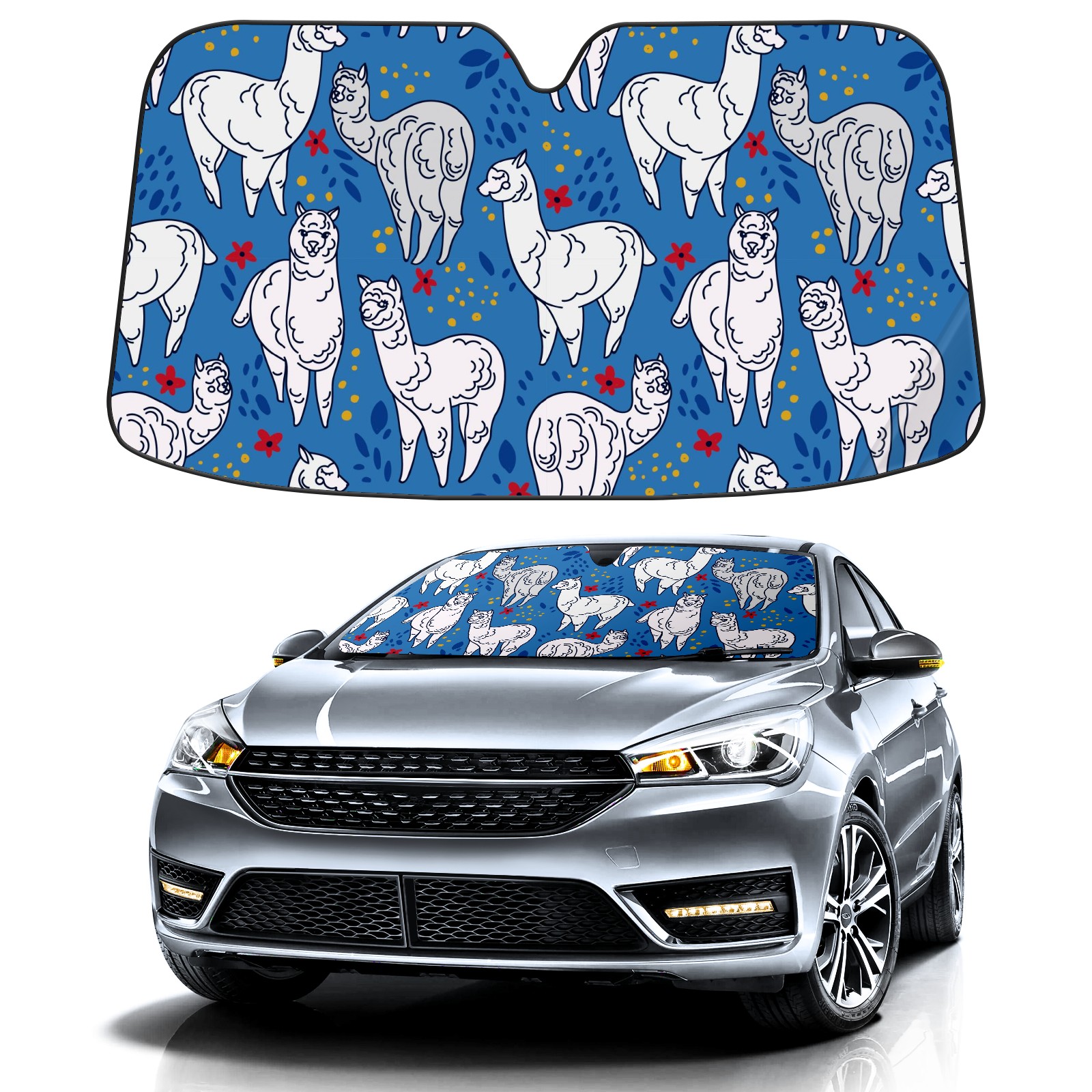 Car Windshield Sun Shade For Front Window Cute Doodle Alpaca And Flowers Foldable Vehicle Windshield Car Sun Visor Covers Automotive Window Protector Car Camping Privacy Sun Blocker