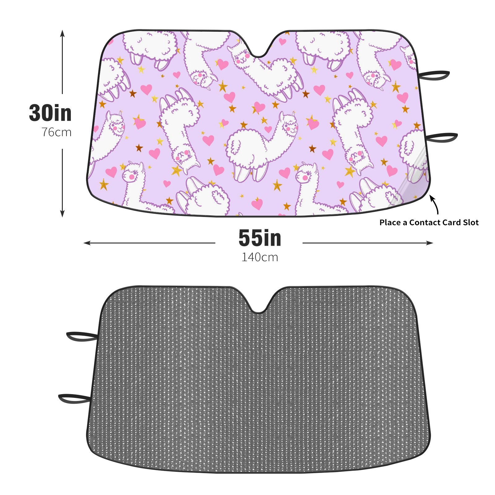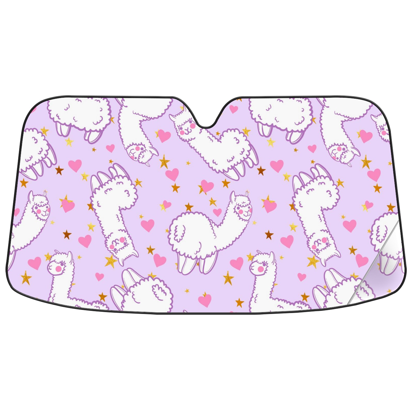 Car Windshield Sun Shade For Front Window Cute Alpacas Hearts Stars Foldable Vehicle Windshield Car Sun Visor Covers Automotive Window Protector Car Camping Privacy Sun Blocker