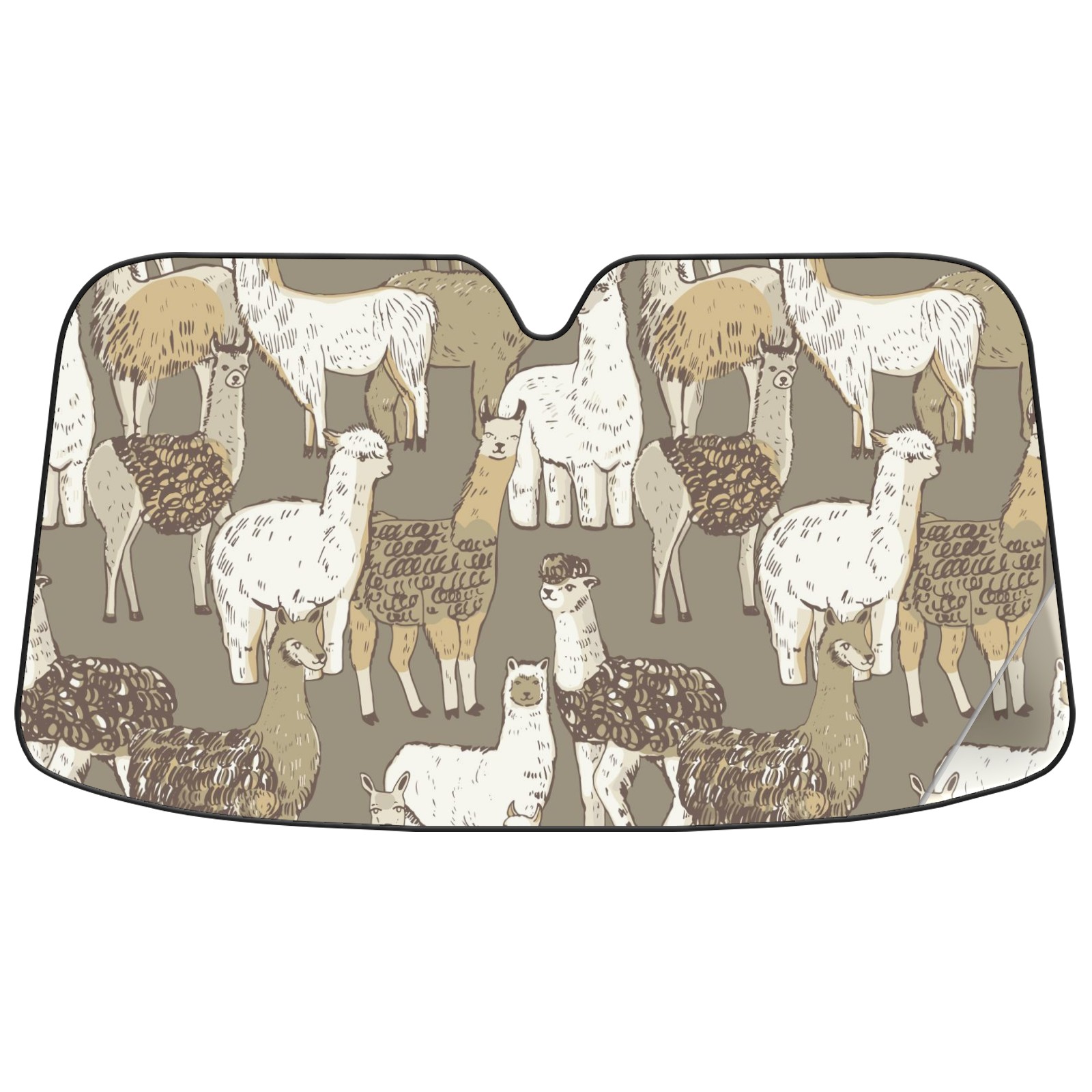 Car Windshield Sun Shade For Front Window Cute Apaca On Brown Background Foldable Vehicle Windshield Car Sun Visor Covers Automotive Window Protector Car Camping Privacy Sun Blocker
