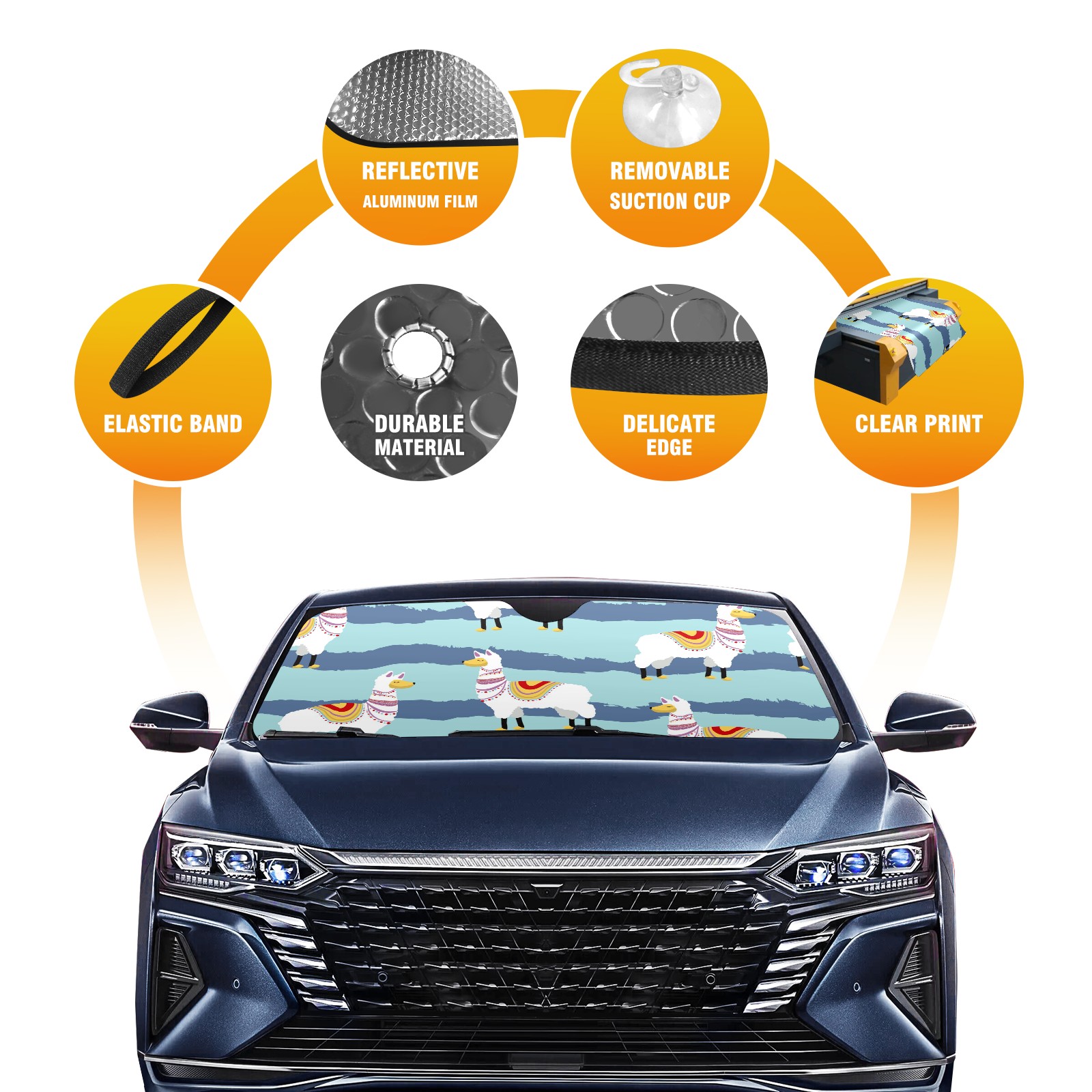 Car Windshield Sun Shade For Front Window Cute Alpaca Stripes Foldable Vehicle Windshield Car Sun Visor Covers Automotive Window Protector Car Camping Privacy Sun Blocker