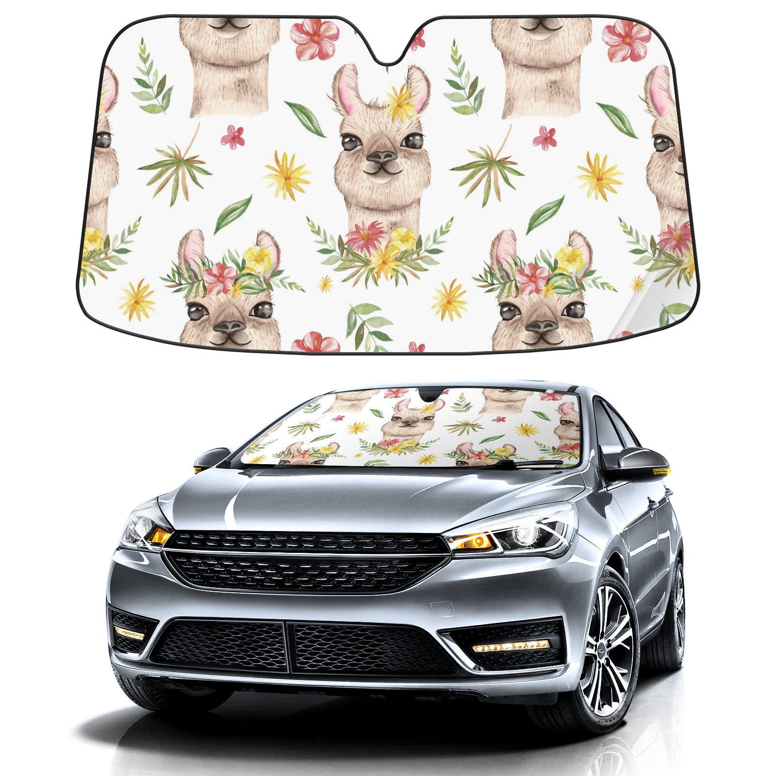 Car Windshield Sun Shade For Front Window Cute Alpaca Flowers Foldable Vehicle Windshield Car Sun Visor Covers Automotive Window Protector Car Camping Privacy Sun Blocker
