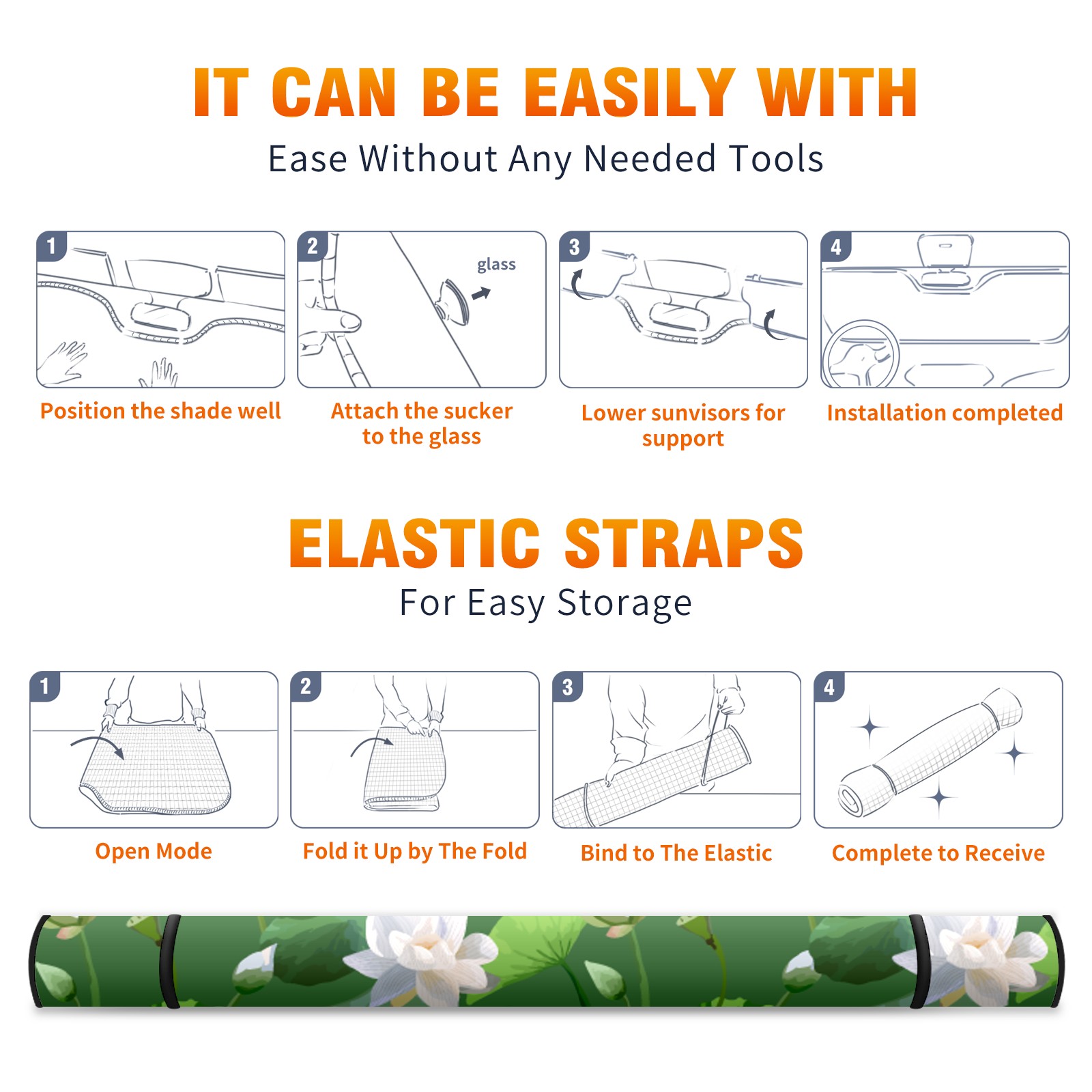 • Diameter /Size 63"L x 33.5"W Made from excellent materials which makes it sturdy and protects the car from the sun. Easy to use and pack. Makes the interior of the car cooler.You can easily stash the sunshade in the storage bag or store long term.It open and closes easy. Also the leather storage bag is durable and easy to put the umbrella back into.This windshield sunshade provides complete coverage and keeps your car interior cool under direct sun. It is easy to open and position under the windshield and around the rear-view mirror. Makes Your Car Easy To Identify, Perfect For Finding Your Car In Crowded Parking Lots And Garages.Great Choice: It Is A Great Gift For Dad, Boyfriend, Brother, Brother And Uncle, Friends, Classmates, Family And So On. Notice: Due To Difference Computer Monitors, The Color Maybe Slightly Different From Picture. As Different Measurement Methods, Measurement Data Will Float Within 2%.I Hope You Understand. If You Have Any Question About The Item Please Do Not Hesitate To Contact Us Immediately And We Will Give You A Satisfactory Reply Within 24 Hours.