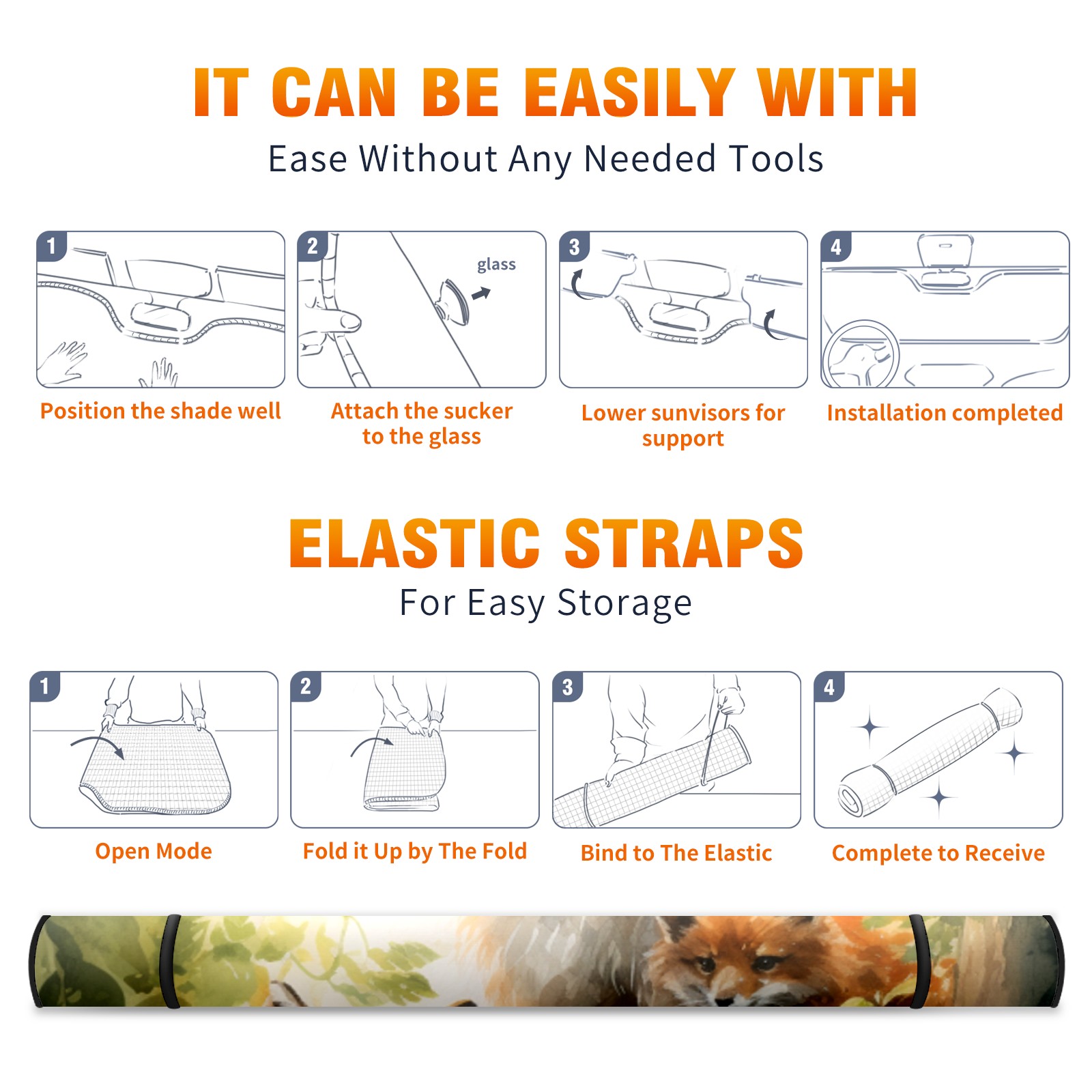 Car Windshield Sun Shade For Front Window Fox 2 Foldable Vehicle Windshield Car Sun Visor Covers Automotive Window Protector Car Camping Privacy Sun Blocker