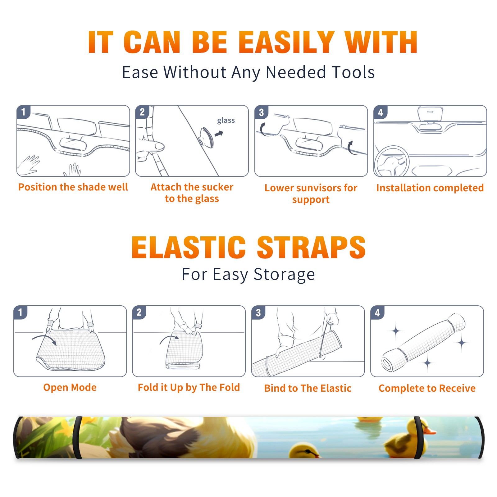 Car Windshield Sun Shade For Front Window Duck 48 Foldable Vehicle Windshield Car Sun Visor Covers Automotive Window Protector Car Camping Privacy Sun Blocker