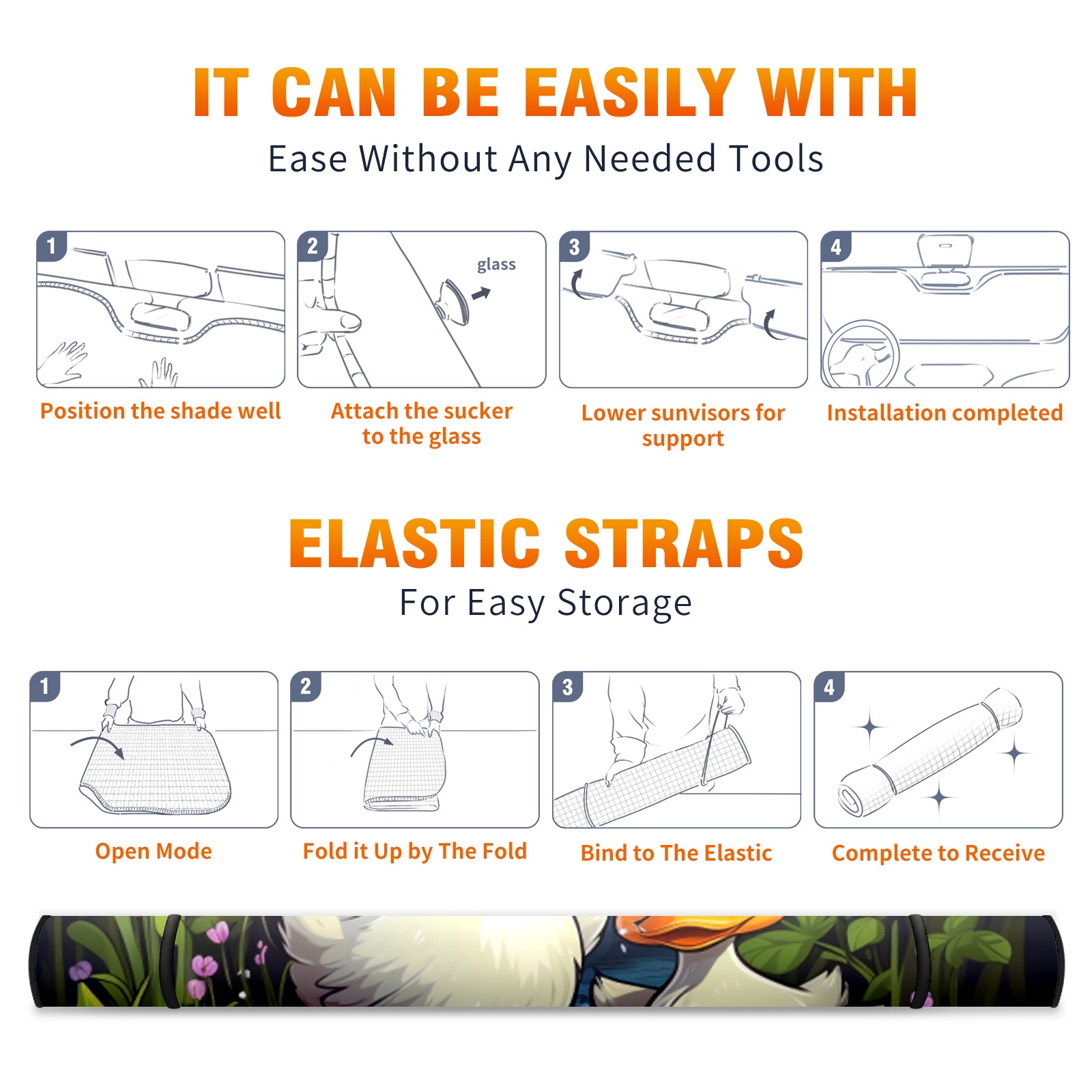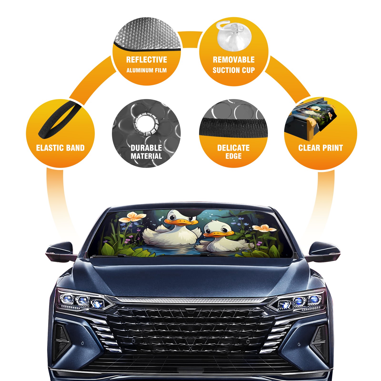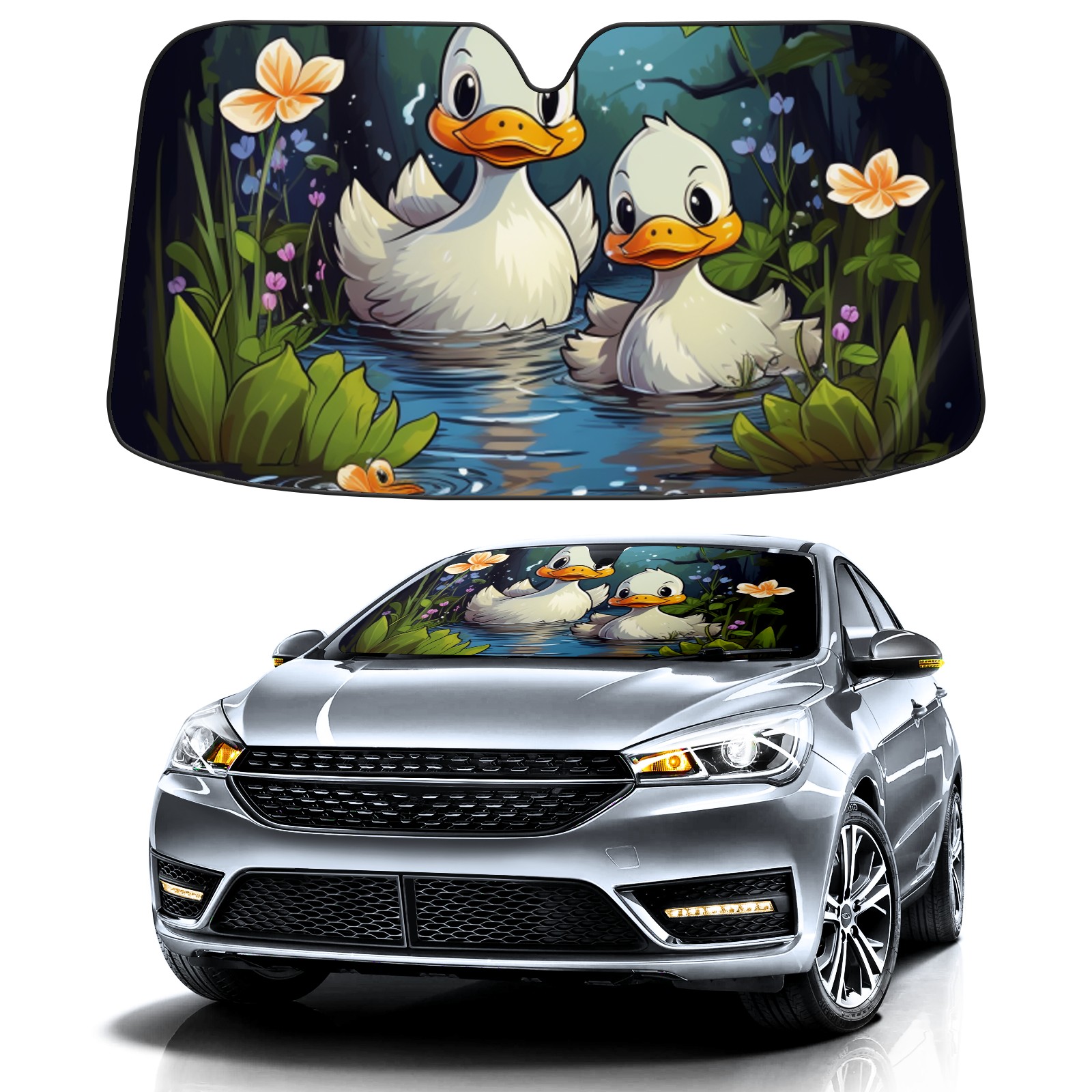 Car Windshield Sun Shade For Front Window Duck 37 Foldable Vehicle Windshield Car Sun Visor Covers Automotive Window Protector Car Camping Privacy Sun Blocker