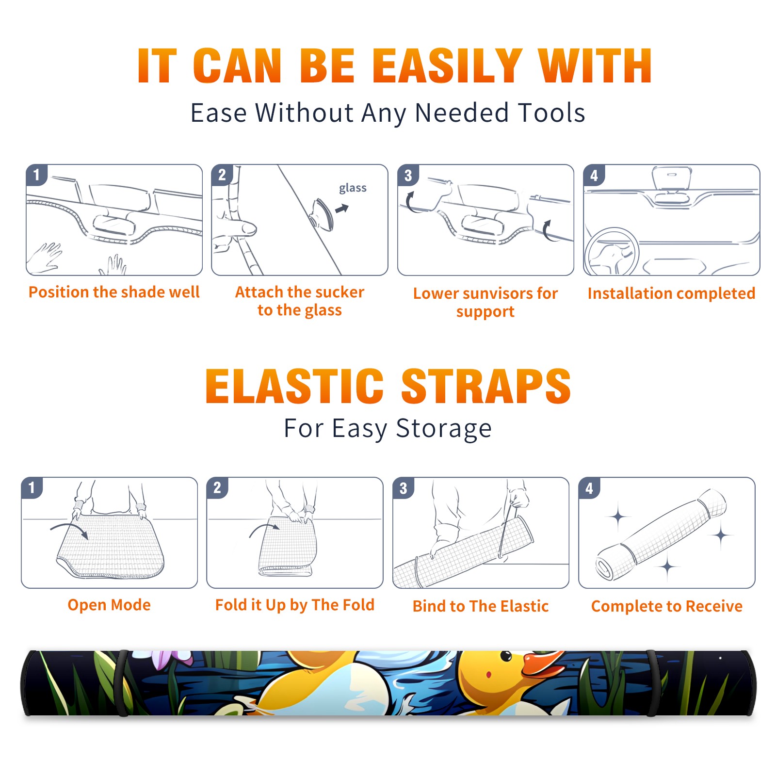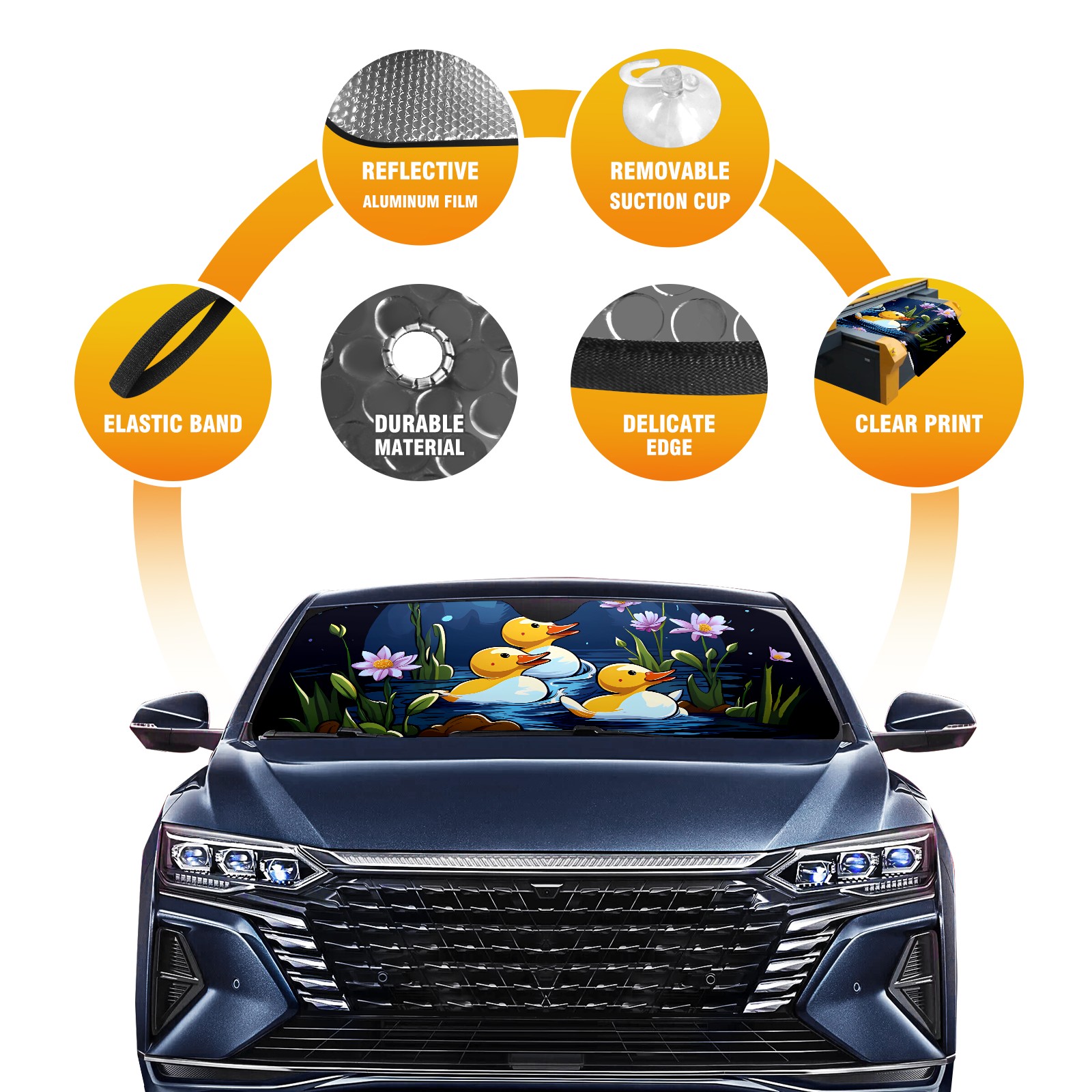 Car Windshield Sun Shade For Front Window Duck 35 Foldable Vehicle Windshield Car Sun Visor Covers Automotive Window Protector Car Camping Privacy Sun Blocker