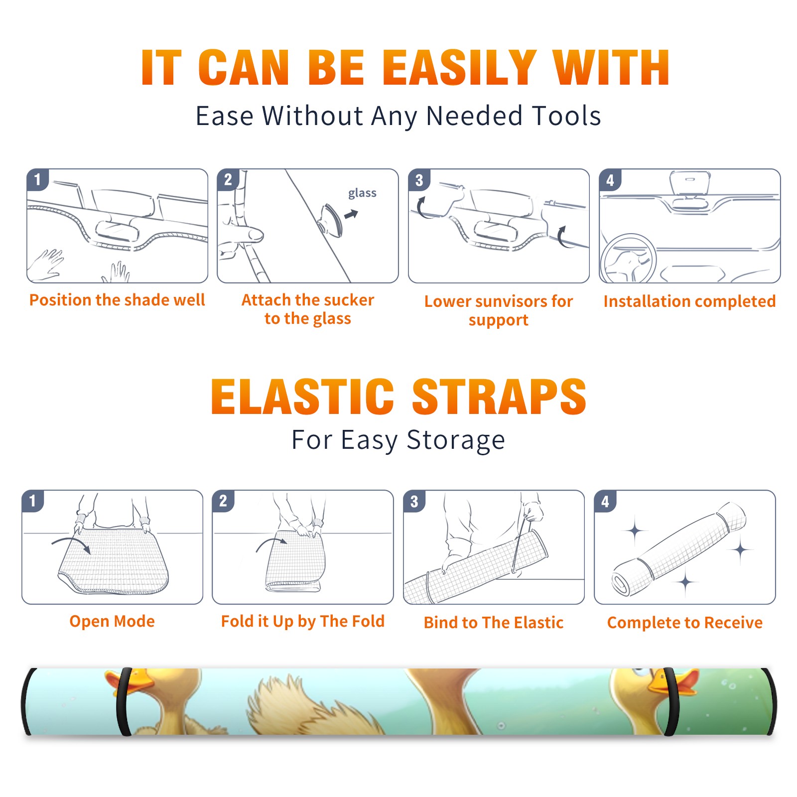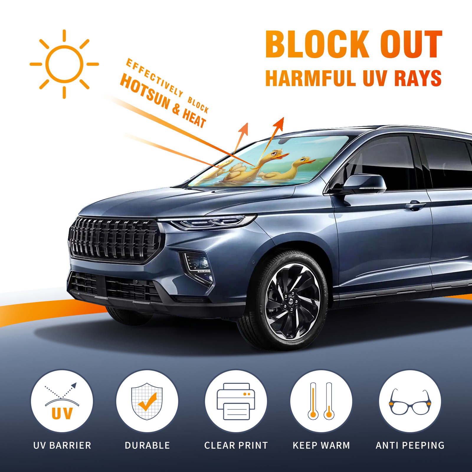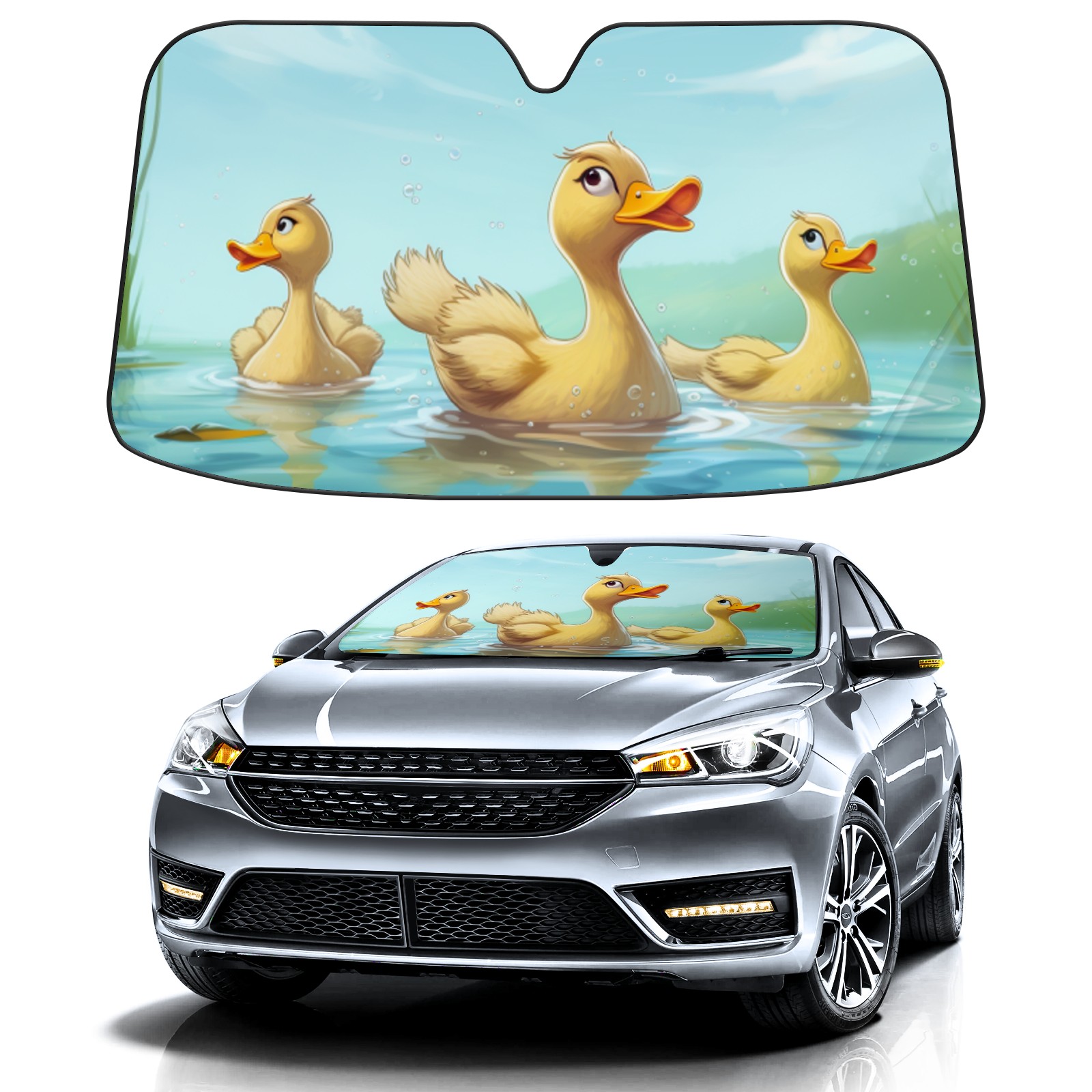 Car Windshield Sun Shade For Front Window Duck 32 Foldable Vehicle Windshield Car Sun Visor Covers Automotive Window Protector Car Camping Privacy Sun Blocker