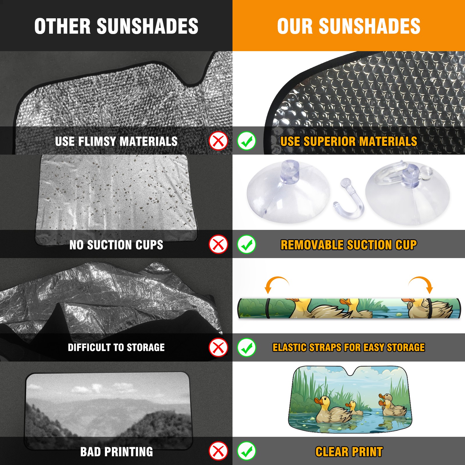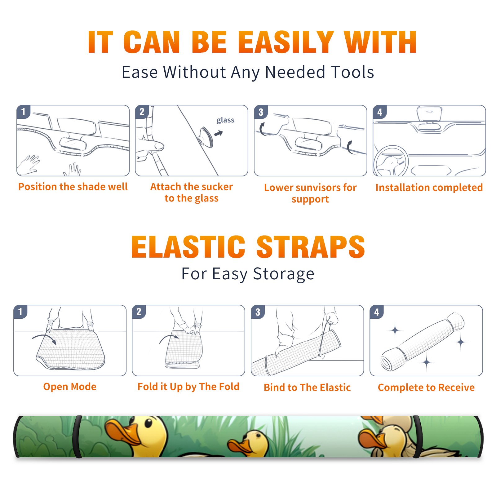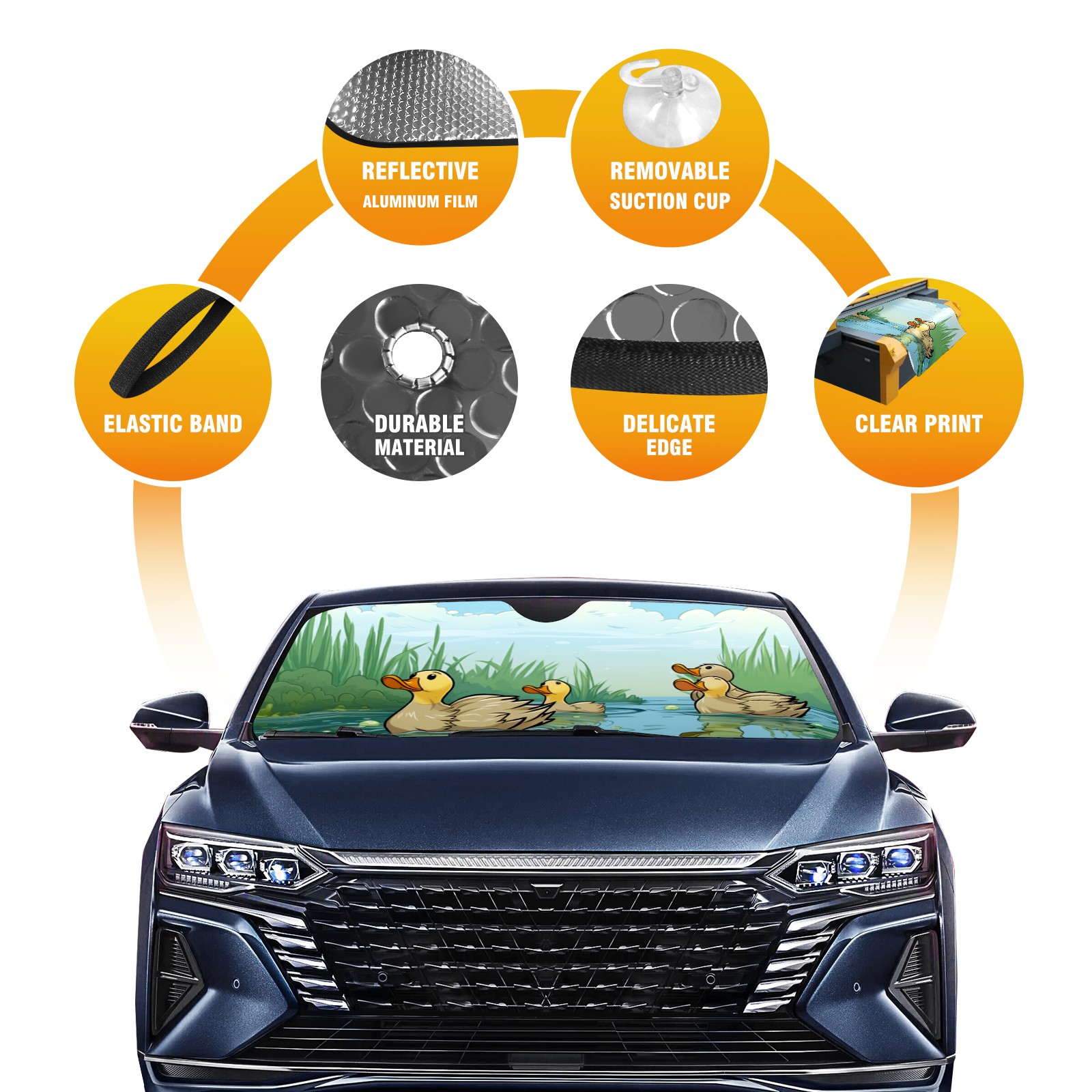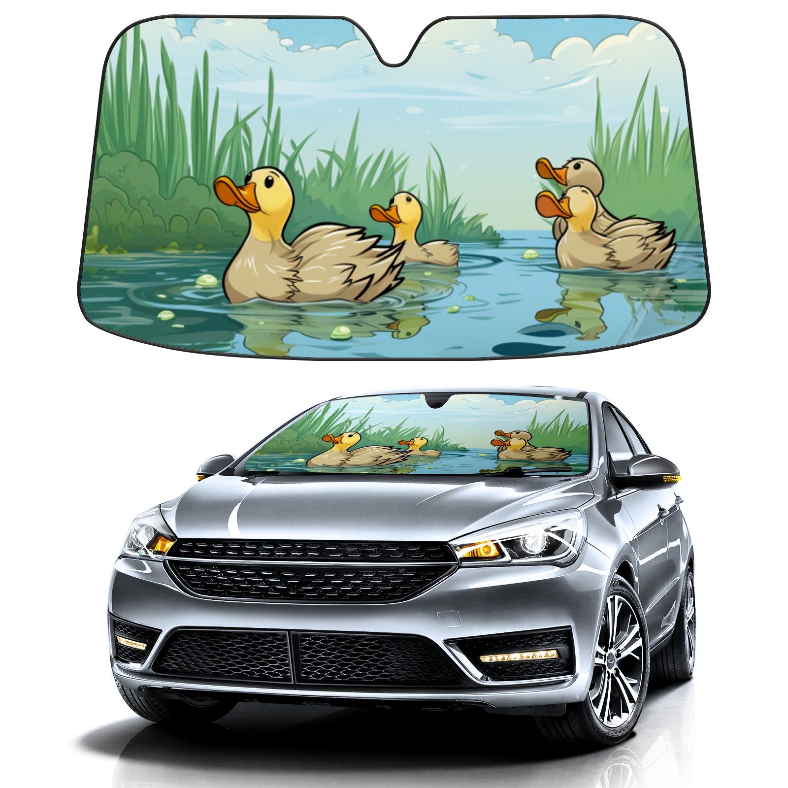 Car Windshield Sun Shade For Front Window Duck 30 Foldable Vehicle Windshield Car Sun Visor Covers Automotive Window Protector Car Camping Privacy Sun Blocker