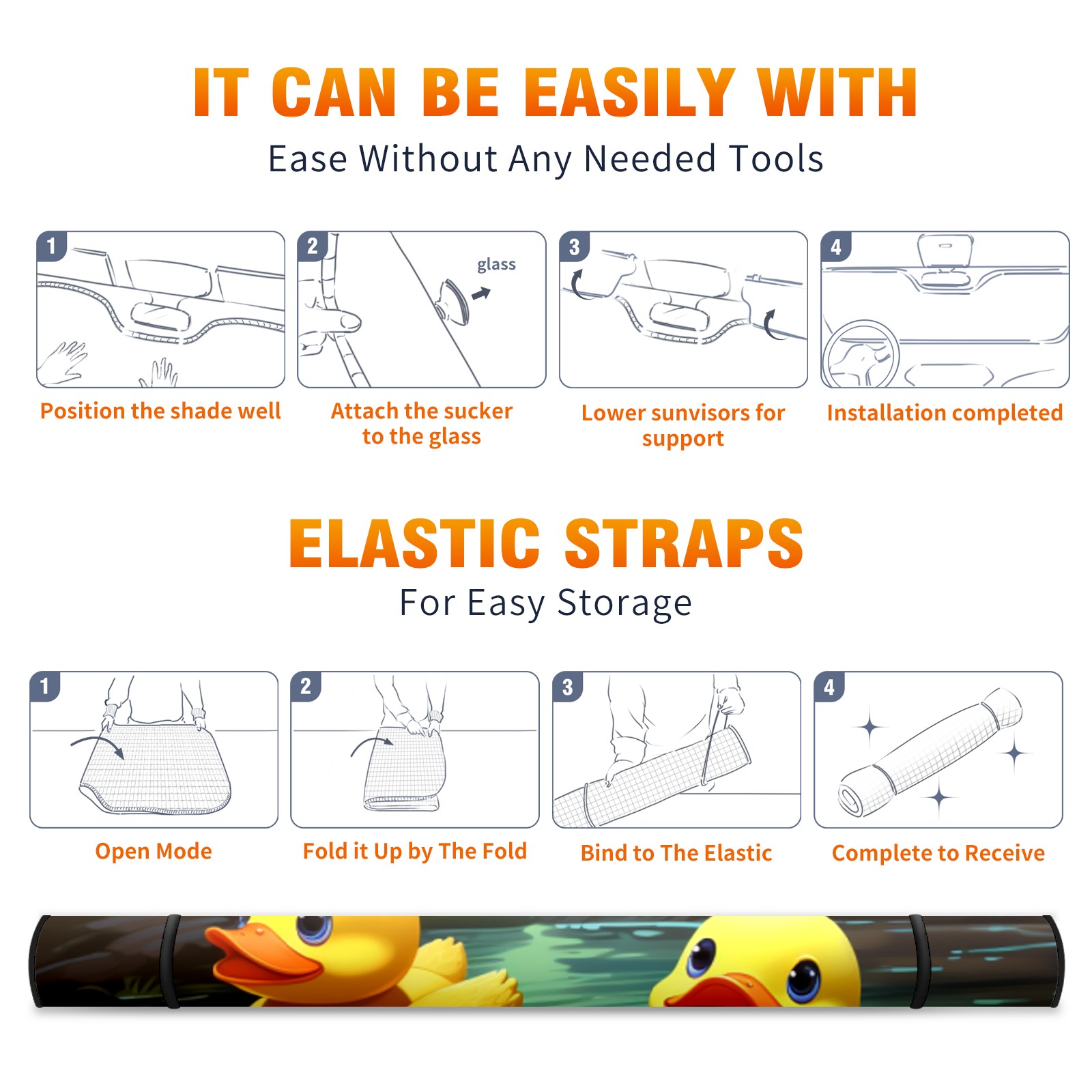 Car Windshield Sun Shade For Front Window Duck 27 Foldable Vehicle Windshield Car Sun Visor Covers Automotive Window Protector Car Camping Privacy Sun Blocker
