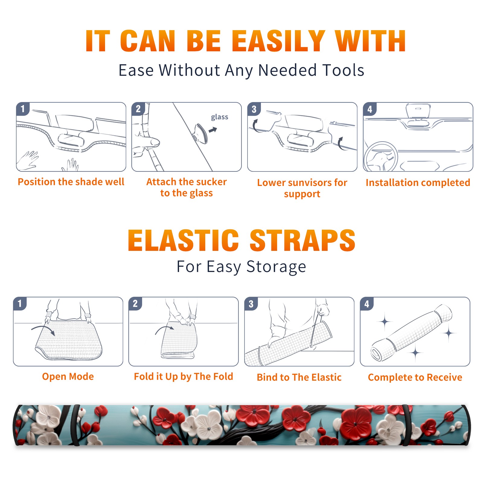 • Diameter /Size 63"L x 33.5"W Made from excellent materials which makes it sturdy and protects the car from the sun. Easy to use and pack. Makes the interior of the car cooler.You can easily stash the sunshade in the storage bag or store long term.It open and closes easy. Also the leather storage bag is durable and easy to put the umbrella back into.This windshield sunshade provides complete coverage and keeps your car interior cool under direct sun. It is easy to open and position under the windshield and around the rear-view mirror. Makes Your Car Easy To Identify, Perfect For Finding Your Car In Crowded Parking Lots And Garages.Great Choice: It Is A Great Gift For Dad, Boyfriend, Brother, Brother And Uncle, Friends, Classmates, Family And So On. Notice: Due To Difference Computer Monitors, The Color Maybe Slightly Different From Picture. As Different Measurement Methods, Measurement Data Will Float Within 2%.I Hope You Understand. If You Have Any Question About The Item Please Do Not Hesitate To Contact Us Immediately And We Will Give You A Satisfactory Reply Within 24 Hours.