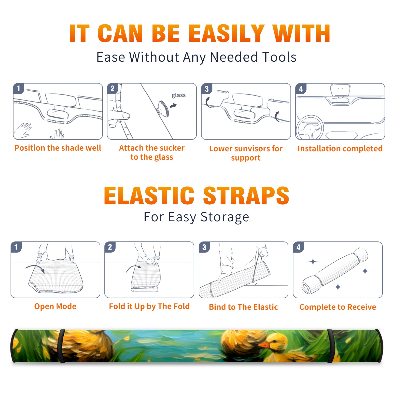 Car Windshield Sun Shade For Front Window Duck 19 Foldable Vehicle Windshield Car Sun Visor Covers Automotive Window Protector Car Camping Privacy Sun Blocker