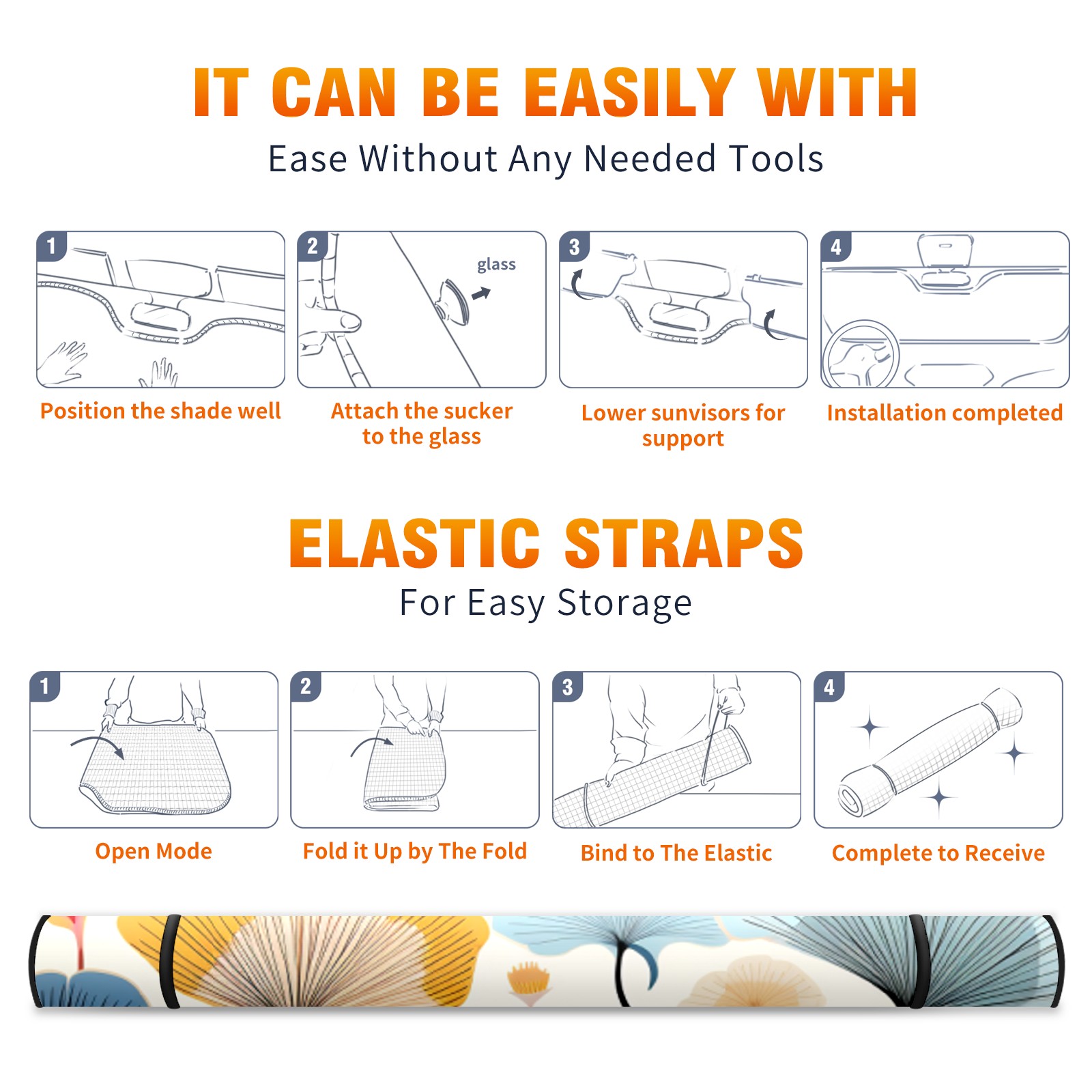 • Diameter /Size 63"L x 33.5"W Made from excellent materials which makes it sturdy and protects the car from the sun. Easy to use and pack. Makes the interior of the car cooler.You can easily stash the sunshade in the storage bag or store long term.It open and closes easy. Also the leather storage bag is durable and easy to put the umbrella back into.This windshield sunshade provides complete coverage and keeps your car interior cool under direct sun. It is easy to open and position under the windshield and around the rear-view mirror. Makes Your Car Easy To Identify, Perfect For Finding Your Car In Crowded Parking Lots And Garages.Great Choice: It Is A Great Gift For Dad, Boyfriend, Brother, Brother And Uncle, Friends, Classmates, Family And So On. Notice: Due To Difference Computer Monitors, The Color Maybe Slightly Different From Picture. As Different Measurement Methods, Measurement Data Will Float Within 2%.I Hope You Understand. If You Have Any Question About The Item Please Do Not Hesitate To Contact Us Immediately And We Will Give You A Satisfactory Reply Within 24 Hours.