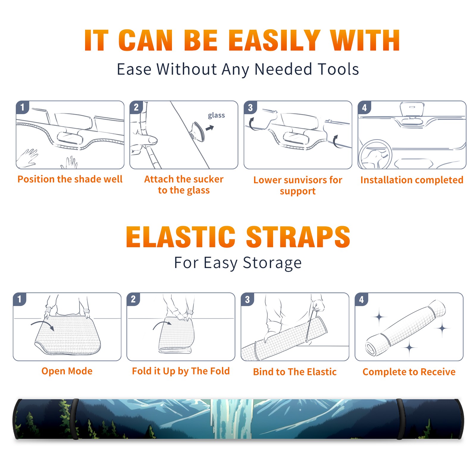 • Diameter /Size 63"L x 33.5"W Made from excellent materials which makes it sturdy and protects the car from the sun. Easy to use and pack. Makes the interior of the car cooler.You can easily stash the sunshade in the storage bag or store long term.It open and closes easy. Also the leather storage bag is durable and easy to put the umbrella back into.This windshield sunshade provides complete coverage and keeps your car interior cool under direct sun. It is easy to open and position under the windshield and around the rear-view mirror. Makes Your Car Easy To Identify, Perfect For Finding Your Car In Crowded Parking Lots And Garages.Great Choice: It Is A Great Gift For Dad, Boyfriend, Brother, Brother And Uncle, Friends, Classmates, Family And So On. Notice: Due To Difference Computer Monitors, The Color Maybe Slightly Different From Picture. As Different Measurement Methods, Measurement Data Will Float Within 2%.I Hope You Understand. If You Have Any Question About The Item Please Do Not Hesitate To Contact Us Immediately And We Will Give You A Satisfactory Reply Within 24 Hours.