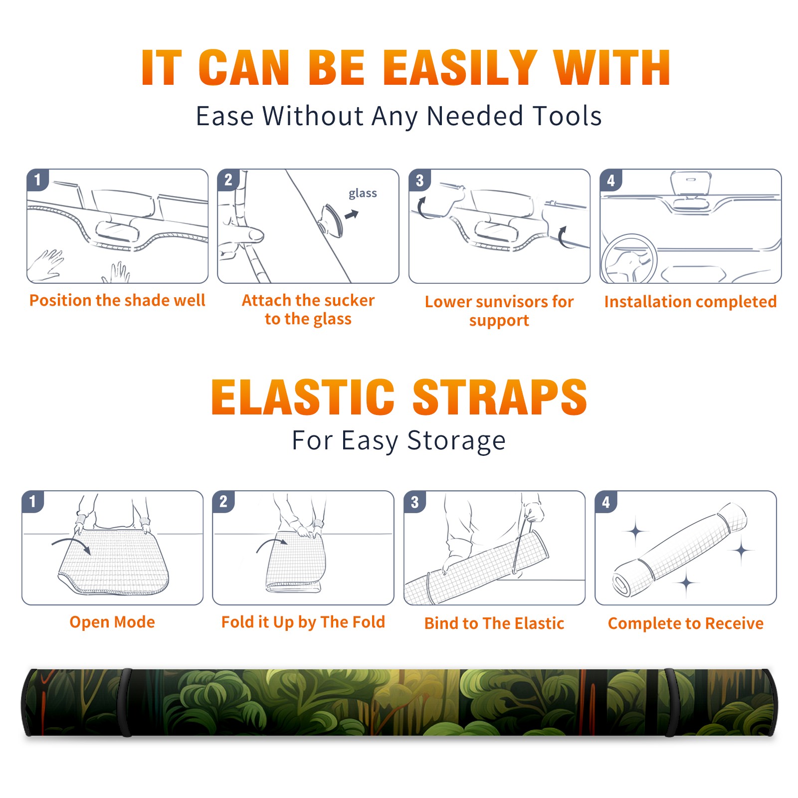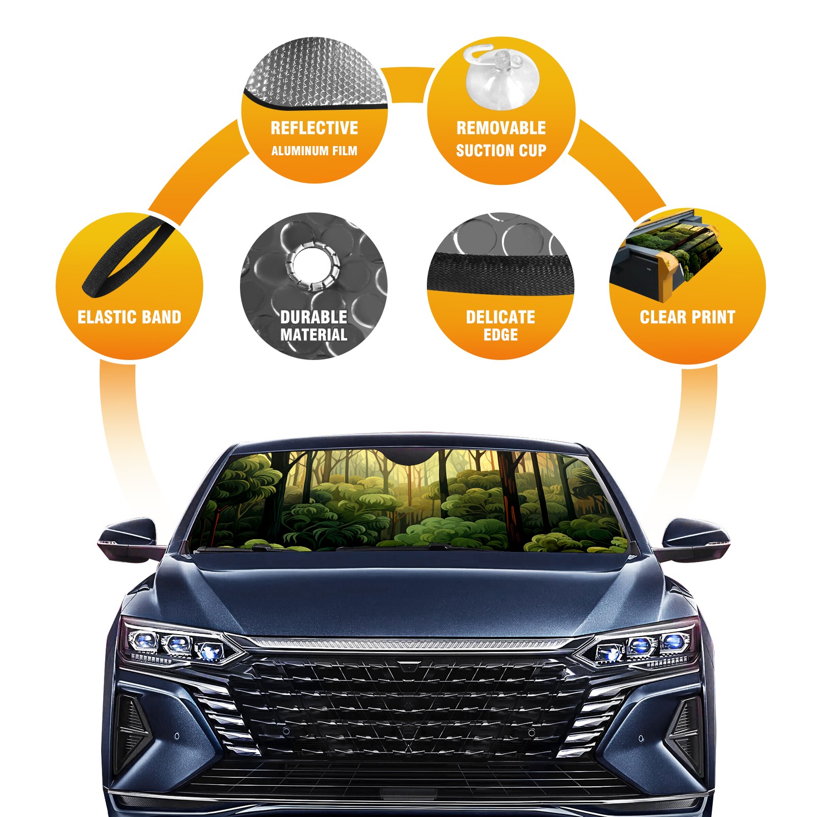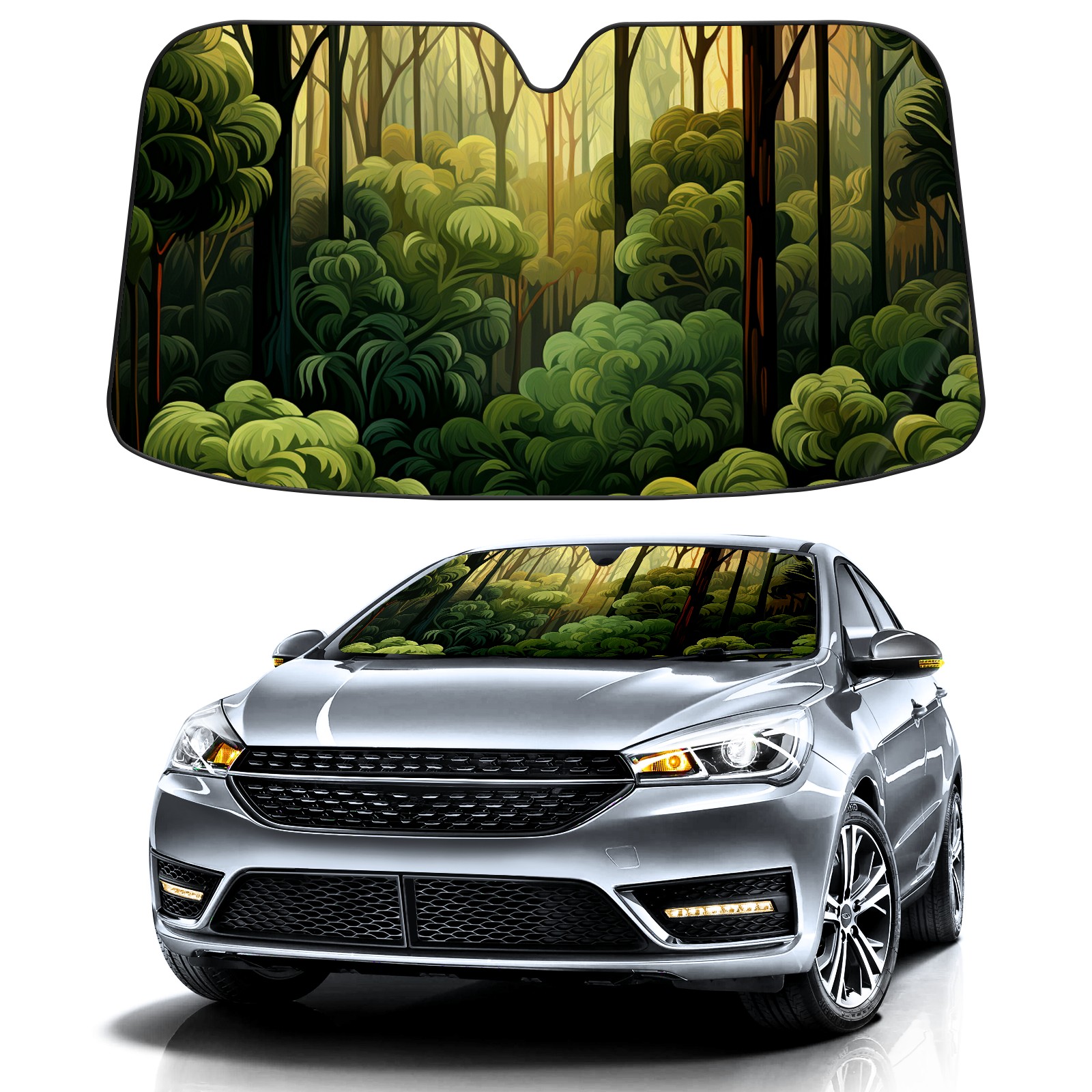 Car Windshield Sun Shade For Front Window Trees And Forests 3 Foldable Vehicle Windshield Car Sun Visor Covers Automotive Window Protector Car Camping Privacy Sun Blocker