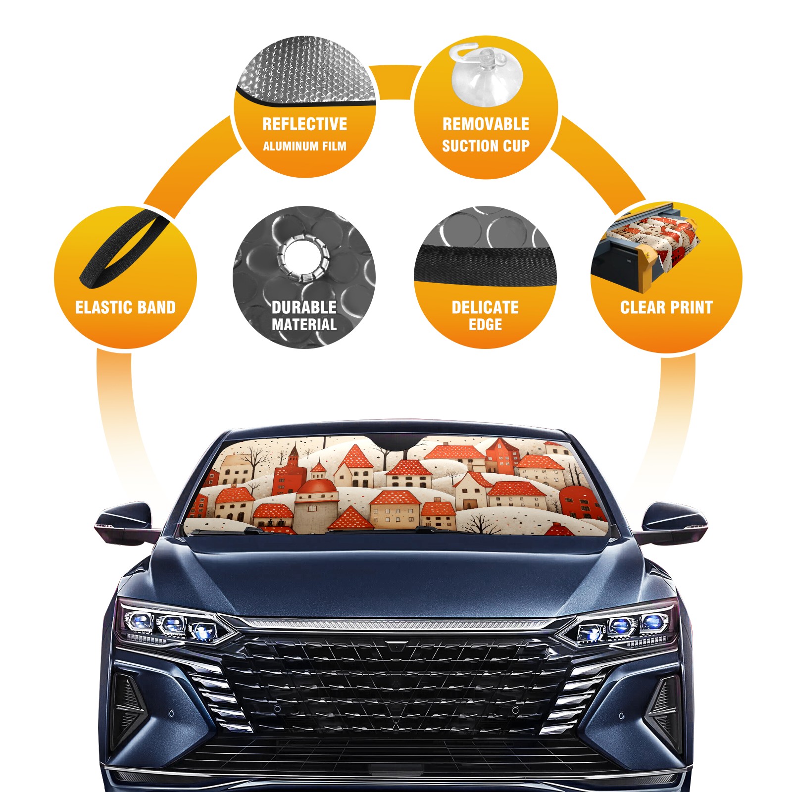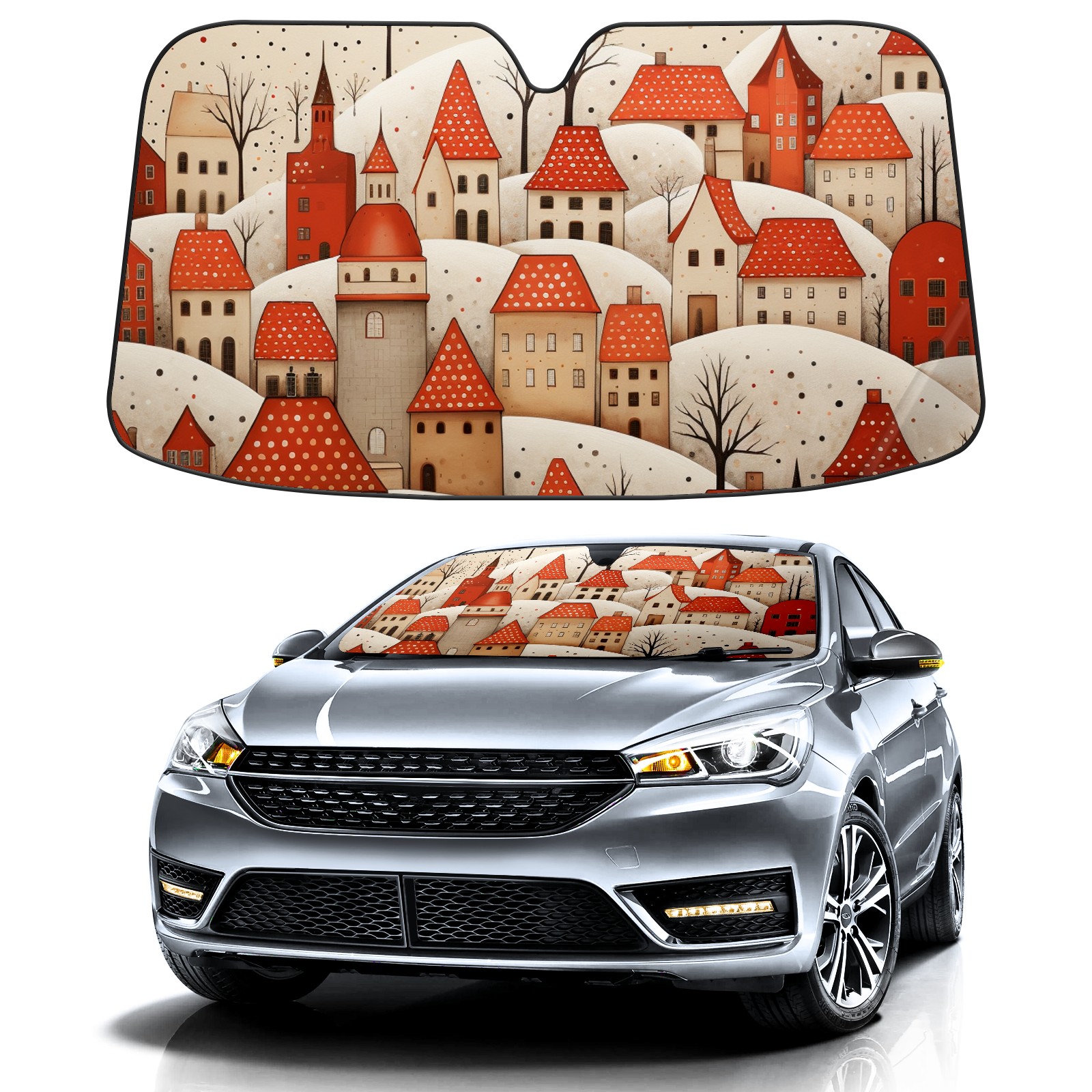 Car Windshield Sun Shade For Front Window The House Inside The Snow Foldable Vehicle Windshield Car Sun Visor Covers Automotive Window Protector Car Camping Privacy Sun Blocker