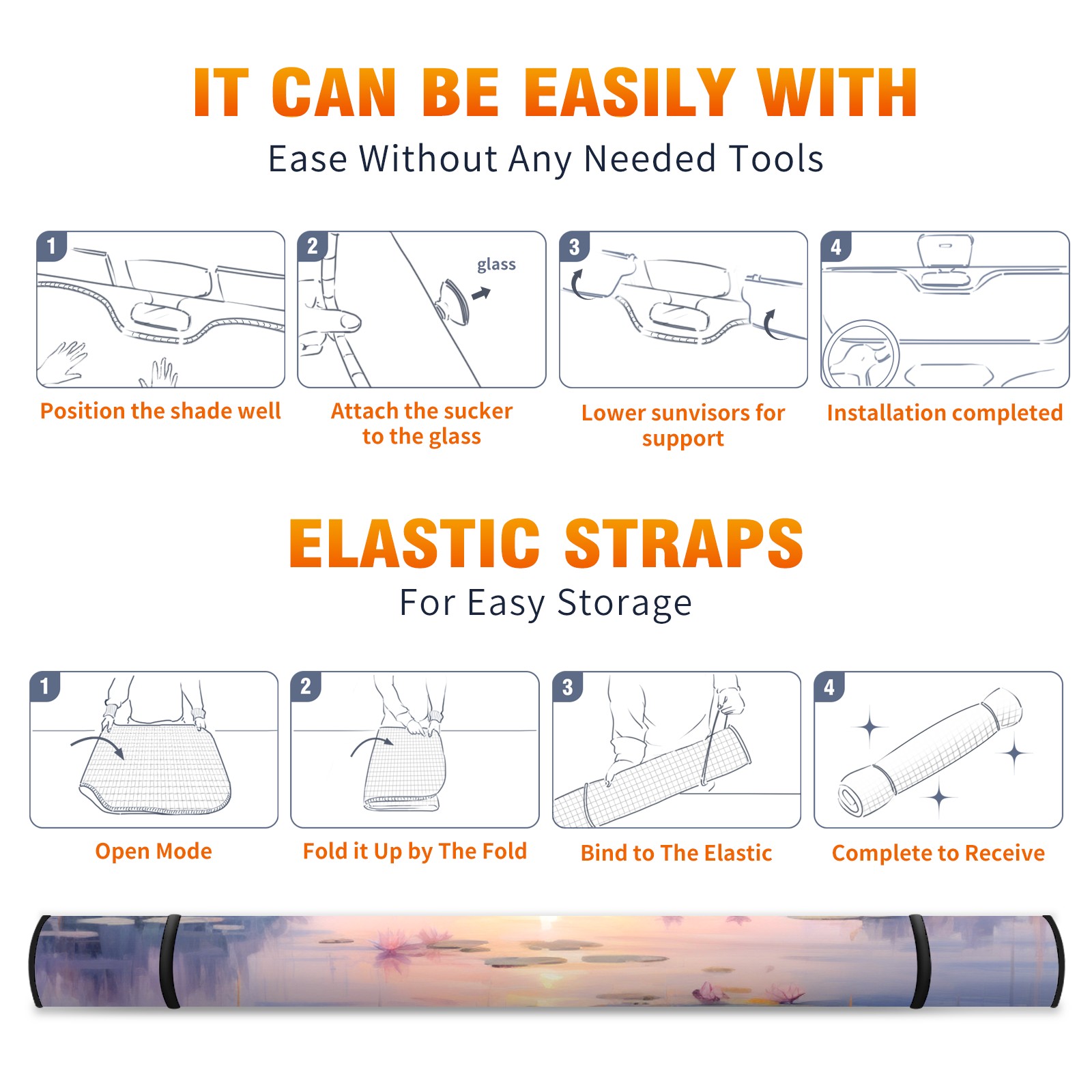 • Diameter /Size 63"L x 33.5"W Made from excellent materials which makes it sturdy and protects the car from the sun. Easy to use and pack. Makes the interior of the car cooler.You can easily stash the sunshade in the storage bag or store long term.It open and closes easy. Also the leather storage bag is durable and easy to put the umbrella back into.This windshield sunshade provides complete coverage and keeps your car interior cool under direct sun. It is easy to open and position under the windshield and around the rear-view mirror. Makes Your Car Easy To Identify, Perfect For Finding Your Car In Crowded Parking Lots And Garages.Great Choice: It Is A Great Gift For Dad, Boyfriend, Brother, Brother And Uncle, Friends, Classmates, Family And So On. Notice: Due To Difference Computer Monitors, The Color Maybe Slightly Different From Picture. As Different Measurement Methods, Measurement Data Will Float Within 2%.I Hope You Understand. If You Have Any Question About The Item Please Do Not Hesitate To Contact Us Immediately And We Will Give You A Satisfactory Reply Within 24 Hours.