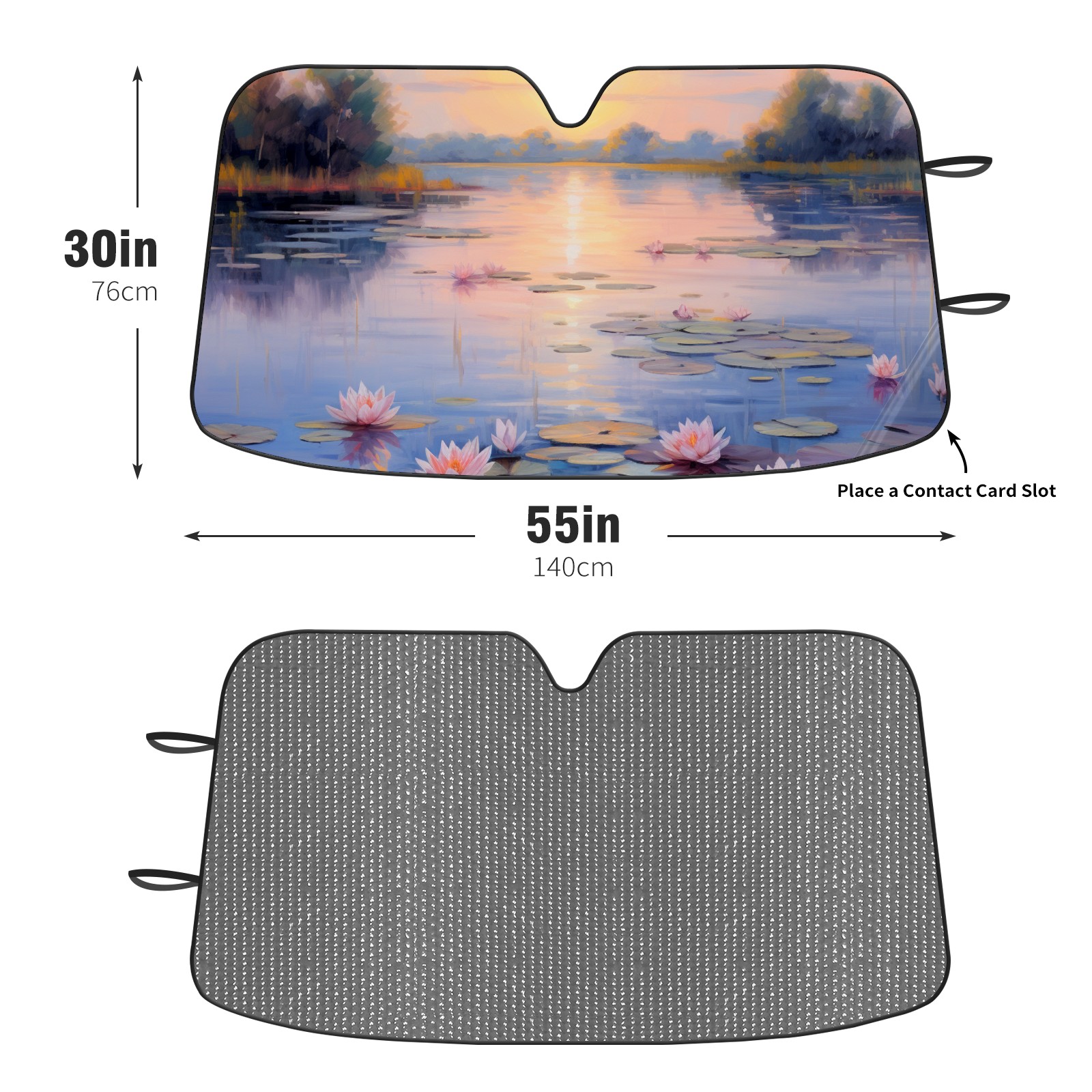 Diameter /Size 63"L x 33.5"W Made from excellent materials which makes it sturdy and protects the car from the sun. Easy to use and pack. Makes the interior of the car cooler.You can easily stash the sunshade in the storage bag or store long term.It open and closes easy. Also the leather storage bag is durable and easy to put the umbrella back into.This windshield sunshade provides complete coverage and keeps your car interior cool under direct sun. It is easy to open and position under the windshield and around the rear-view mirror. Makes Your Car Easy To Identify, Perfect For Finding Your Car In Crowded Parking Lots And Garages.Great Choice: It Is A Great Gift For Dad, Boyfriend, Brother, Brother And Uncle, Friends, Classmates, Family And So On. Notice: Due To Difference Computer Monitors, The Color Maybe Slightly Different From Picture. As Different Measurement Methods, Measurement Data Will Float Within 2%.I Hope You Understand. If You Have Any Question About The Item Please Do Not Hesitate To Contact Us Immediately And We Will Give You A Satisfactory Reply Within 24 Hours.