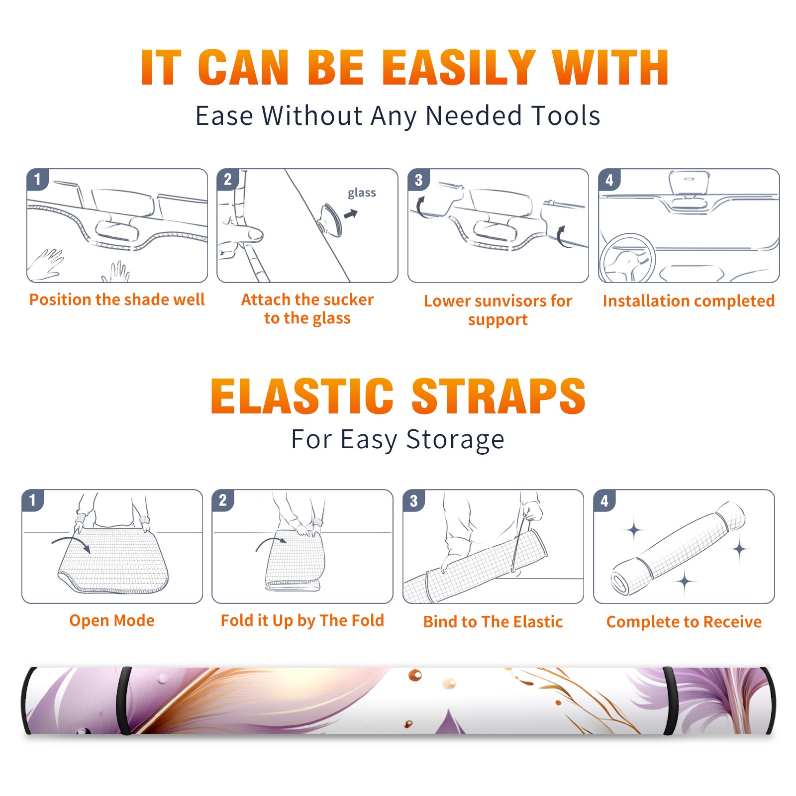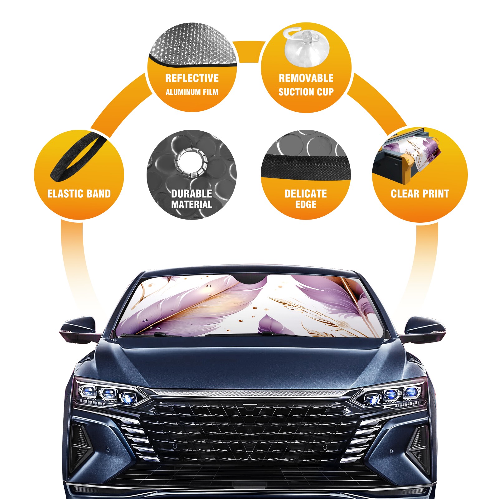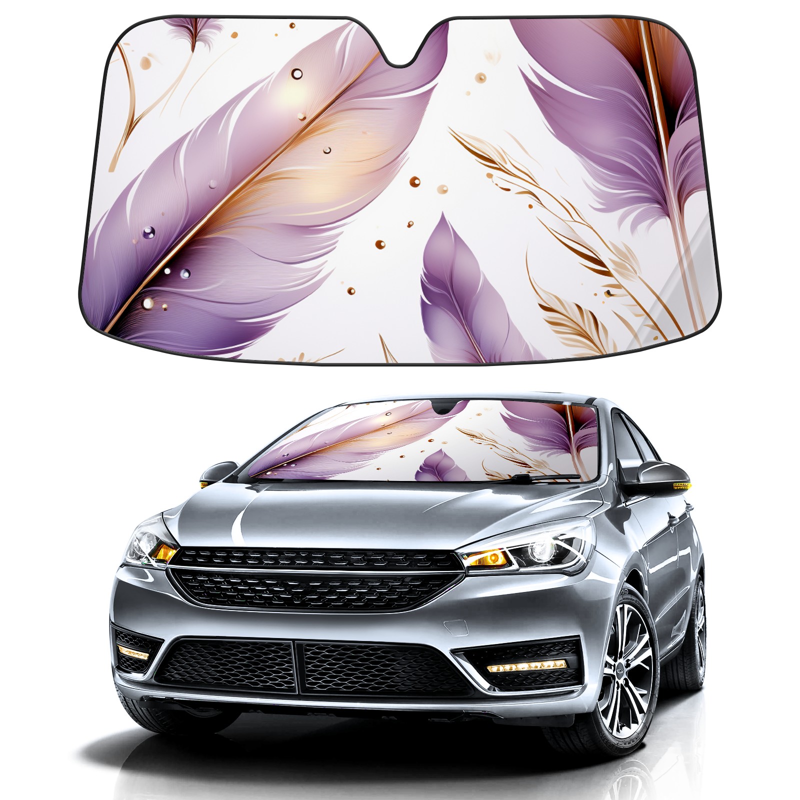 Car Windshield Sun Shade For Front Window Purple Feather 2 Foldable Vehicle Windshield Car Sun Visor Covers Automotive Window Protector Car Camping Privacy Sun Blocker