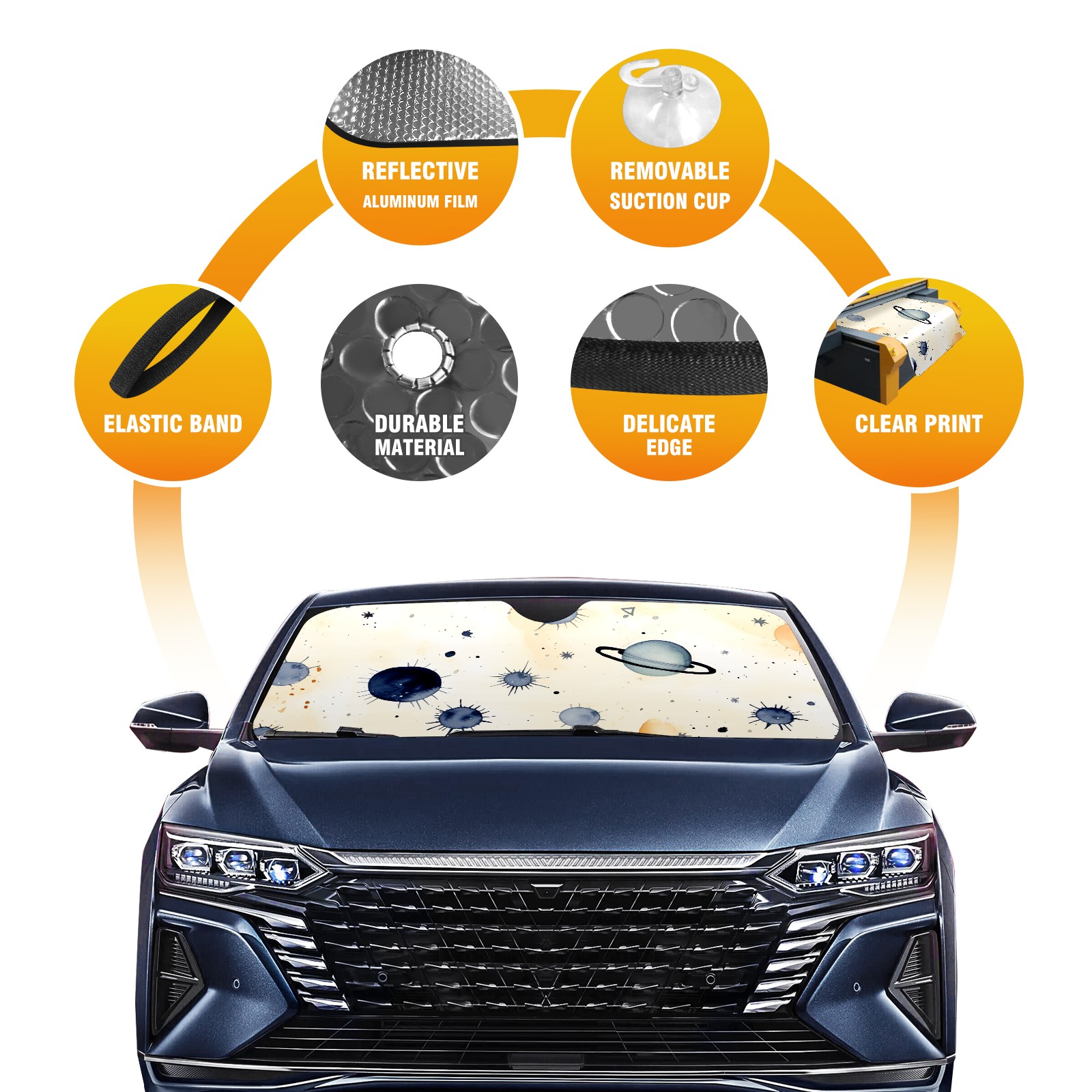 Car Windshield Sun Shade For Front Window Planets 3 Foldable Vehicle Windshield Car Sun Visor Covers Automotive Window Protector Car Camping Privacy Sun Blocker