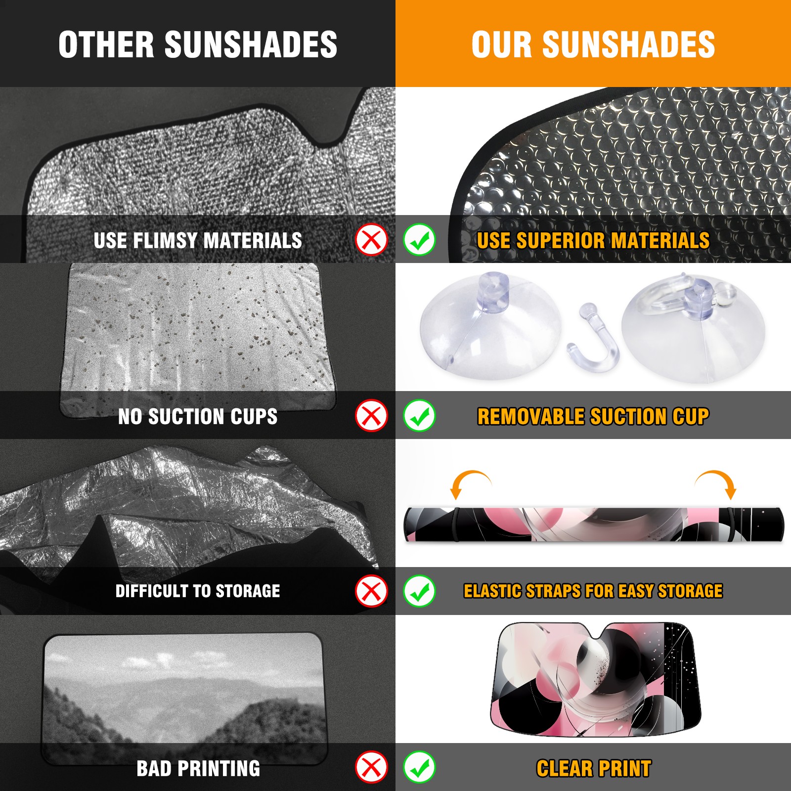 • Diameter /Size 63"L x 33.5"W Made from excellent materials which makes it sturdy and protects the car from the sun. Easy to use and pack. Makes the interior of the car cooler.You can easily stash the sunshade in the storage bag or store long term.It open and closes easy. Also the leather storage bag is durable and easy to put the umbrella back into.This windshield sunshade provides complete coverage and keeps your car interior cool under direct sun. It is easy to open and position under the windshield and around the rear-view mirror. Makes Your Car Easy To Identify, Perfect For Finding Your Car In Crowded Parking Lots And Garages.Great Choice: It Is A Great Gift For Dad, Boyfriend, Brother, Brother And Uncle, Friends, Classmates, Family And So On. Notice: Due To Difference Computer Monitors, The Color Maybe Slightly Different From Picture. As Different Measurement Methods, Measurement Data Will Float Within 2%.I Hope You Understand. If You Have Any Question About The Item Please Do Not Hesitate To Contact Us Immediately And We Will Give You A Satisfactory Reply Within 24 Hours.