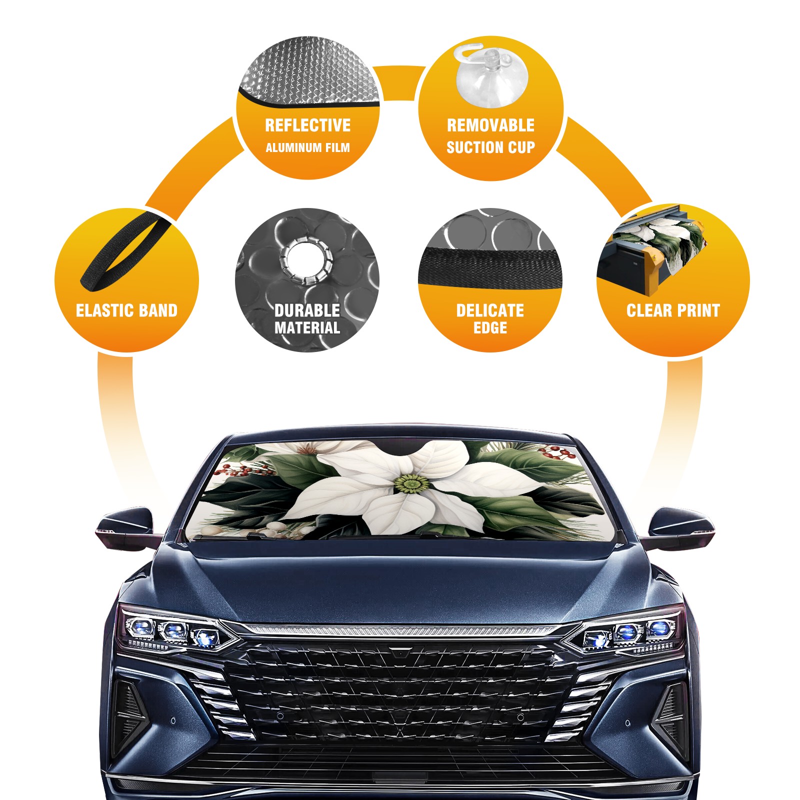 Car Windshield Sun Shade For Front Window Flower 5 Foldable Vehicle Windshield Car Sun Visor Covers Automotive Window Protector Car Camping Privacy Sun Blocker