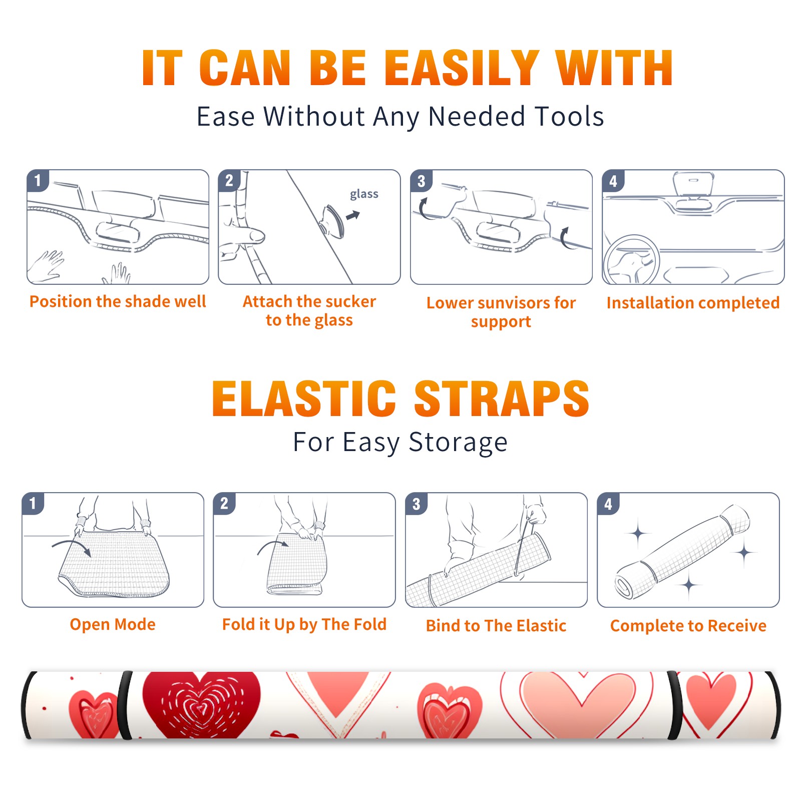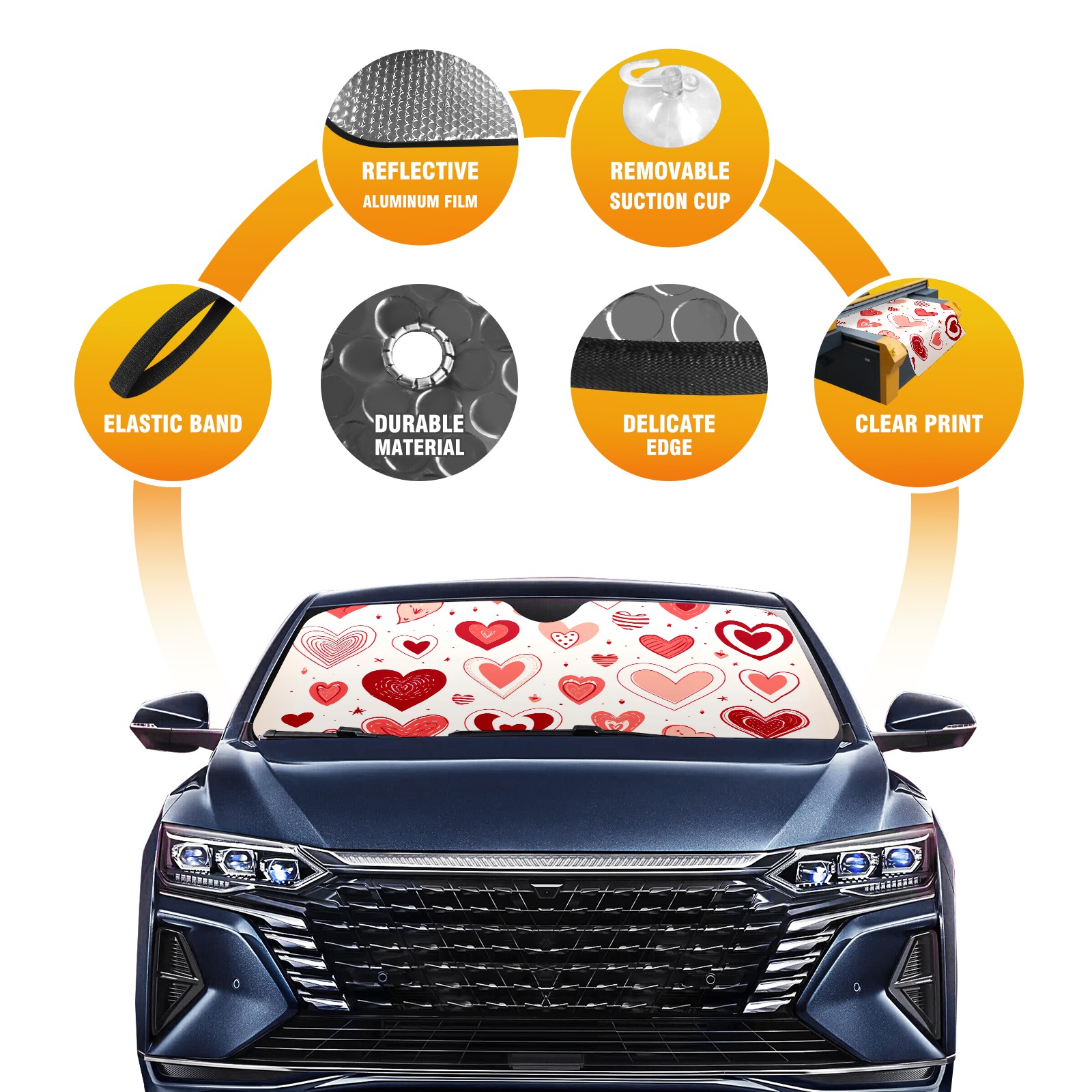 Car Windshield Sun Shade For Front Window Off-White Love 3 Foldable Vehicle Windshield Car Sun Visor Covers Automotive Window Protector Car Camping Privacy Sun Blocker