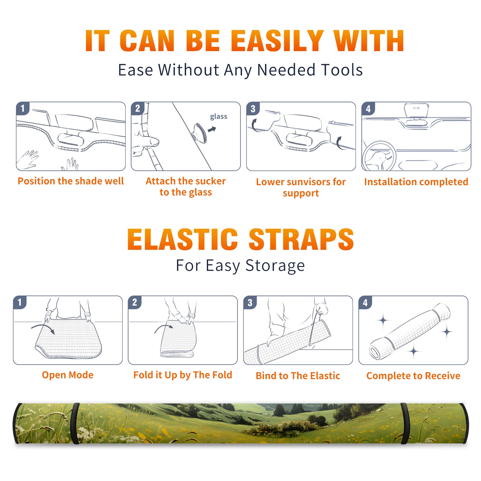 • Diameter /Size 63"L x 33.5"W Made from excellent materials which makes it sturdy and protects the car from the sun. Easy to use and pack. Makes the interior of the car cooler.You can easily stash the sunshade in the storage bag or store long term.It open and closes easy. Also the leather storage bag is durable and easy to put the umbrella back into.This windshield sunshade provides complete coverage and keeps your car interior cool under direct sun. It is easy to open and position under the windshield and around the rear-view mirror. Makes Your Car Easy To Identify, Perfect For Finding Your Car In Crowded Parking Lots And Garages.Great Choice: It Is A Great Gift For Dad, Boyfriend, Brother, Brother And Uncle, Friends, Classmates, Family And So On. Notice: Due To Difference Computer Monitors, The Color Maybe Slightly Different From Picture. As Different Measurement Methods, Measurement Data Will Float Within 2%.I Hope You Understand. If You Have Any Question About The Item Please Do Not Hesitate To Contact Us Immediately And We Will Give You A Satisfactory Reply Within 24 Hours.