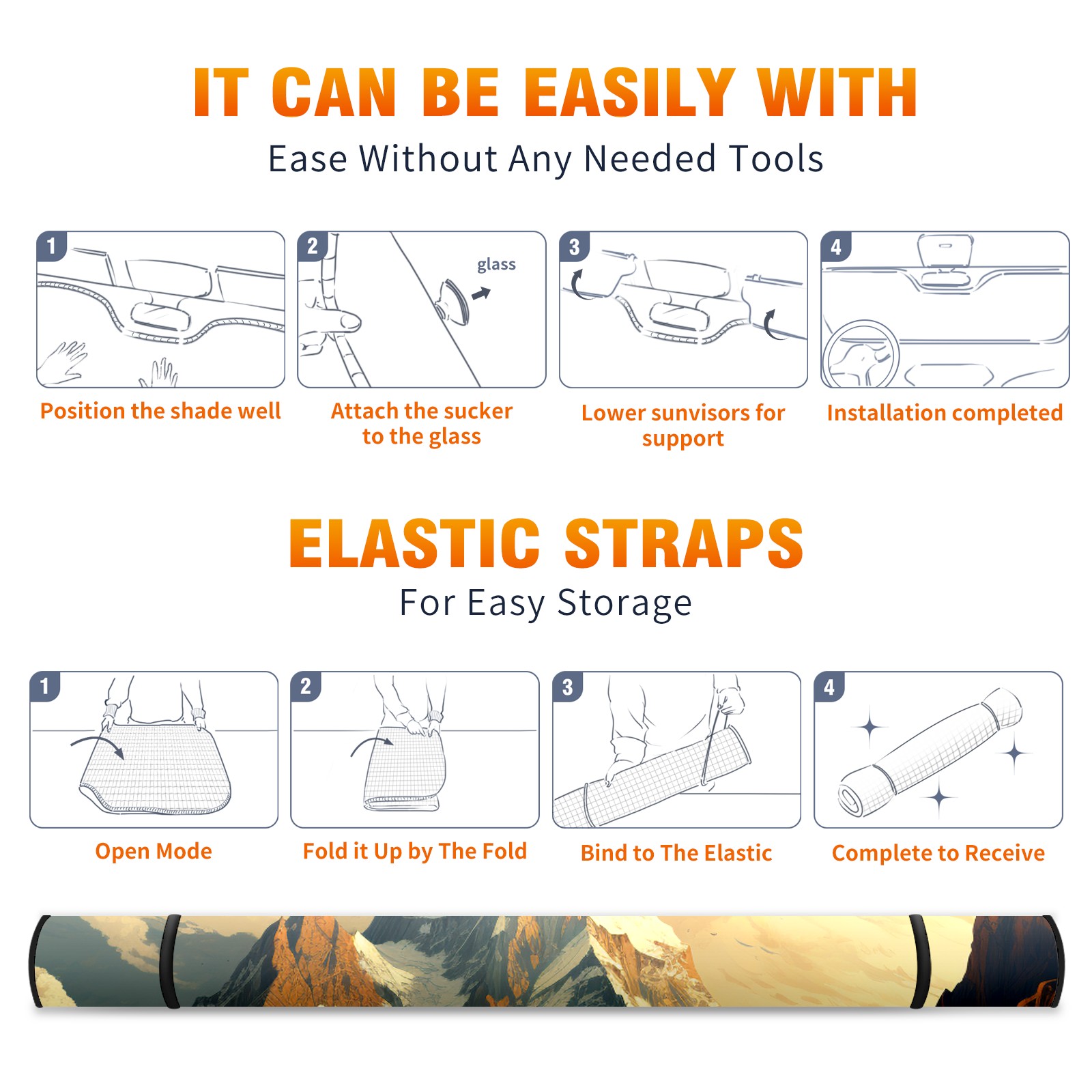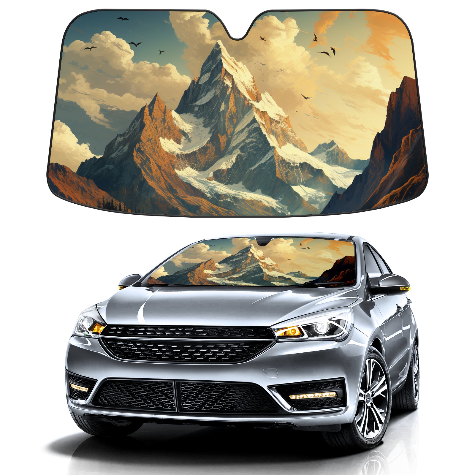 Car Windshield Sun Shade For Front Window Mountain6 Foldable Vehicle Windshield Car Sun Visor Covers Automotive Window Protector Car Camping Privacy Sun Blocker