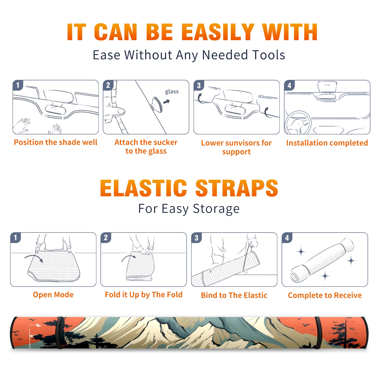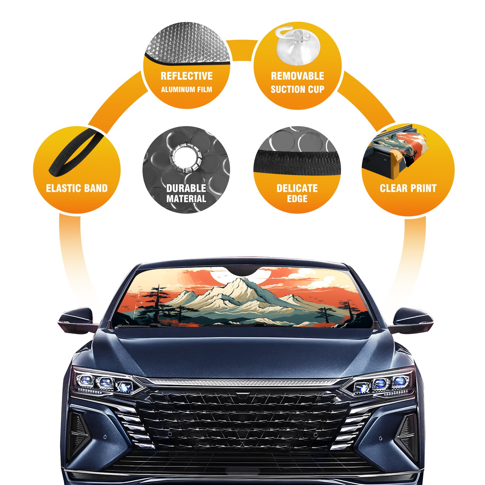 Car Windshield Sun Shade For Front Window Mountain3 Foldable Vehicle Windshield Car Sun Visor Covers Automotive Window Protector Car Camping Privacy Sun Blocker