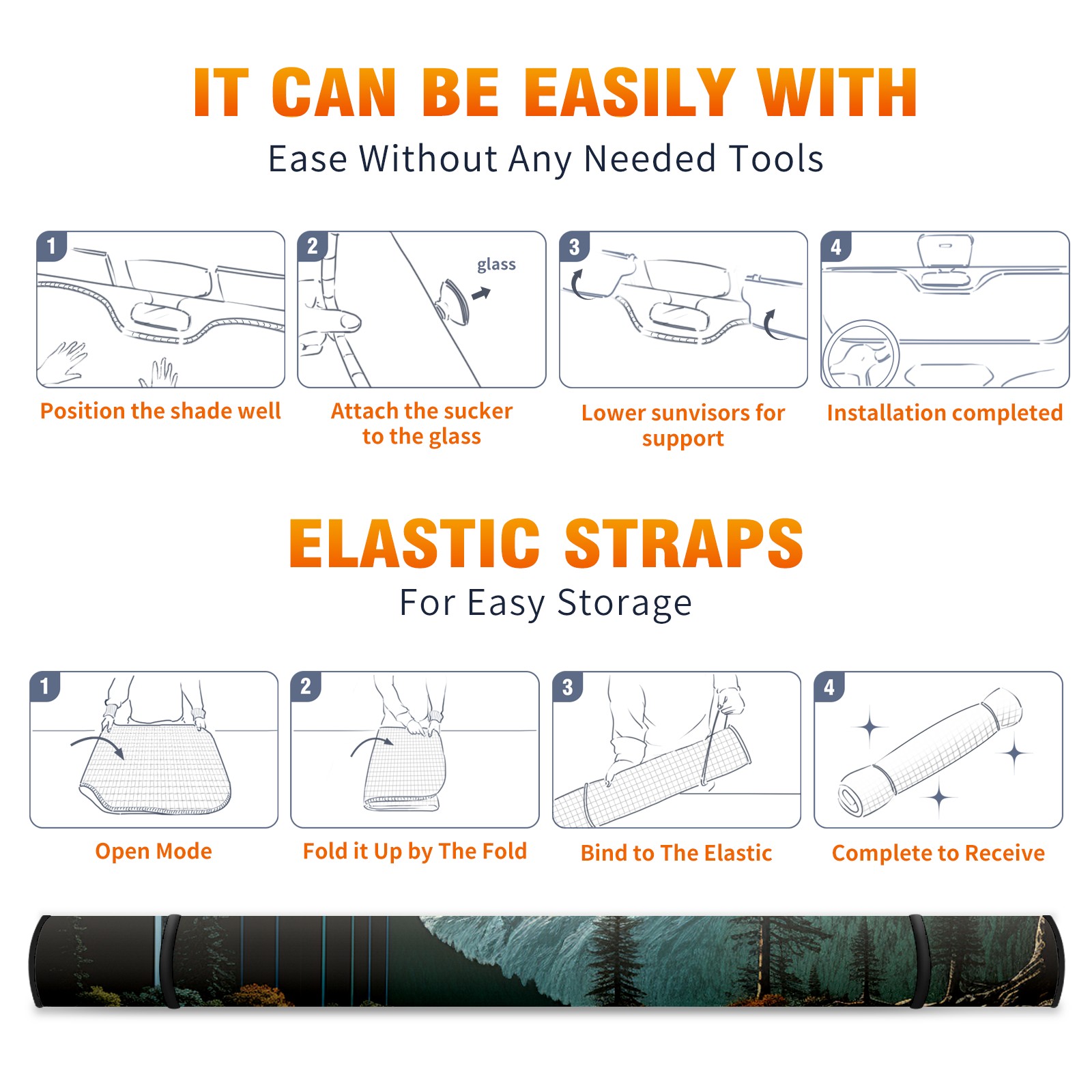 • Diameter /Size 63"L x 33.5"W Made from excellent materials which makes it sturdy and protects the car from the sun. Easy to use and pack. Makes the interior of the car cooler.You can easily stash the sunshade in the storage bag or store long term.It open and closes easy. Also the leather storage bag is durable and easy to put the umbrella back into.This windshield sunshade provides complete coverage and keeps your car interior cool under direct sun. It is easy to open and position under the windshield and around the rear-view mirror. Makes Your Car Easy To Identify, Perfect For Finding Your Car In Crowded Parking Lots And Garages.Great Choice: It Is A Great Gift For Dad, Boyfriend, Brother, Brother And Uncle, Friends, Classmates, Family And So On. Notice: Due To Difference Computer Monitors, The Color Maybe Slightly Different From Picture. As Different Measurement Methods, Measurement Data Will Float Within 2%.I Hope You Understand. If You Have Any Question About The Item Please Do Not Hesitate To Contact Us Immediately And We Will Give You A Satisfactory Reply Within 24 Hours.