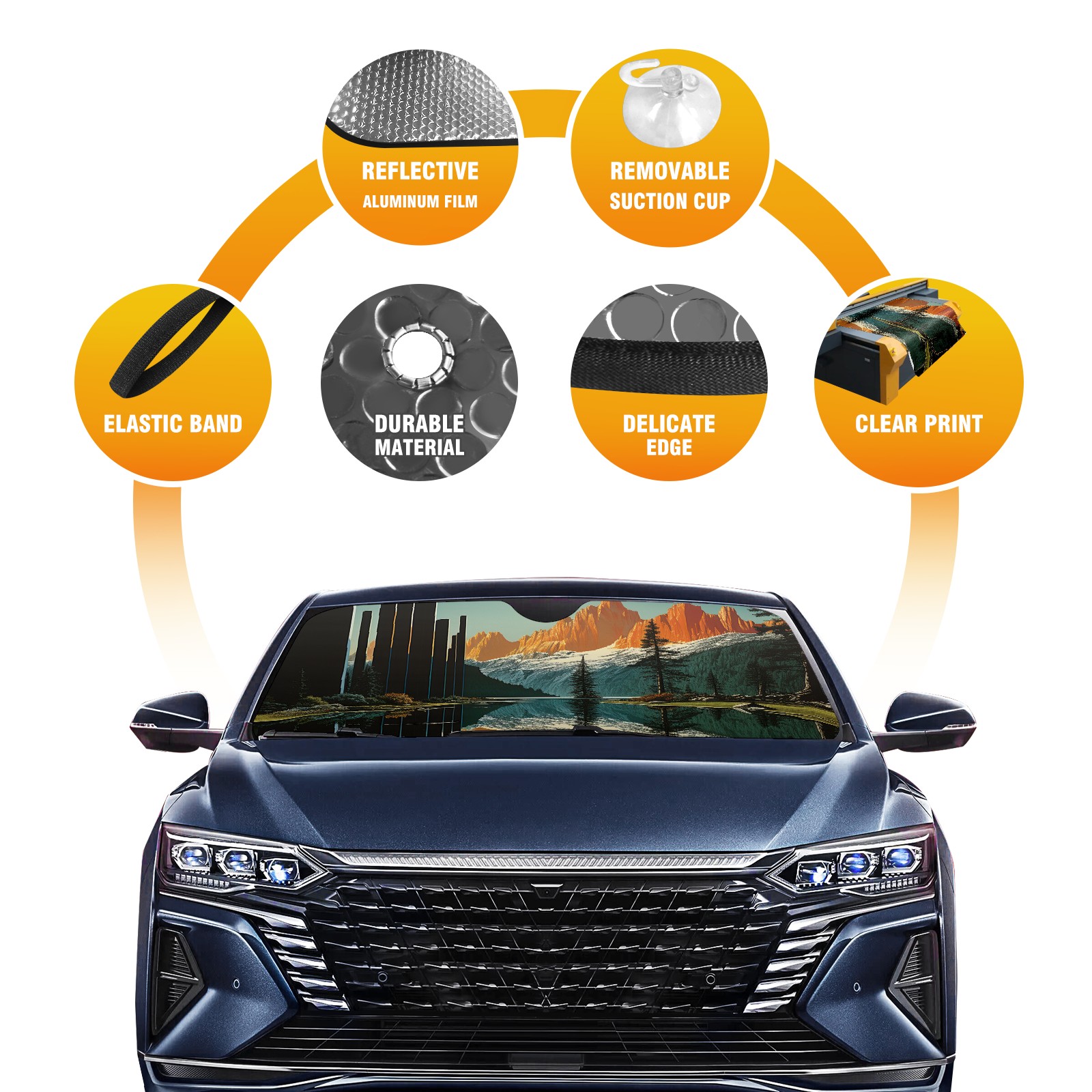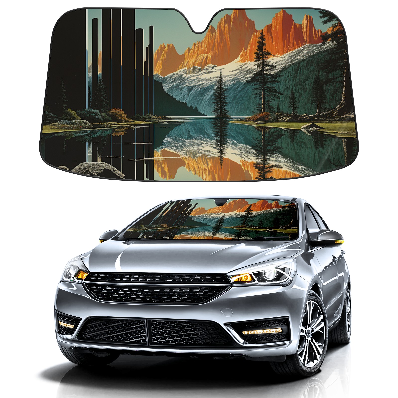 Car Windshield Sun Shade For Front Window Lake Reflections Screenshot Foldable Vehicle Windshield Car Sun Visor Covers Automotive Window Protector Car Camping Privacy Sun Blocker