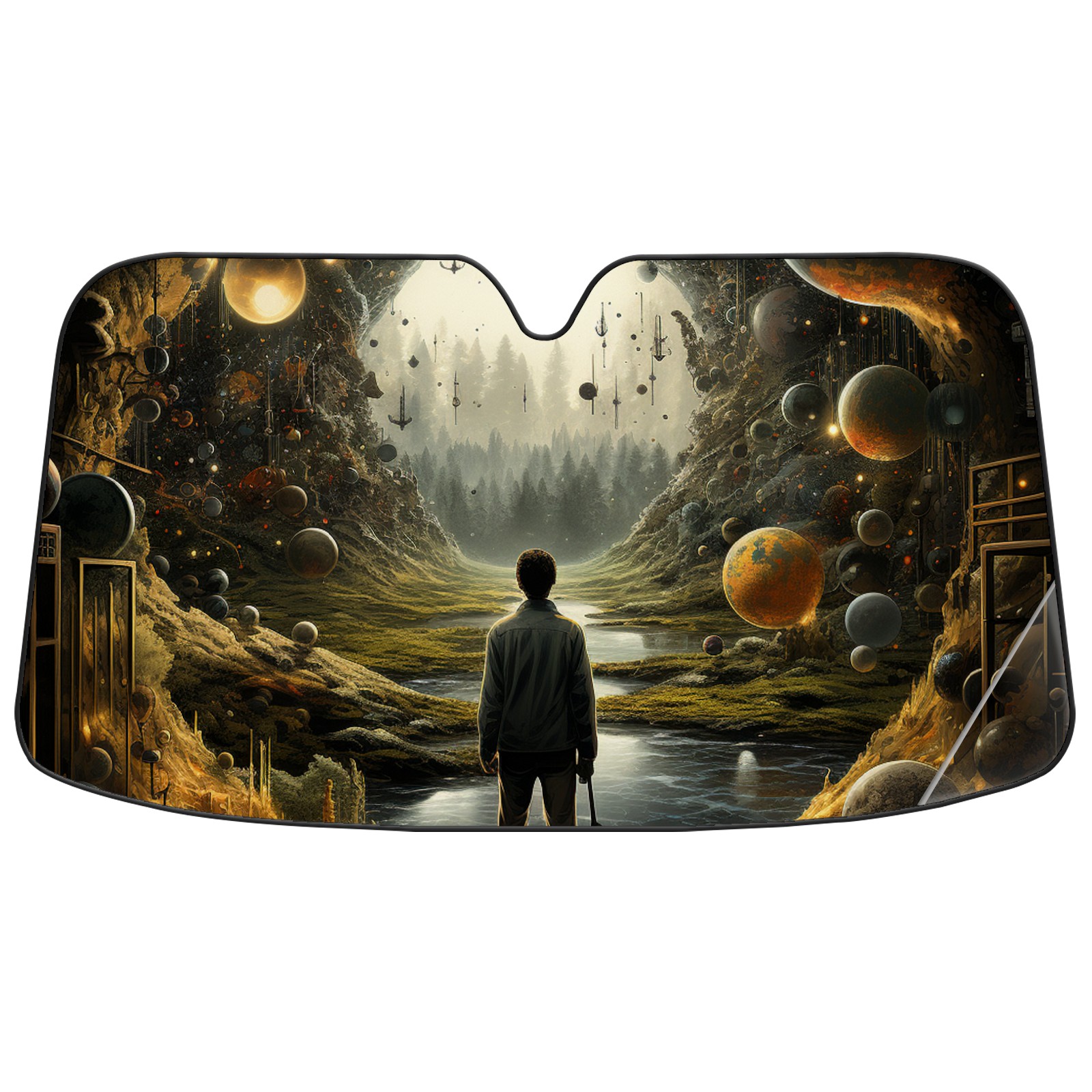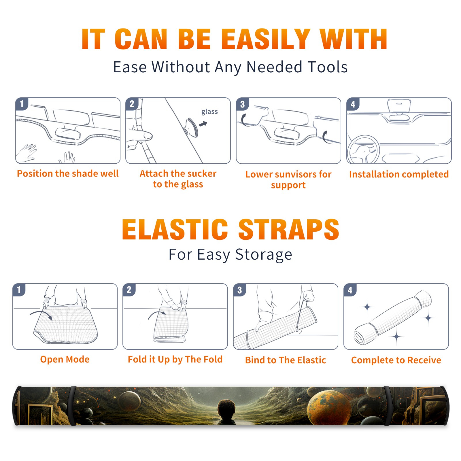 • Diameter /Size 63"L x 33.5"W Made from excellent materials which makes it sturdy and protects the car from the sun. Easy to use and pack. Makes the interior of the car cooler.You can easily stash the sunshade in the storage bag or store long term.It open and closes easy. Also the leather storage bag is durable and easy to put the umbrella back into.This windshield sunshade provides complete coverage and keeps your car interior cool under direct sun. It is easy to open and position under the windshield and around the rear-view mirror. Makes Your Car Easy To Identify, Perfect For Finding Your Car In Crowded Parking Lots And Garages.Great Choice: It Is A Great Gift For Dad, Boyfriend, Brother, Brother And Uncle, Friends, Classmates, Family And So On. Notice: Due To Difference Computer Monitors, The Color Maybe Slightly Different From Picture. As Different Measurement Methods, Measurement Data Will Float Within 2%.I Hope You Understand. If You Have Any Question About The Item Please Do Not Hesitate To Contact Us Immediately And We Will Give You A Satisfactory Reply Within 24 Hours.